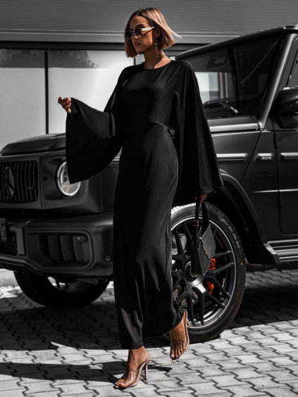 Černé elegantní saténové šaty VELMORO s body