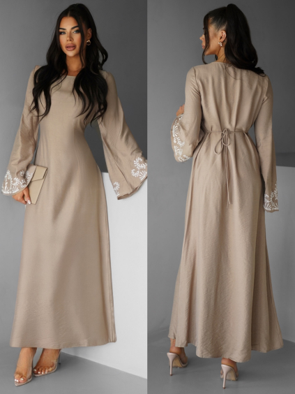 Béžové dlouhé společenské flitrované šaty MIRETTE