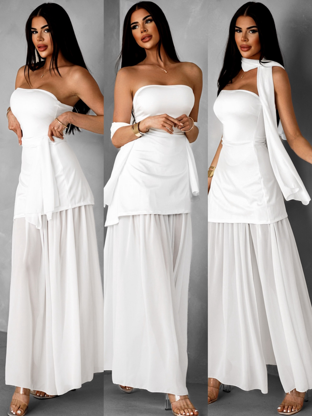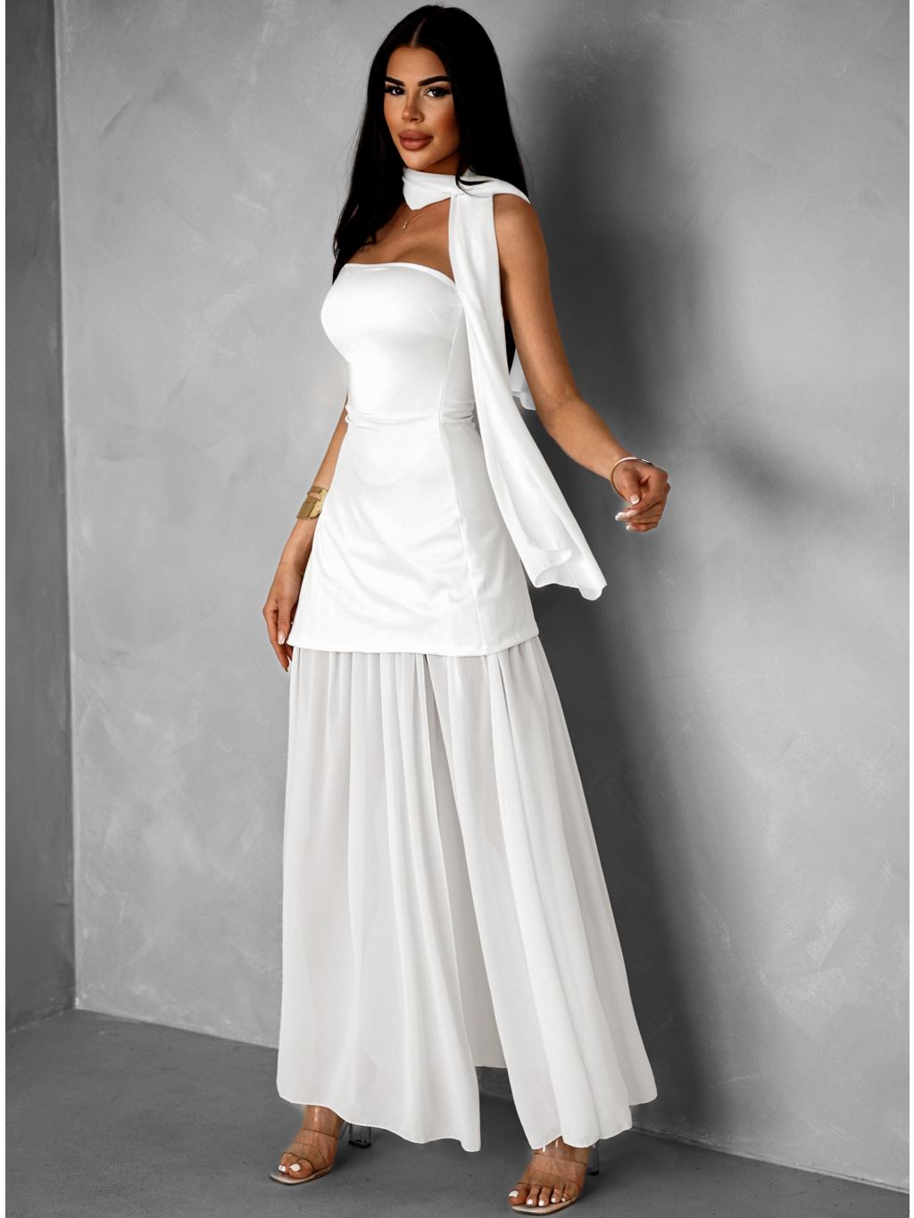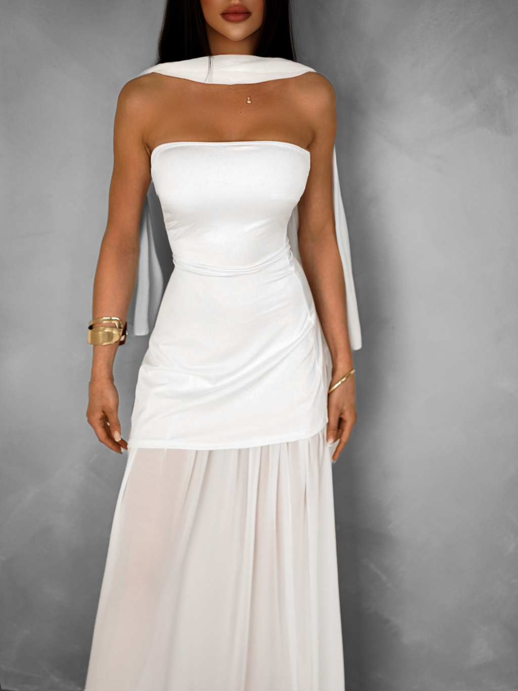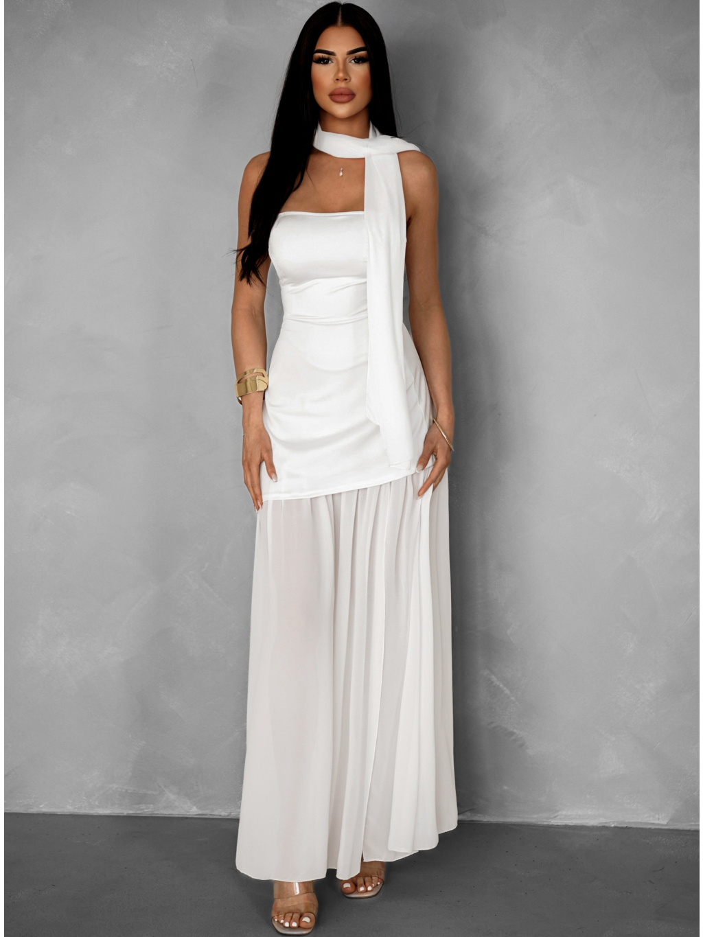 Bílé elegantní dlouhé šaty TYNELA se šálem