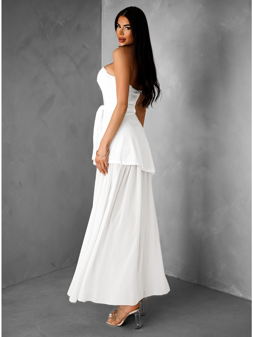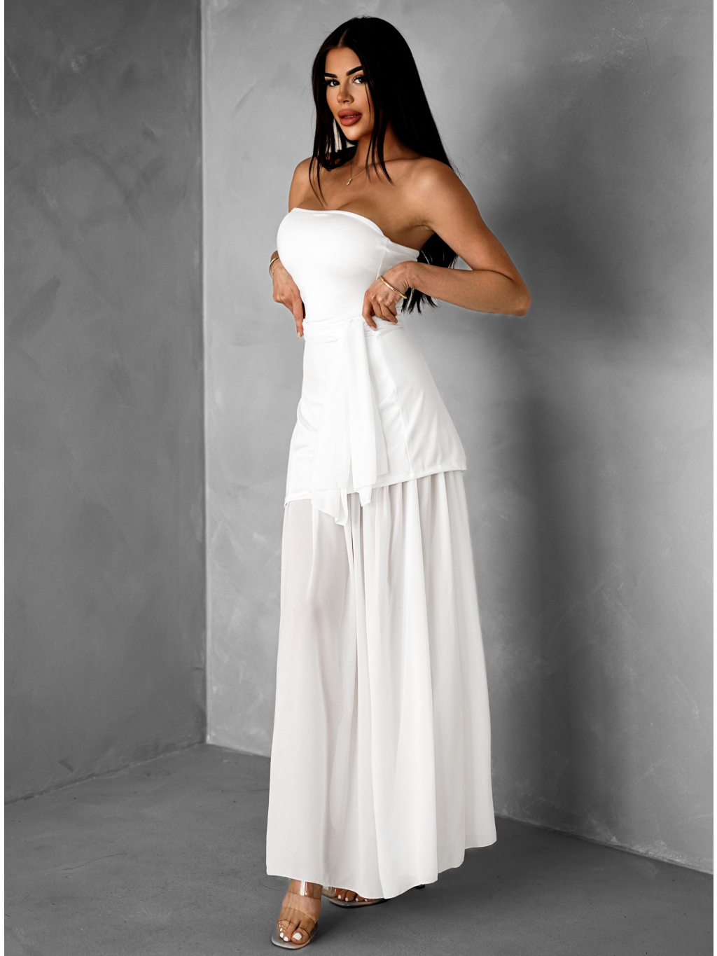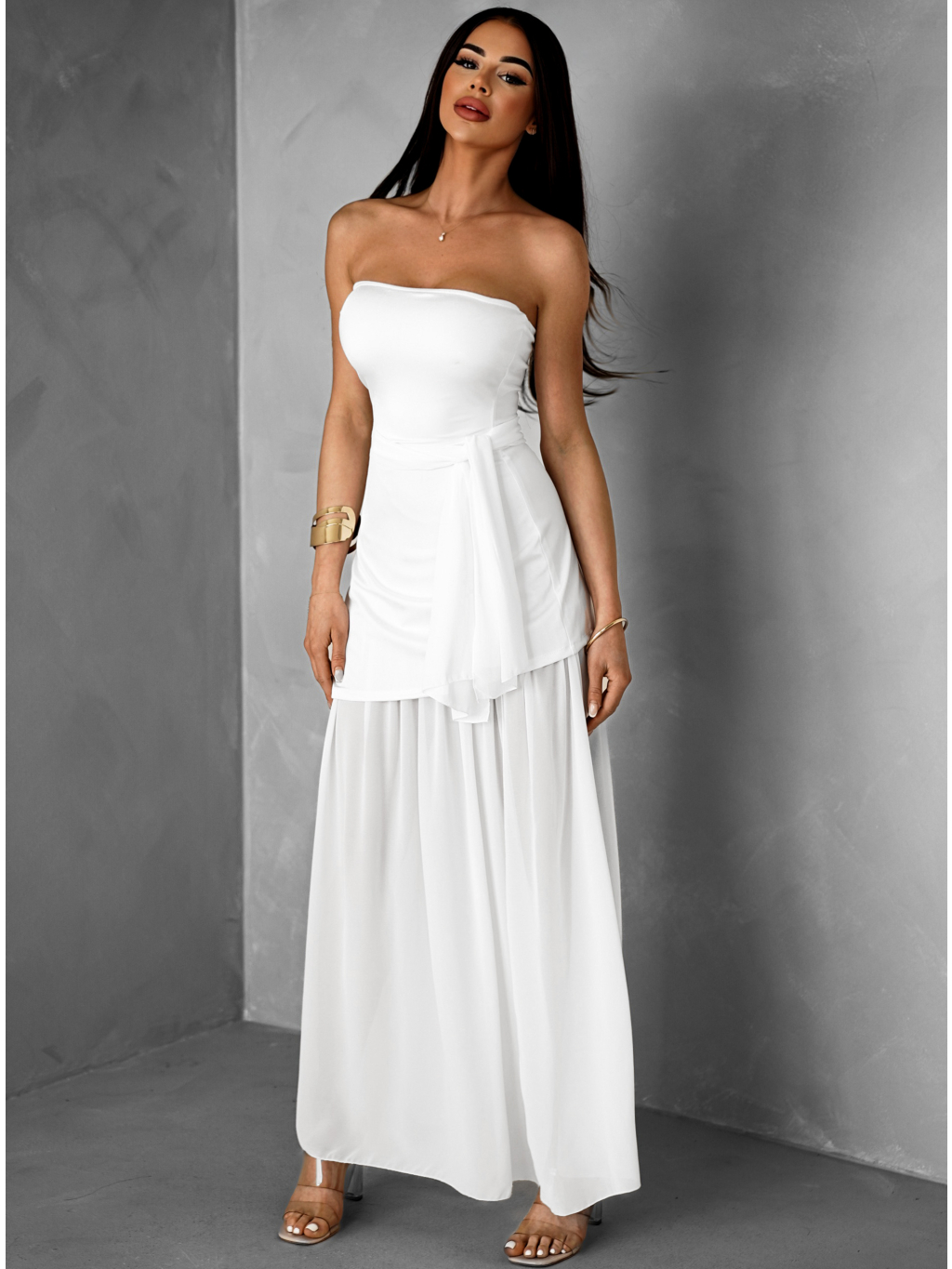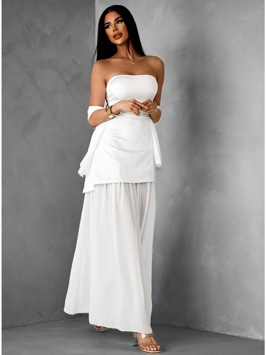 Bílé elegantní dlouhé šaty TYNELA se šálem