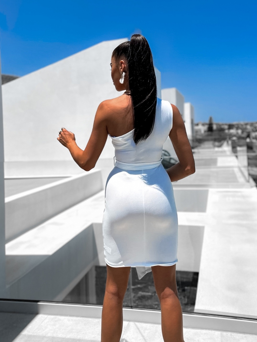 Šaty Goldy jsou vyrobeny z příjemného a kvalitního materiálu. Šaty jsou na jedno rameno a délka šatů sahá do půlky stehen. Šaty jsou šikmě střiženy a v pase mají zavazování, které dokonale zvýrazní Váš pas. Jedná se o lehce kombinovatelný kousek, který by Vám neměl v šatníku chybět. Díky strečovému materiálu se dokonale přizpůsobí Vaší postavě.