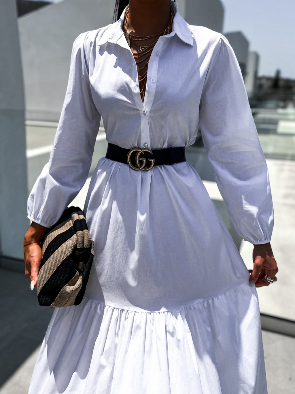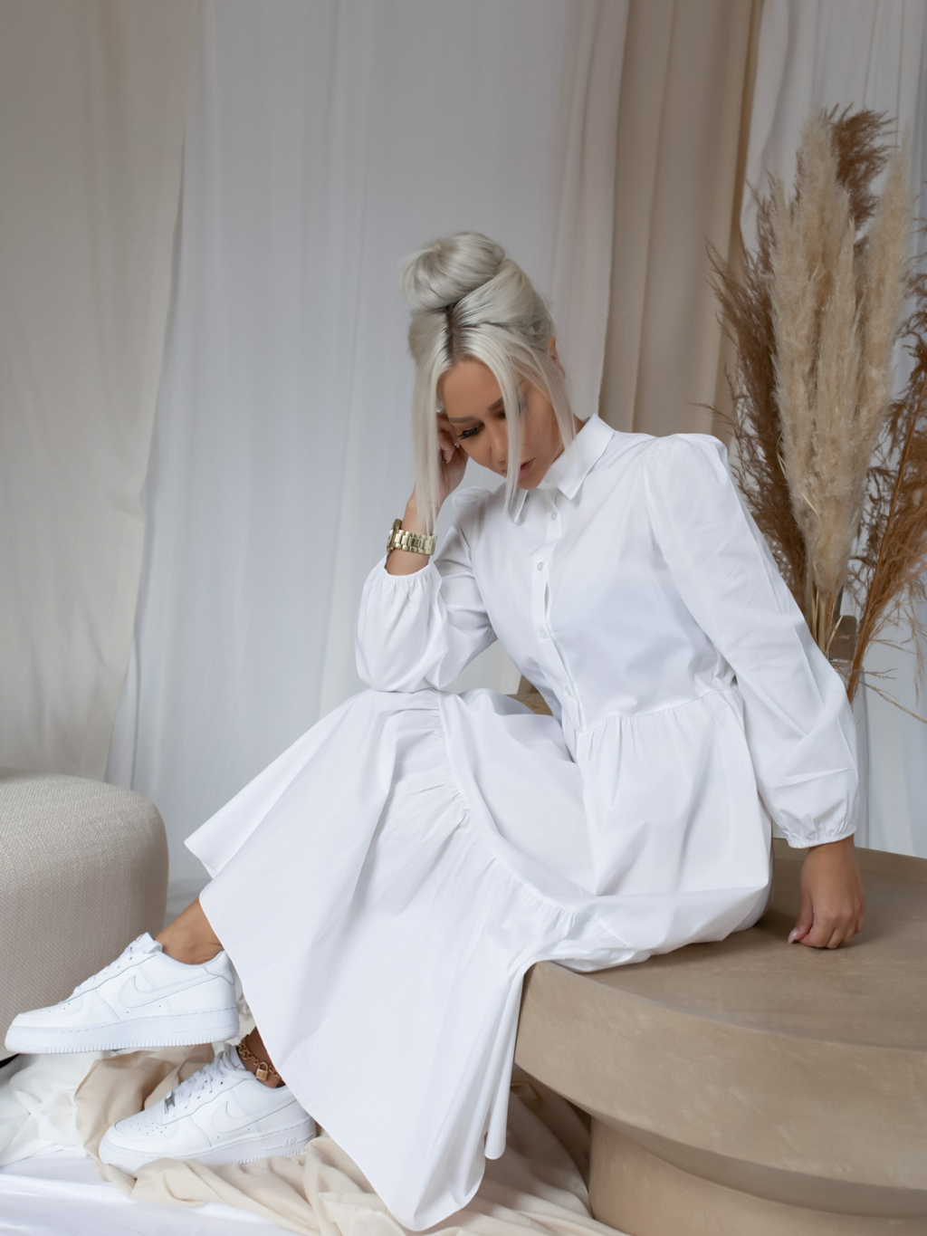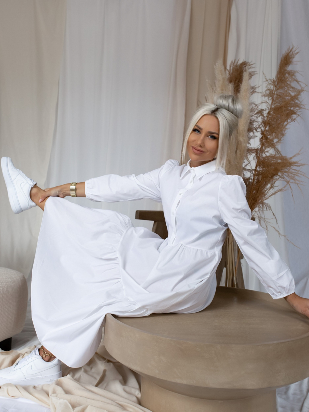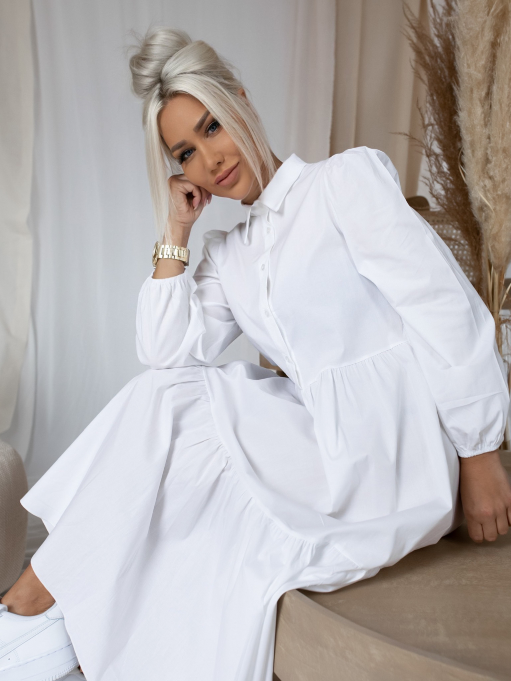 Bílé košilové šaty ANITE s dlouhým rukávem