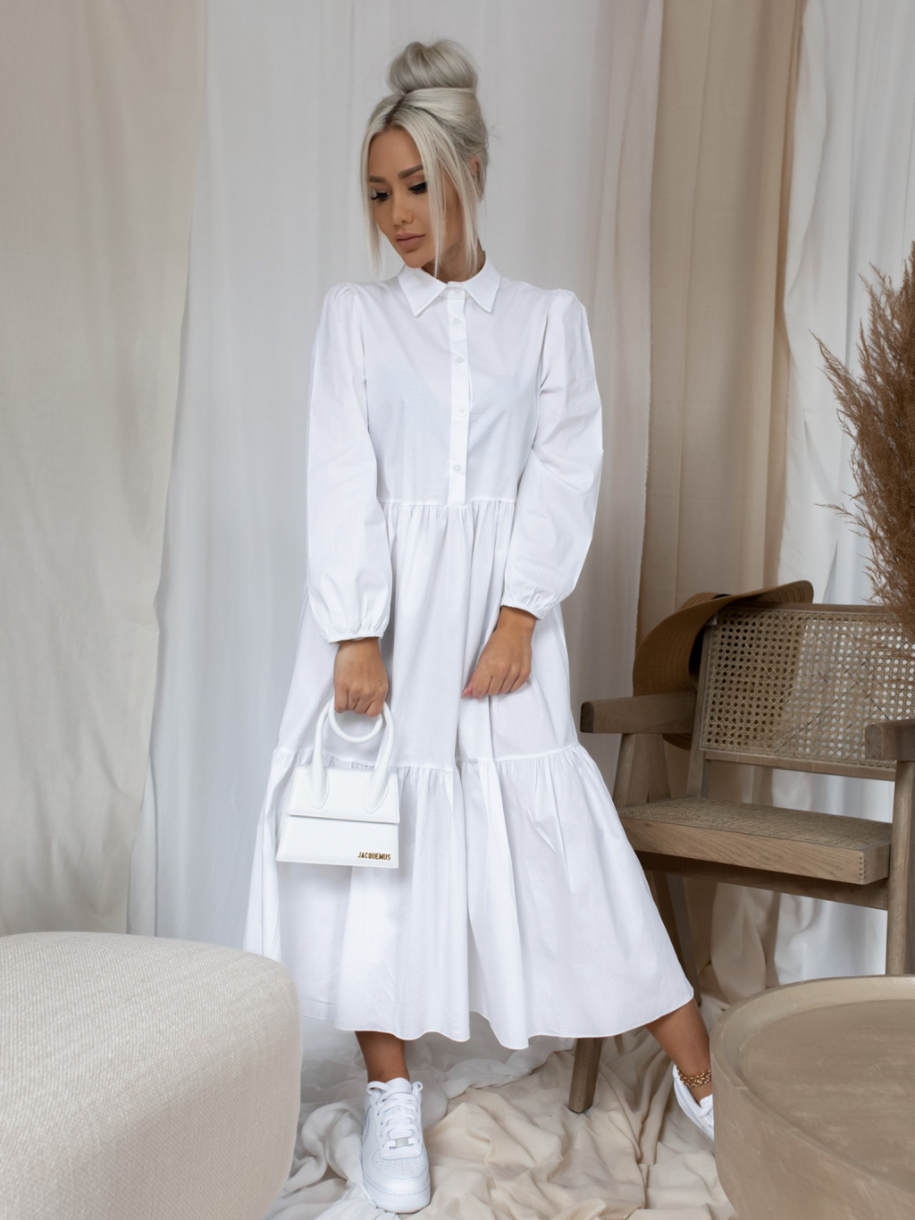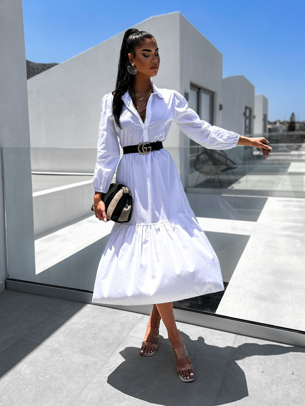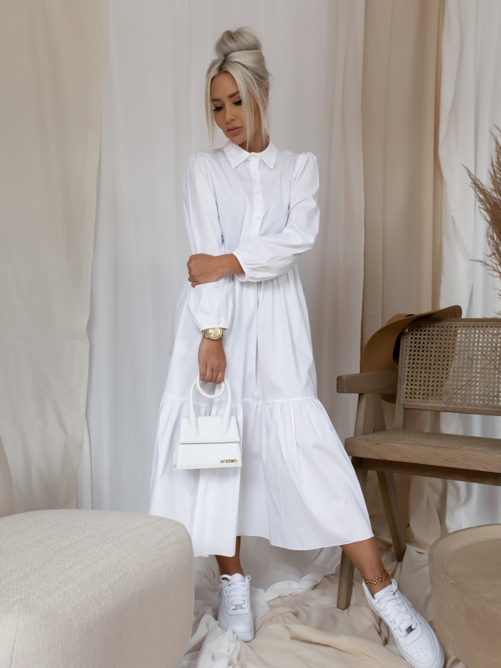 Bílé košilové šaty ANITE s dlouhým rukávem