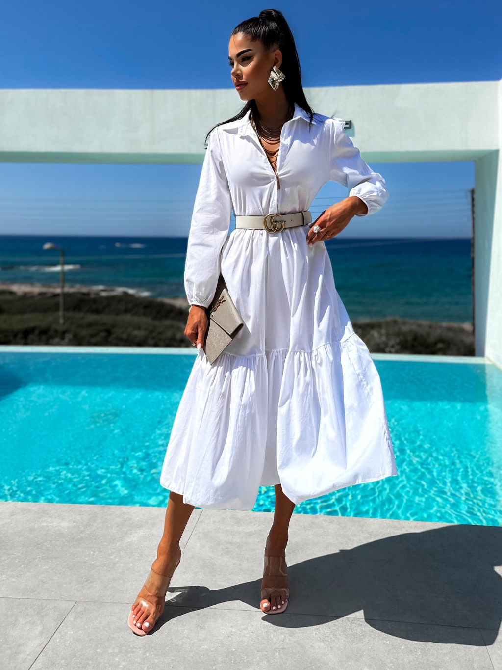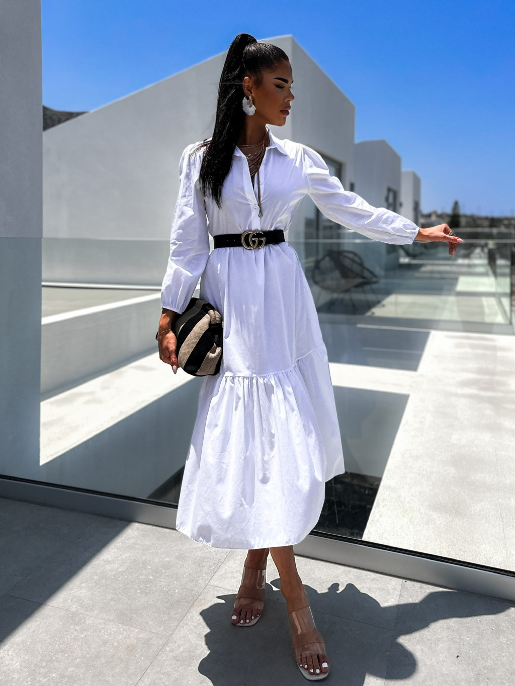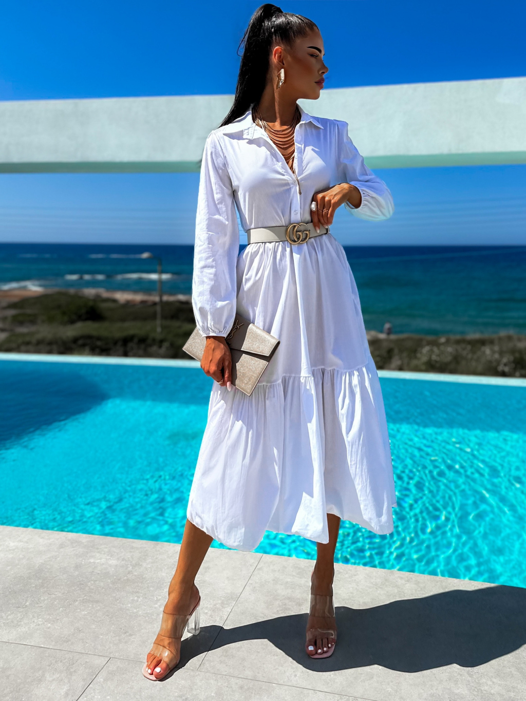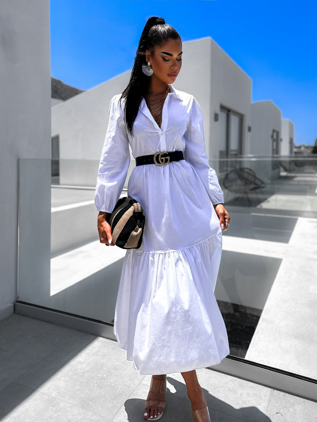 Bílé košilové šaty ANITE s dlouhým rukávem
