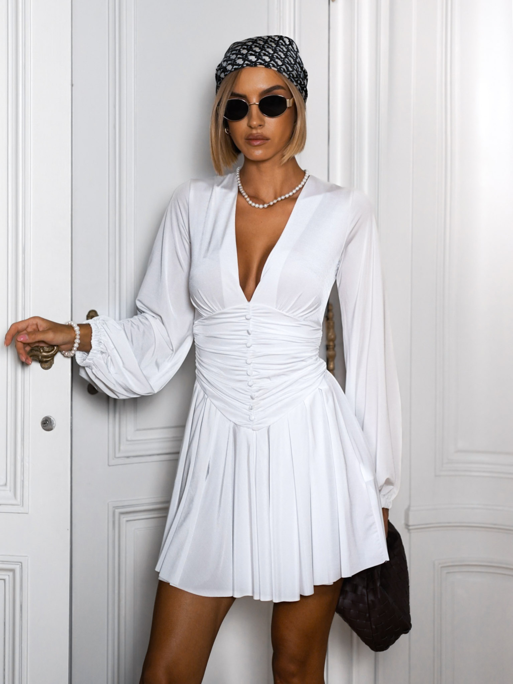 Bílé vypasované šaty AURORAS s dlouhým rukávem