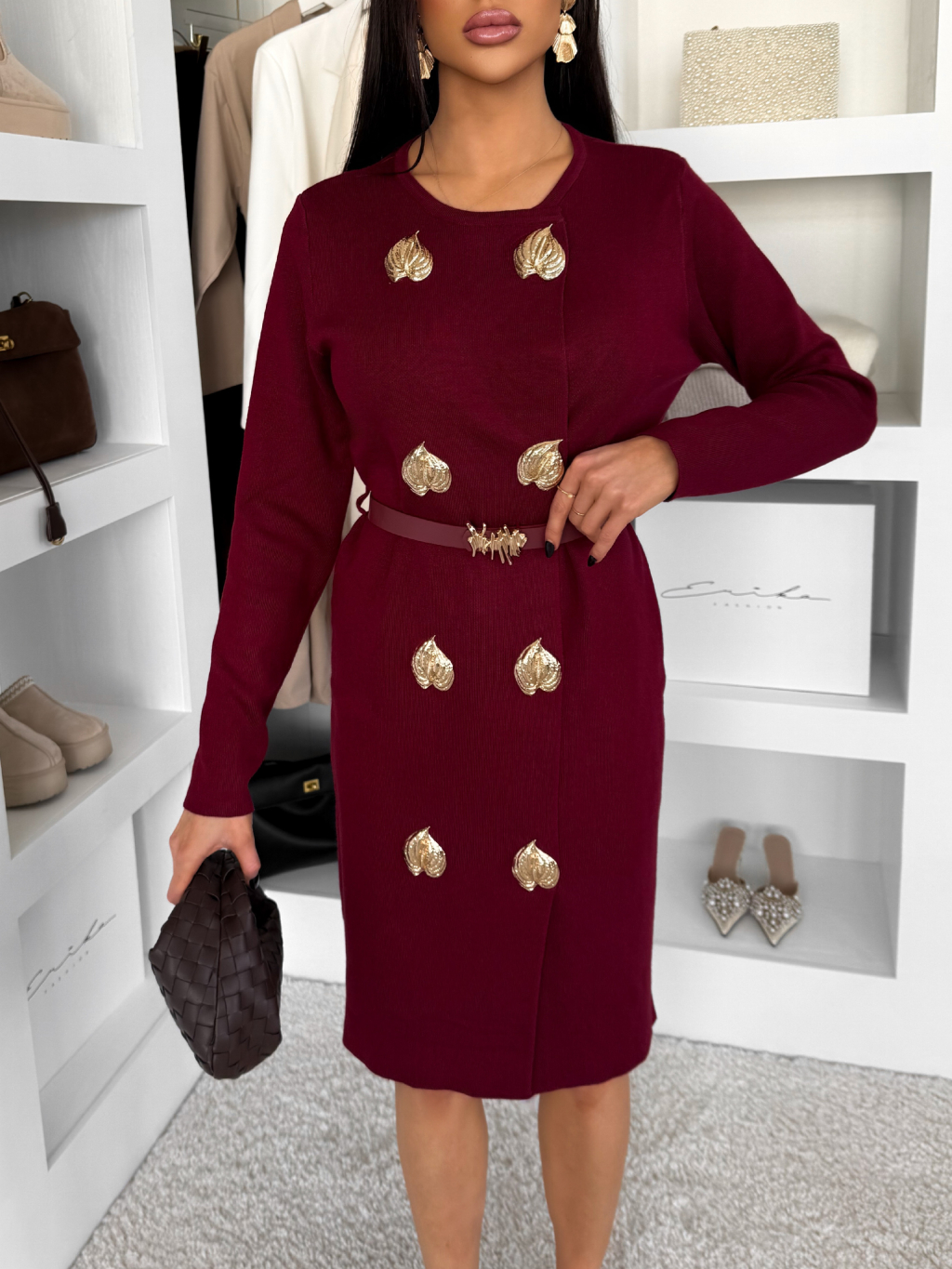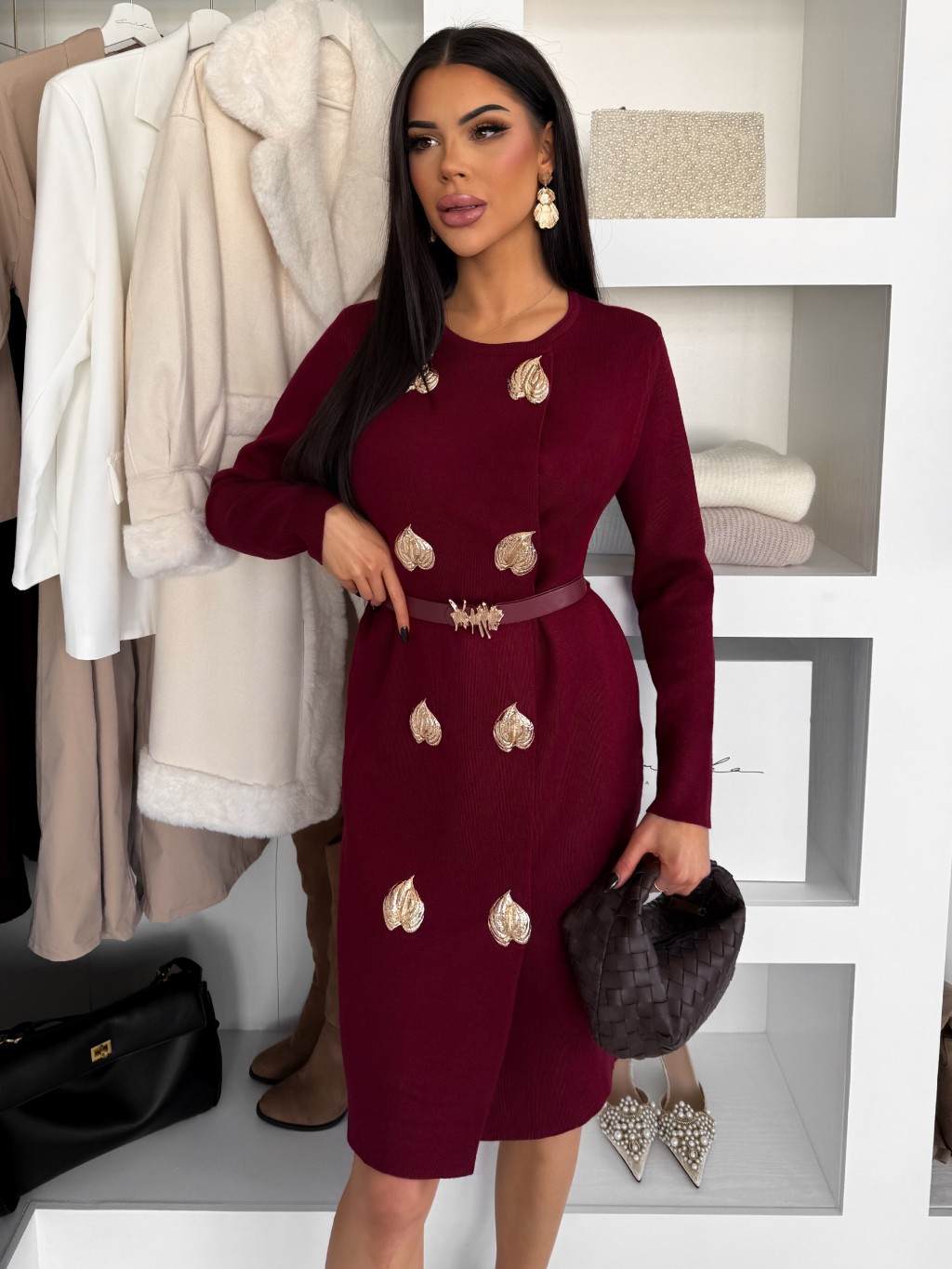 Bordó elegantní svetrové šaty HEARTY s dlouhým rukávem