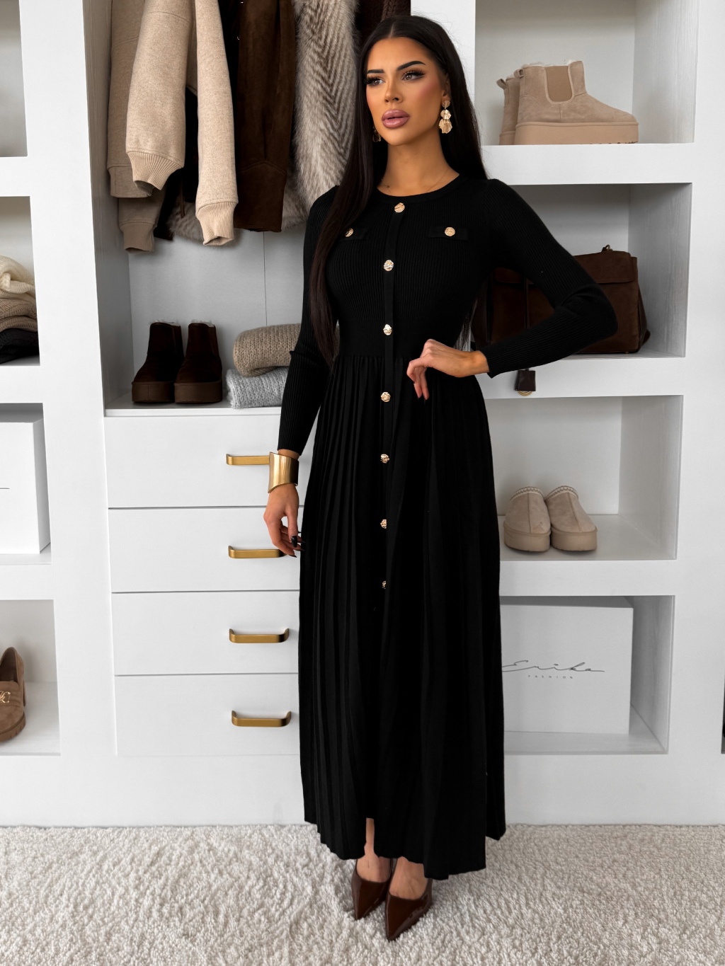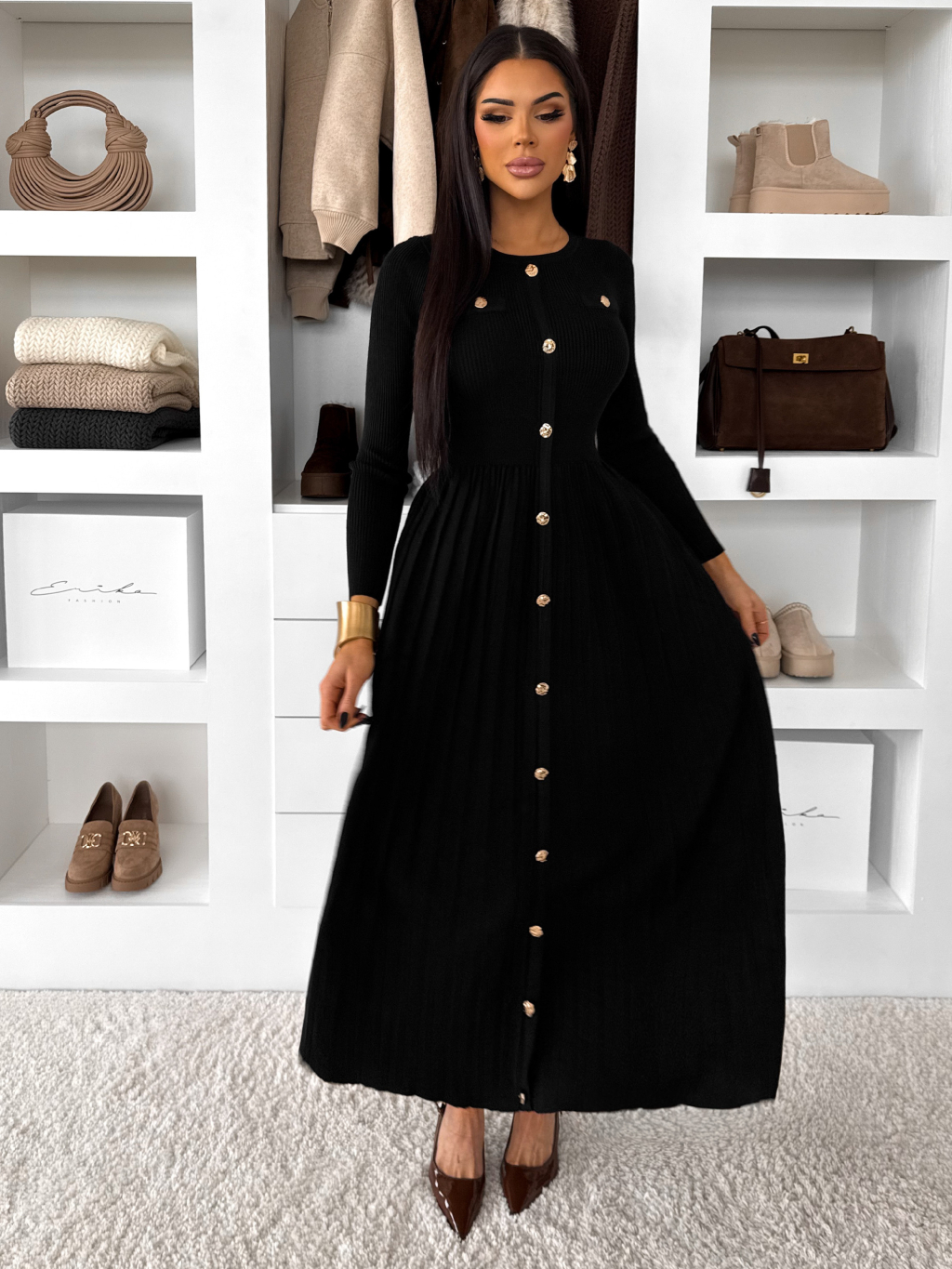 Černé dlouhé svetrové šaty TYMORAE s dlouhým rukávem