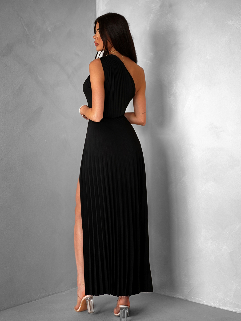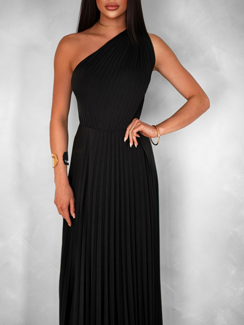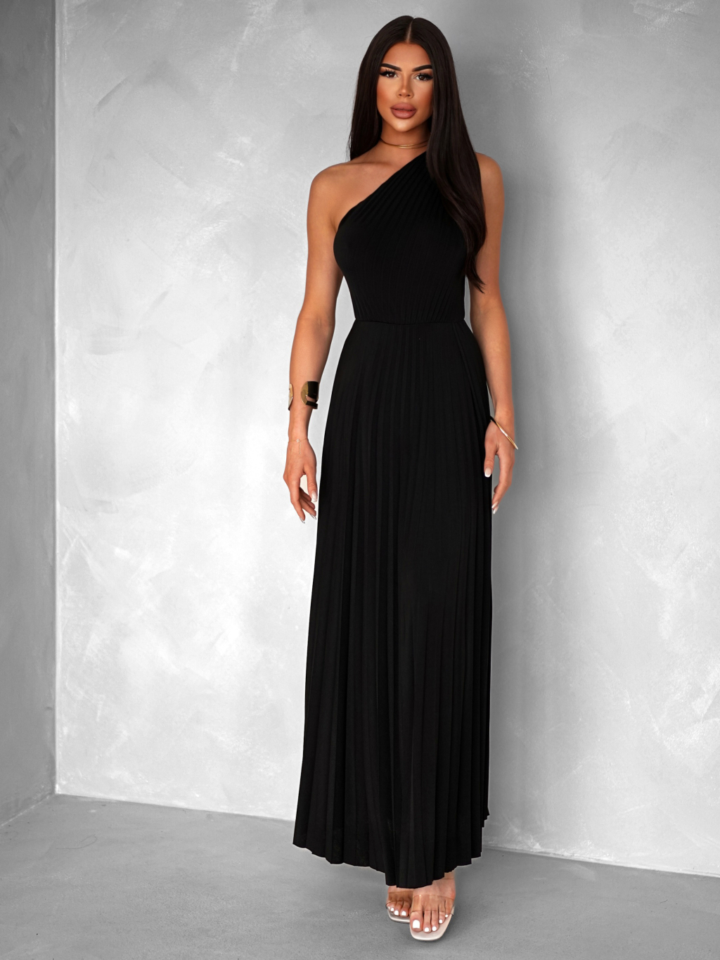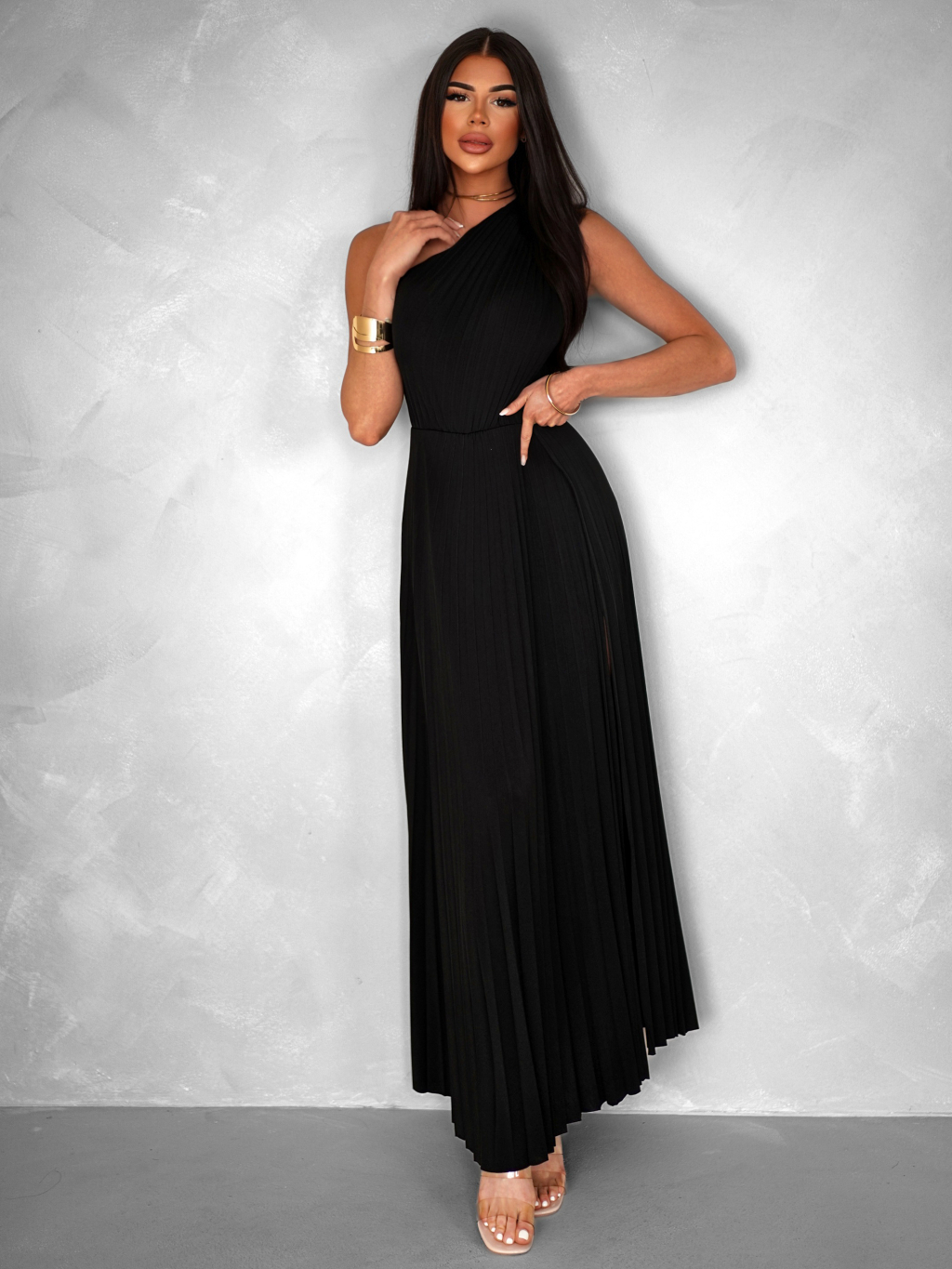 Černé elegantní dlouhé plisované šaty OLIVIE