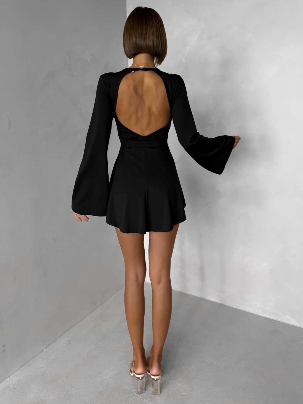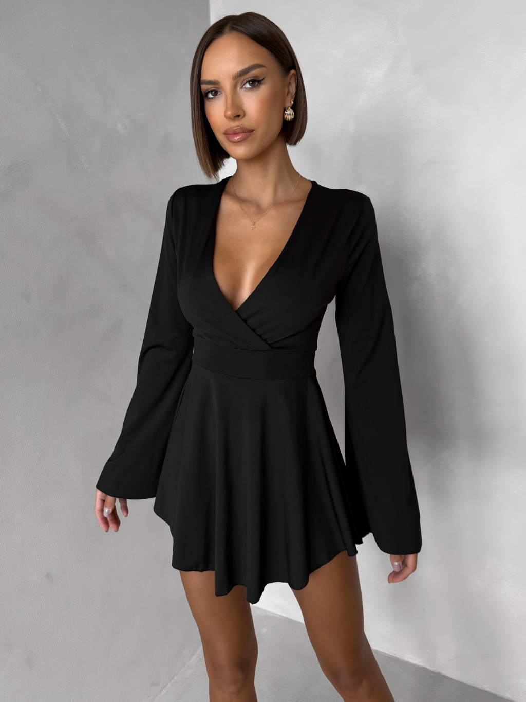 Černé elegantní mini šaty STREGH s dlouhým rukávem