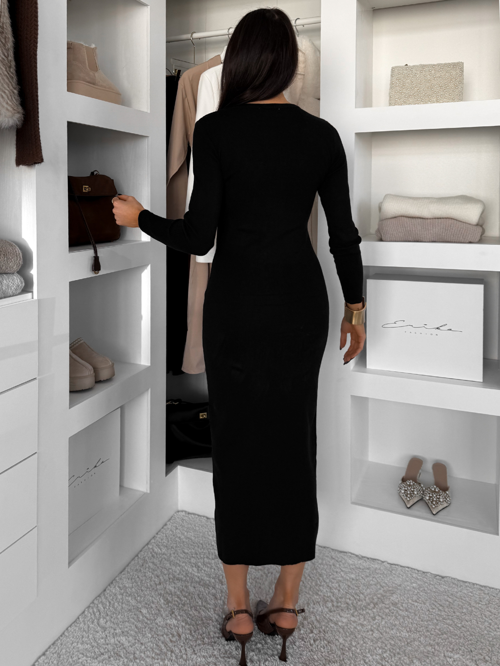 Černé elegantní šaty CRESTILO s dlouhým rukávem