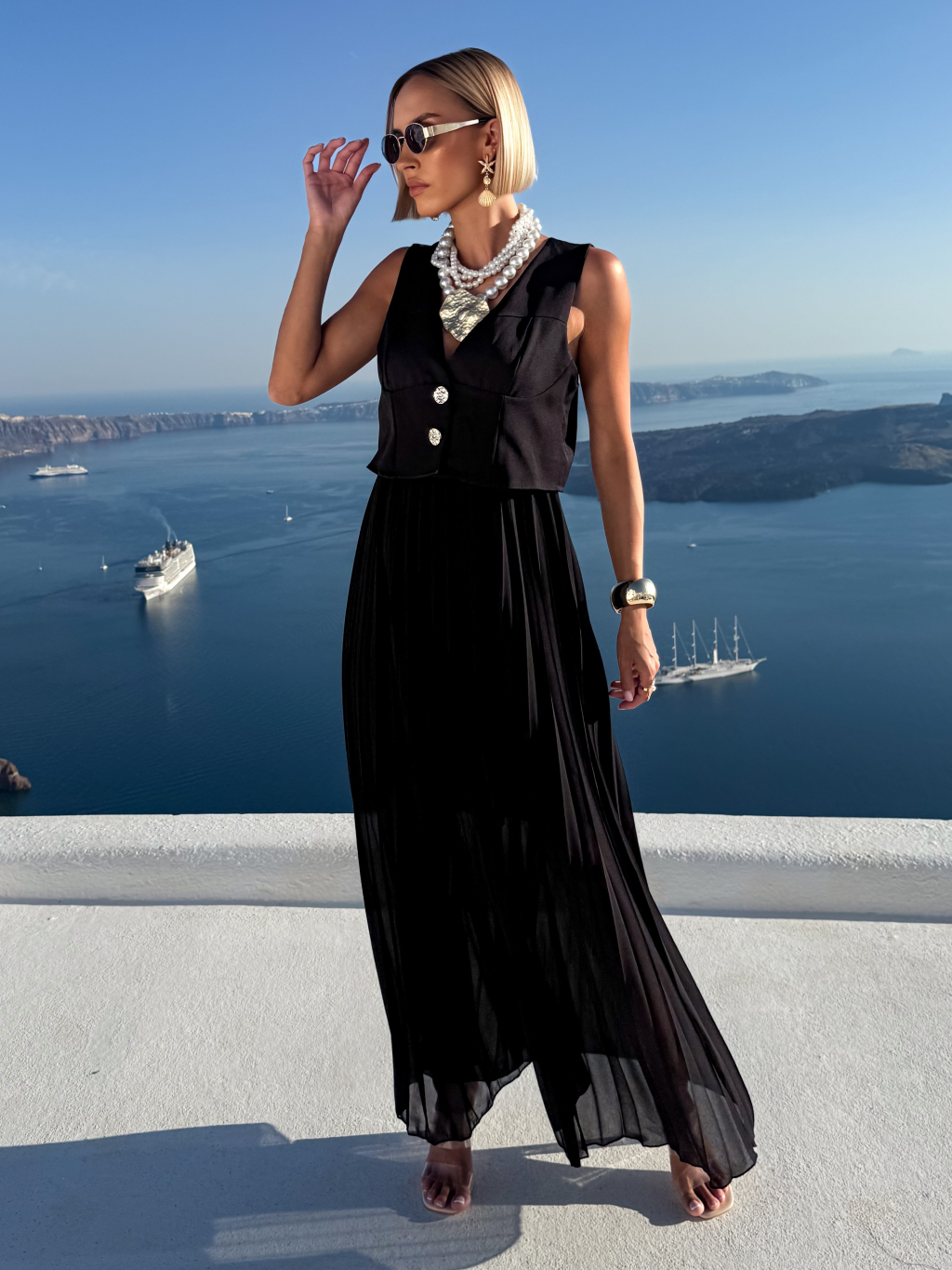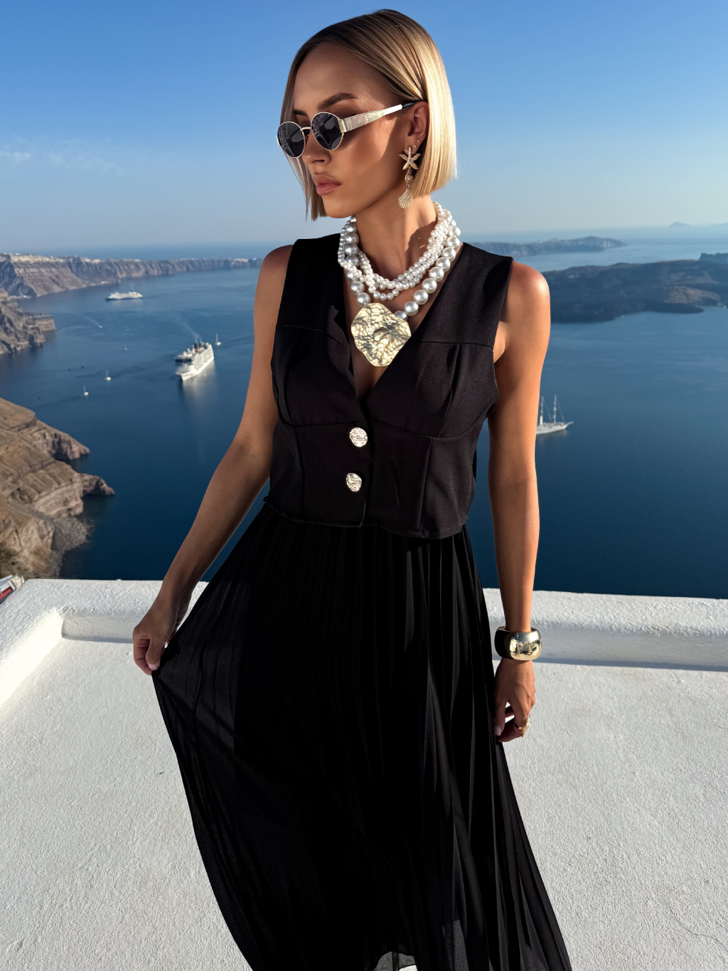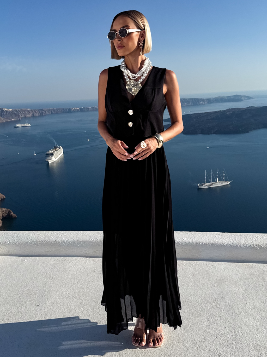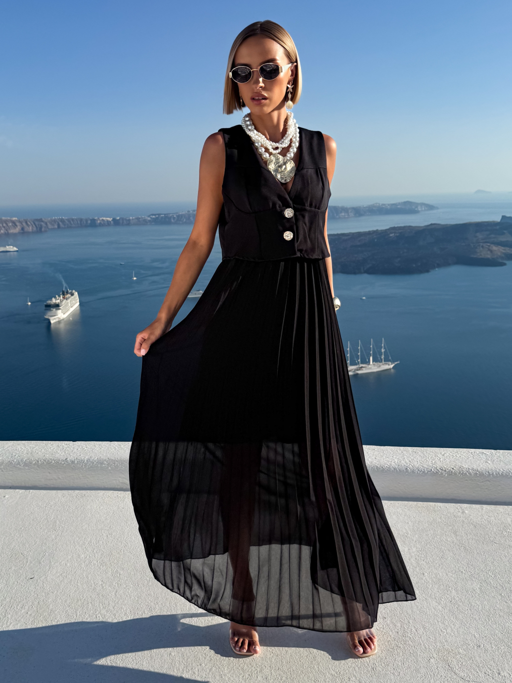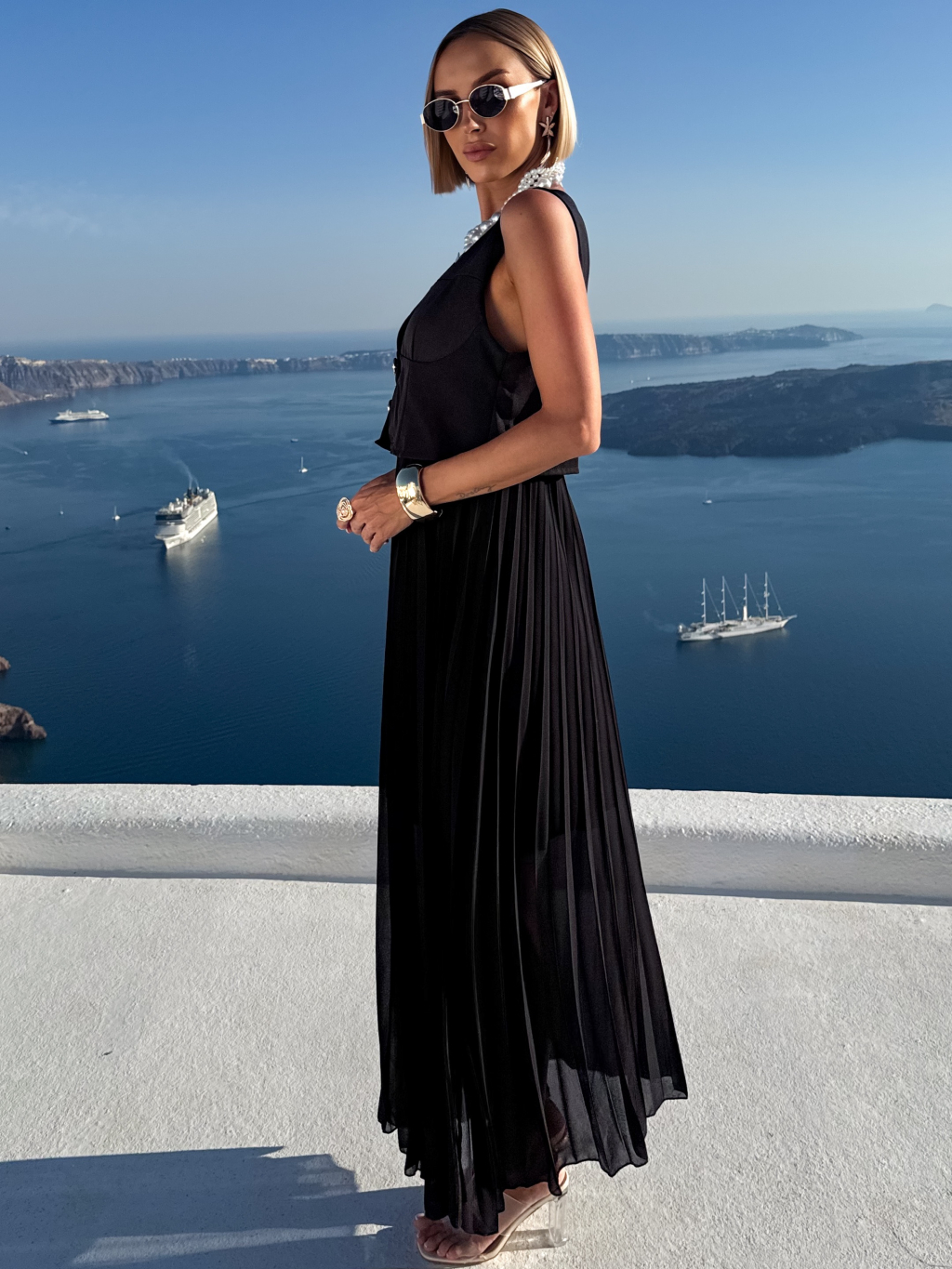 Černé stylové dlouhé šaty FAENA s plisovanou sukní