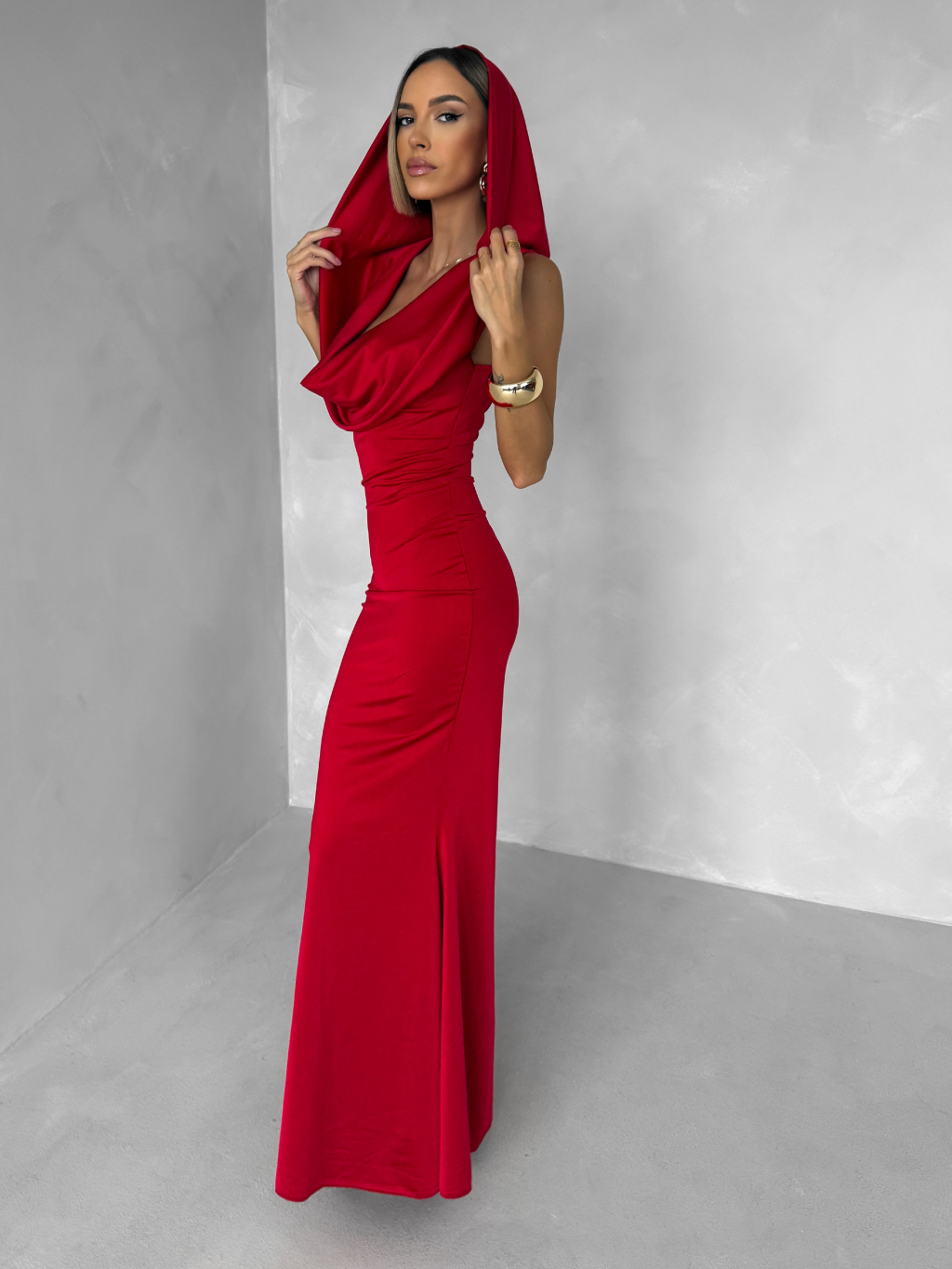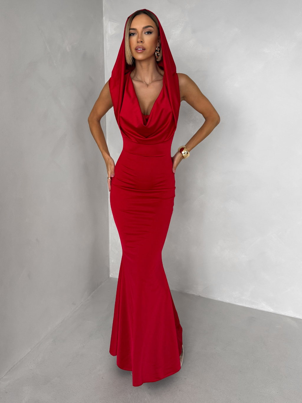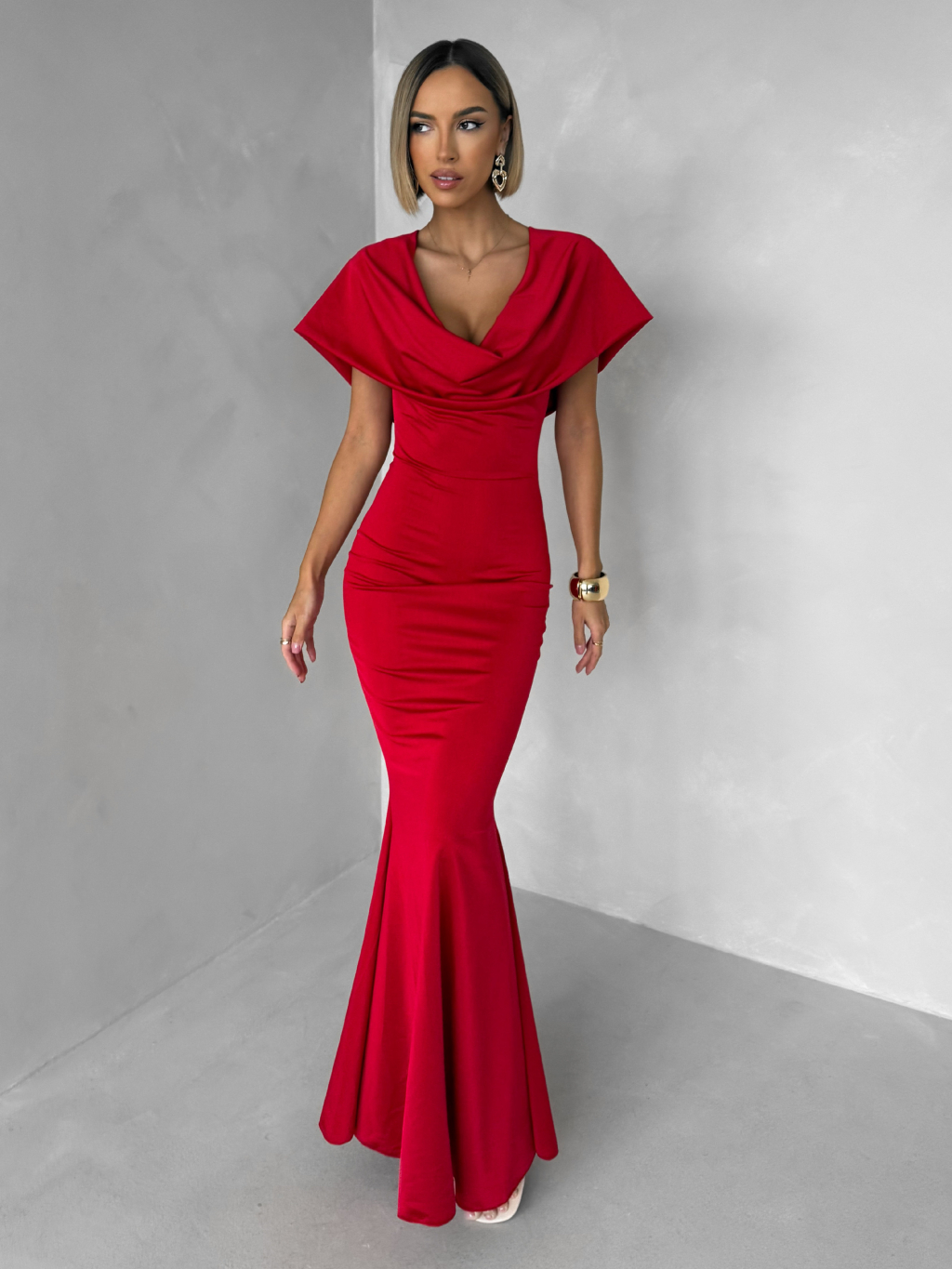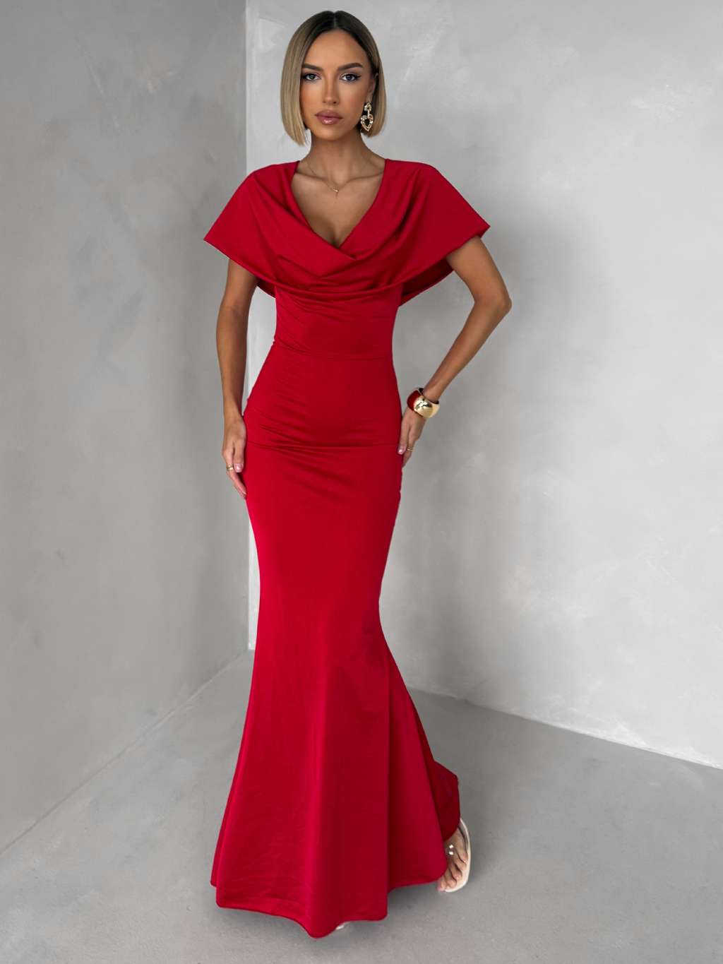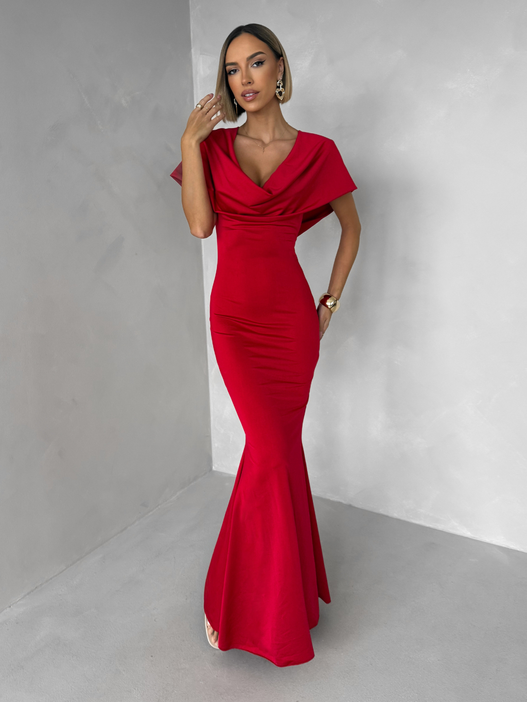 Červené společenské dlouhé šaty VELIQUE