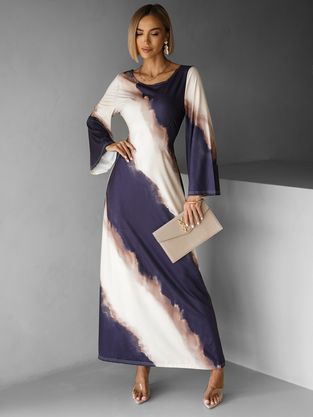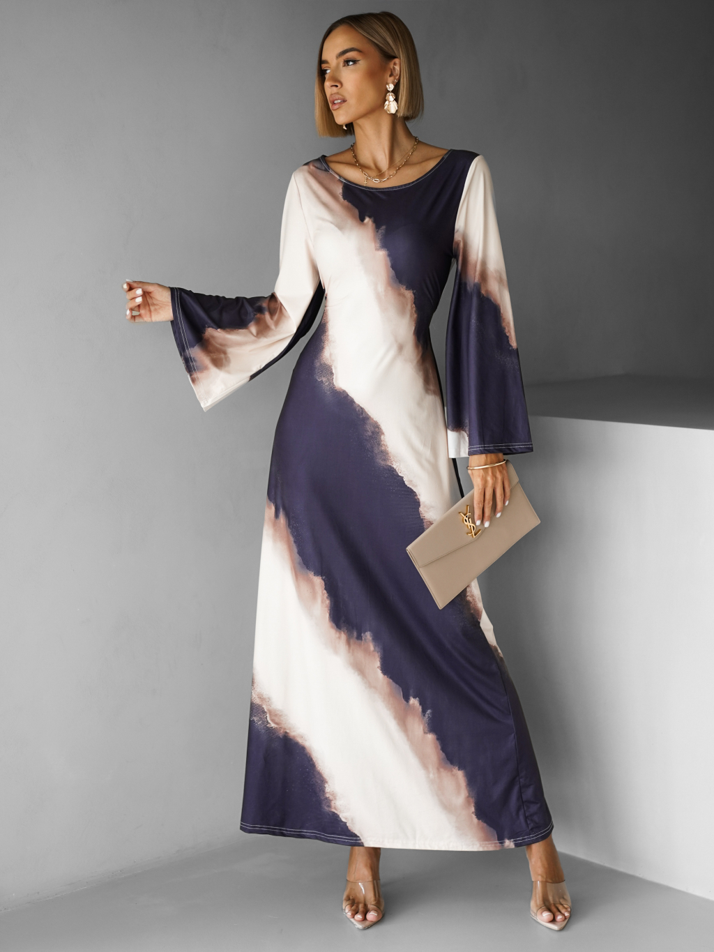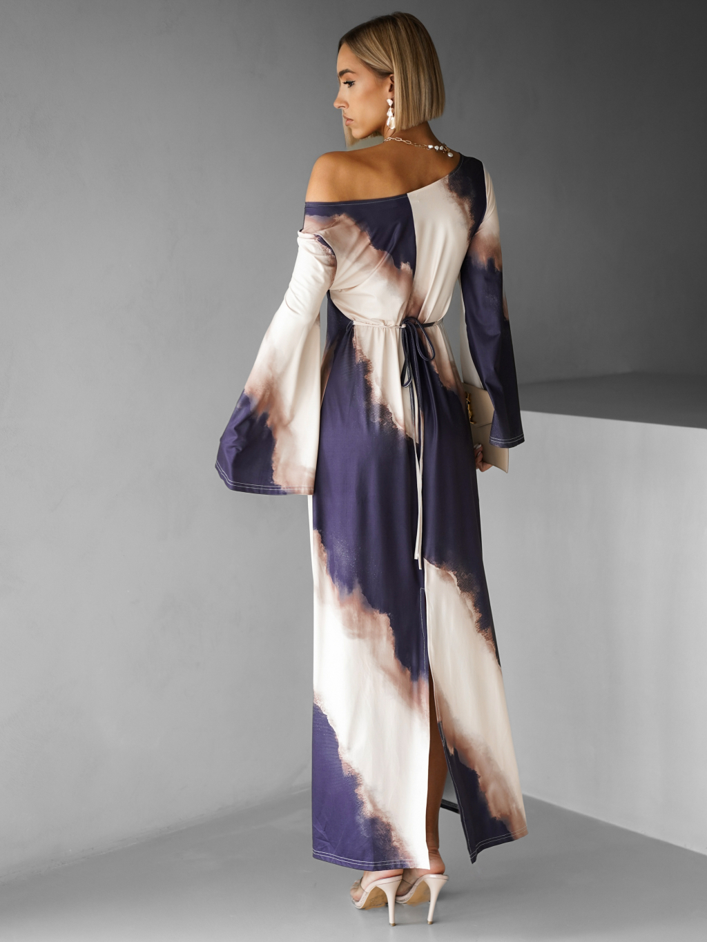 Elegantní oversize saténové maxi šaty BERGEN s vázáním
