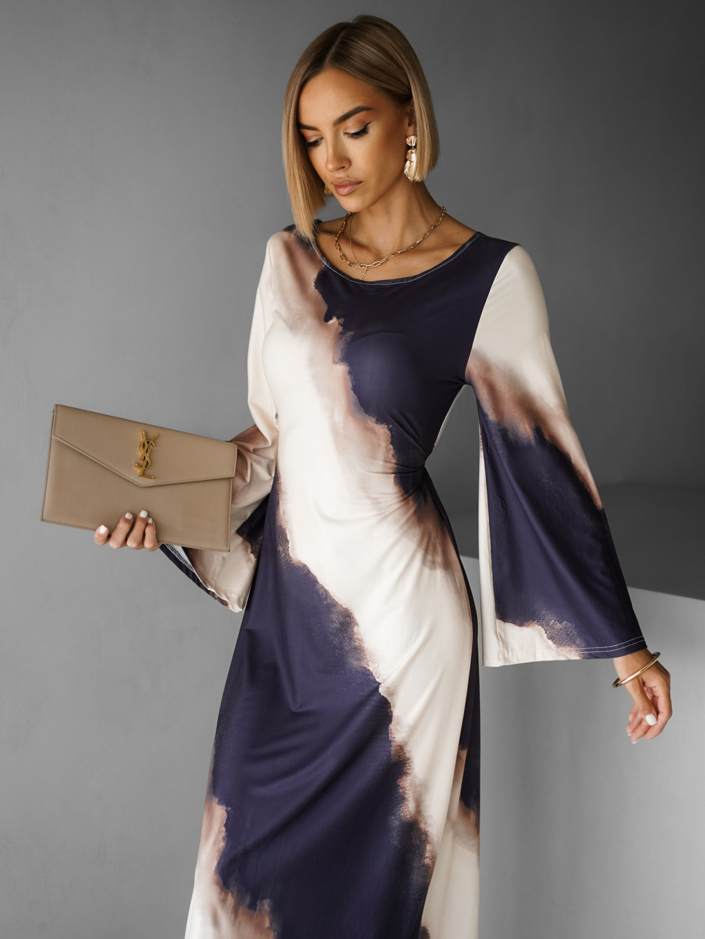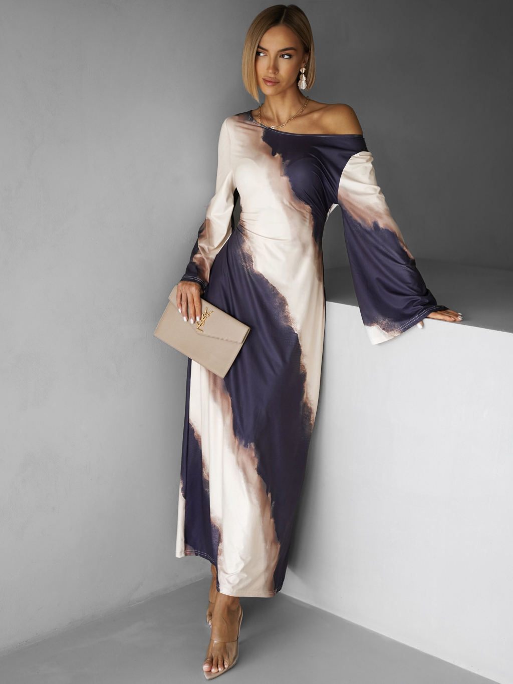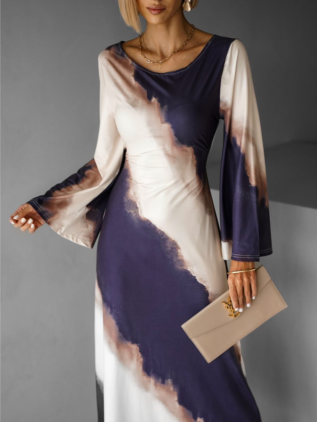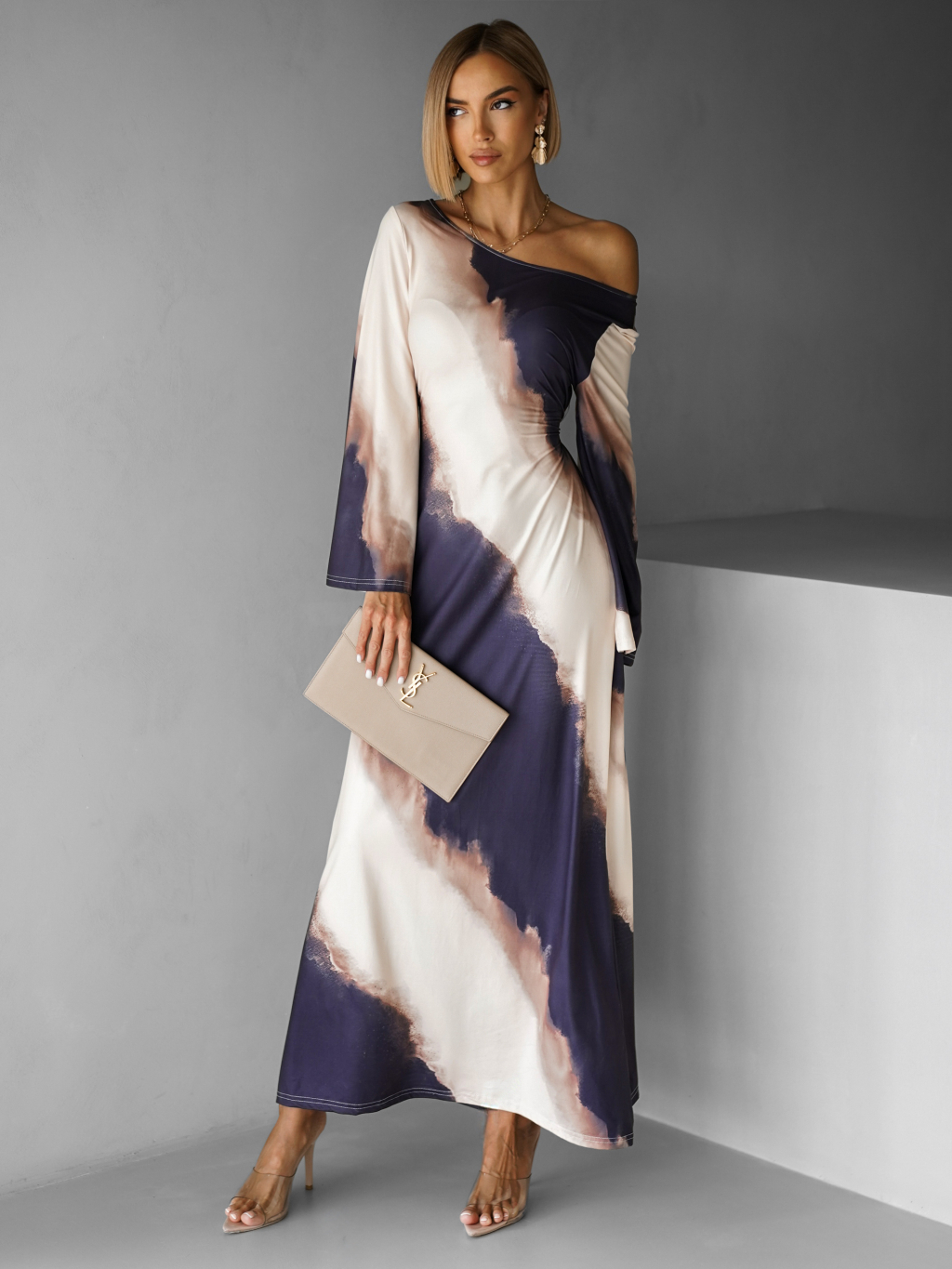 Elegantní oversize saténové maxi šaty BERGEN s vázáním