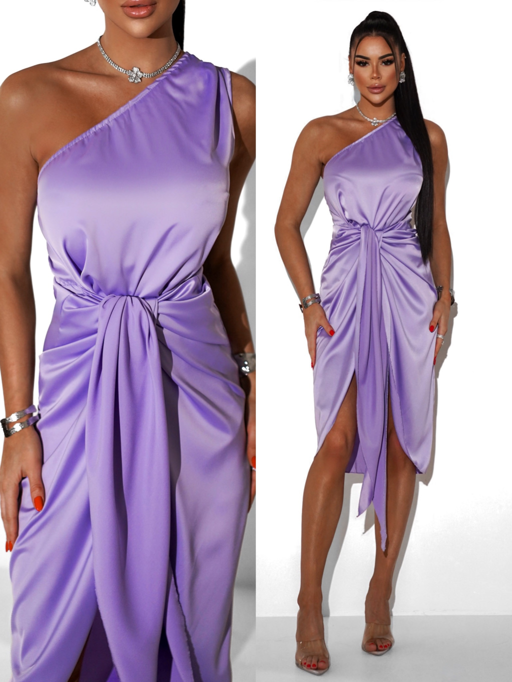 Fialové koktejlové asymetrické saténové šaty LIBIOSI
