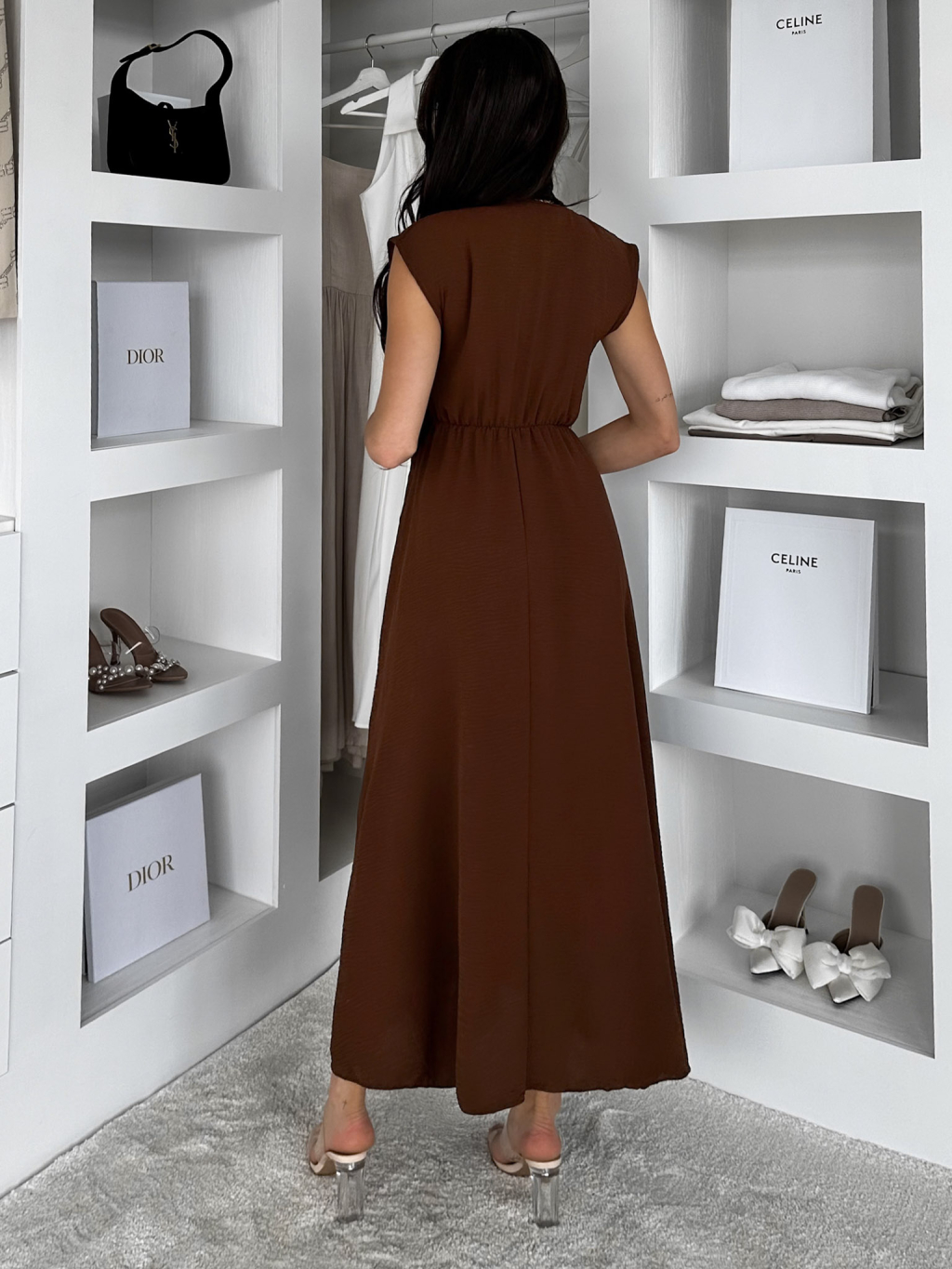 Hnědé dlouhé zavinovací šaty AVENYXA s páskem