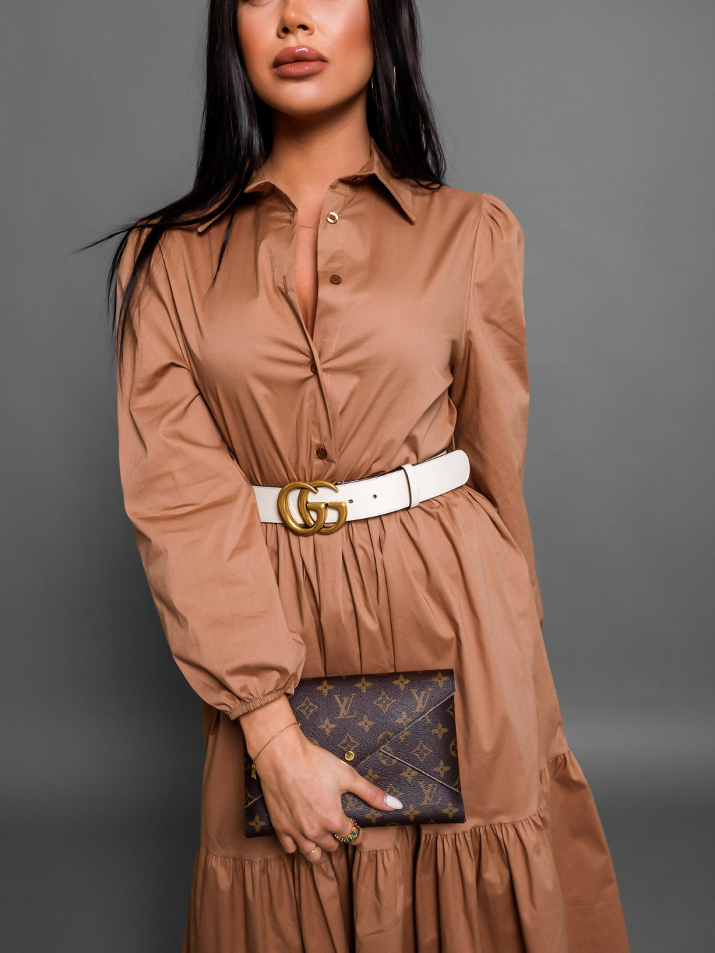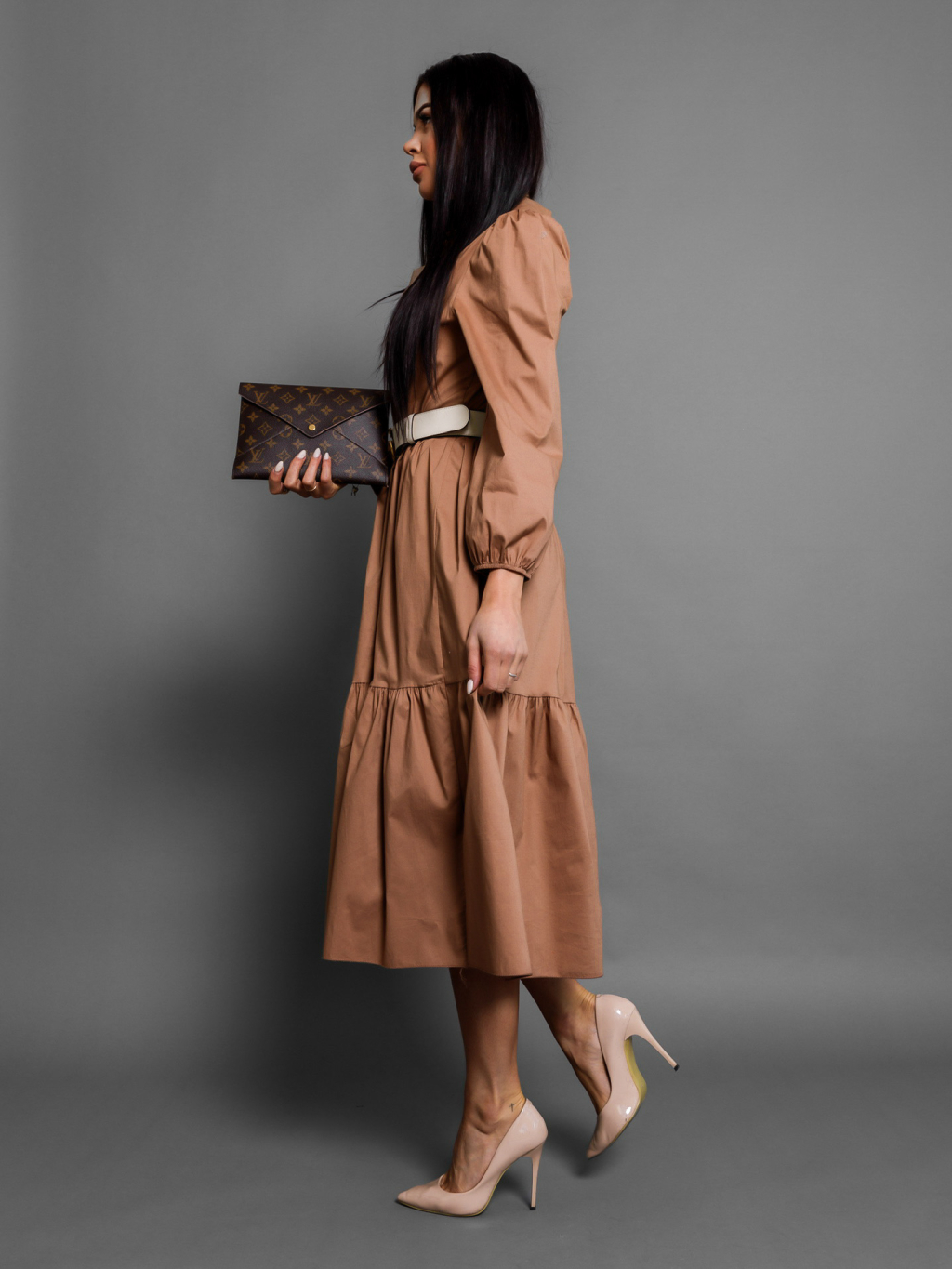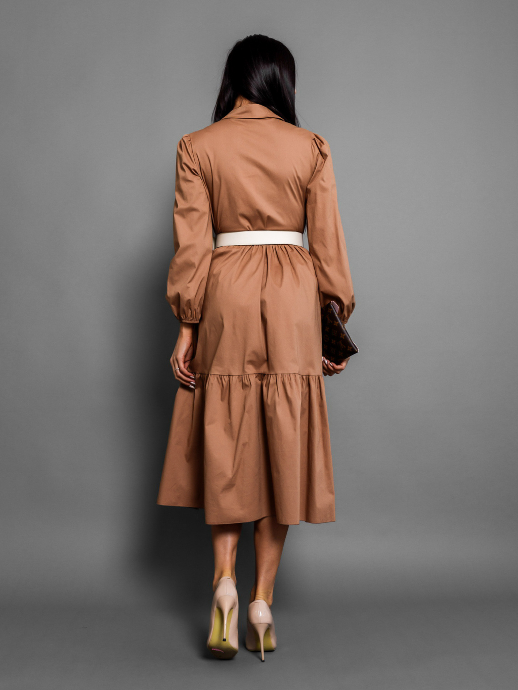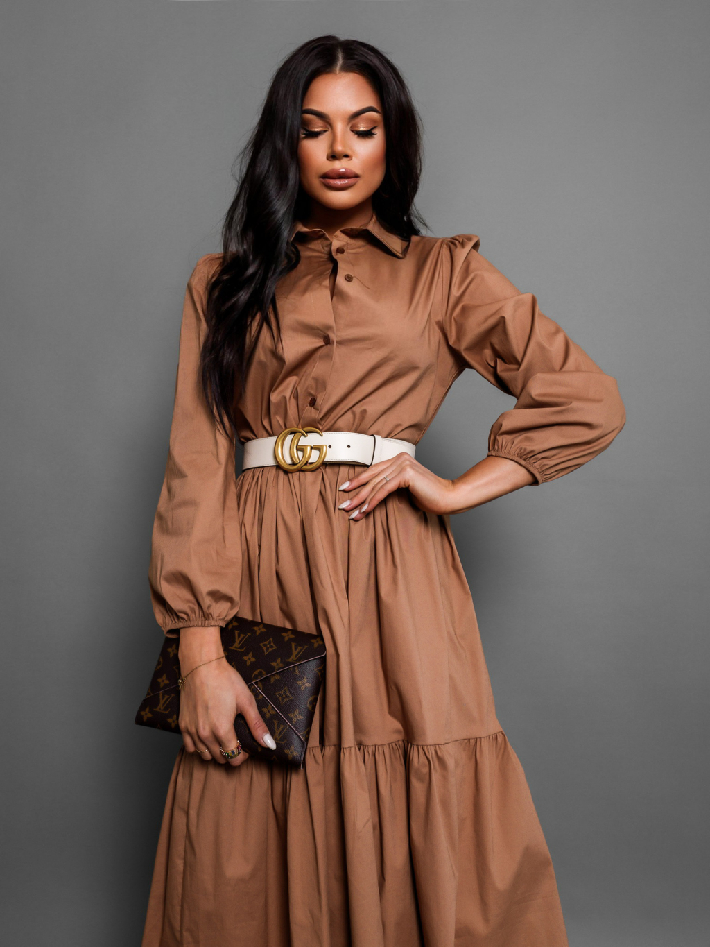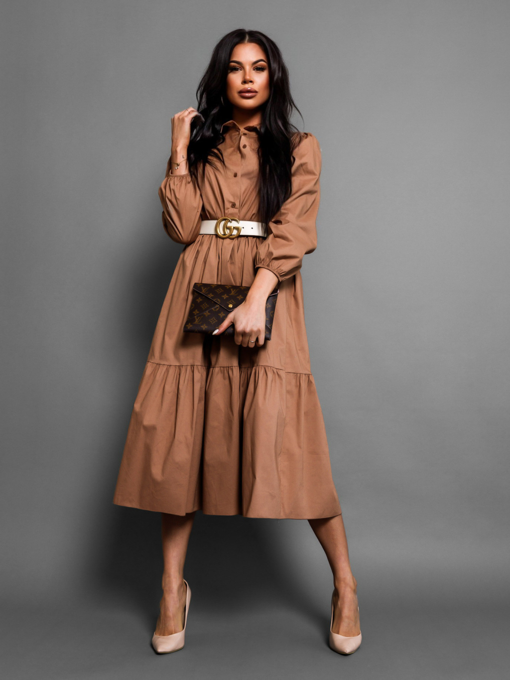 Hnědé košilové šaty ANITE s dlouhým rukávem
