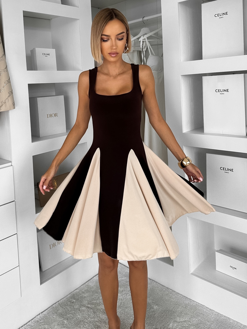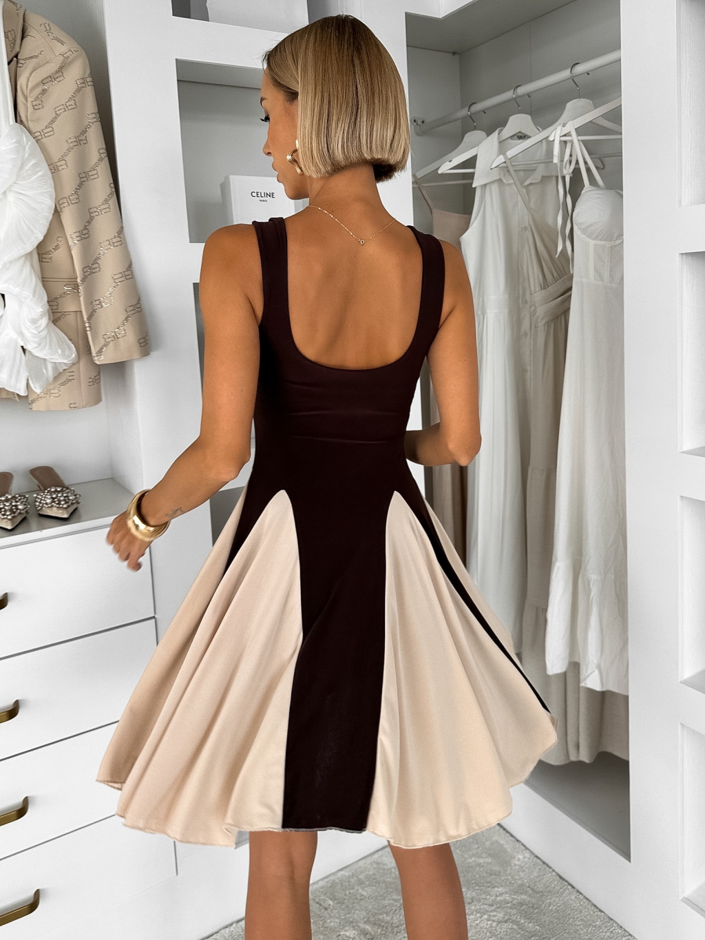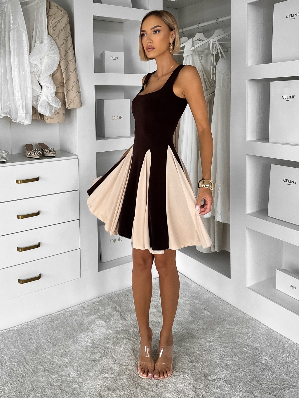 Hnědé krátké elegantní áčkové šaty NOREZA