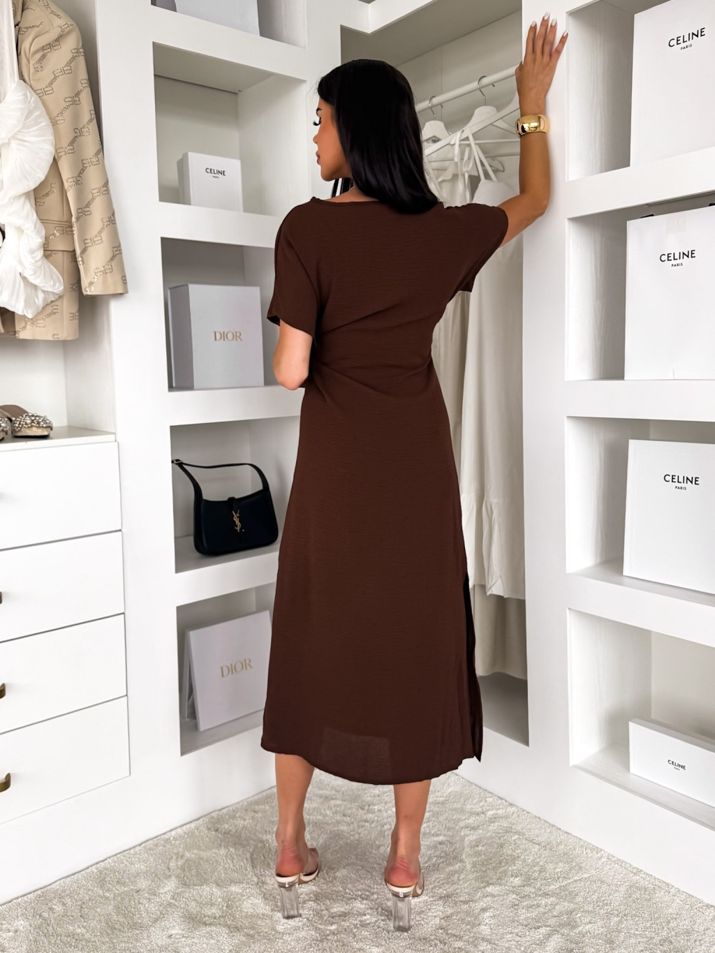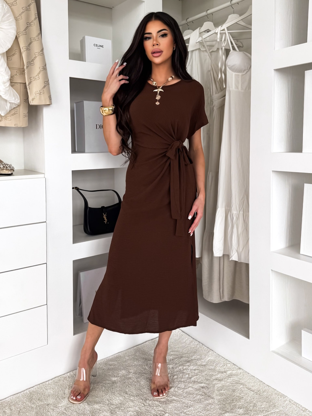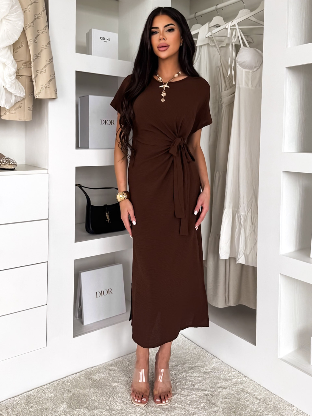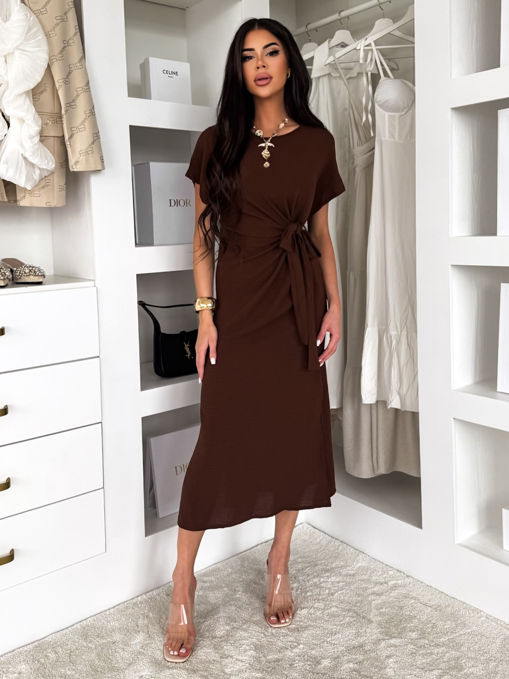Hnědé lehké vypasované šaty NIRELA s vázáním