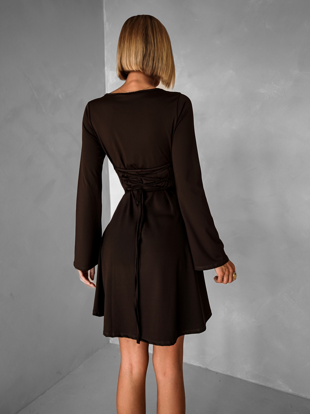 Hnědé stahovací šaty STIEL s dlouhým rukávem
