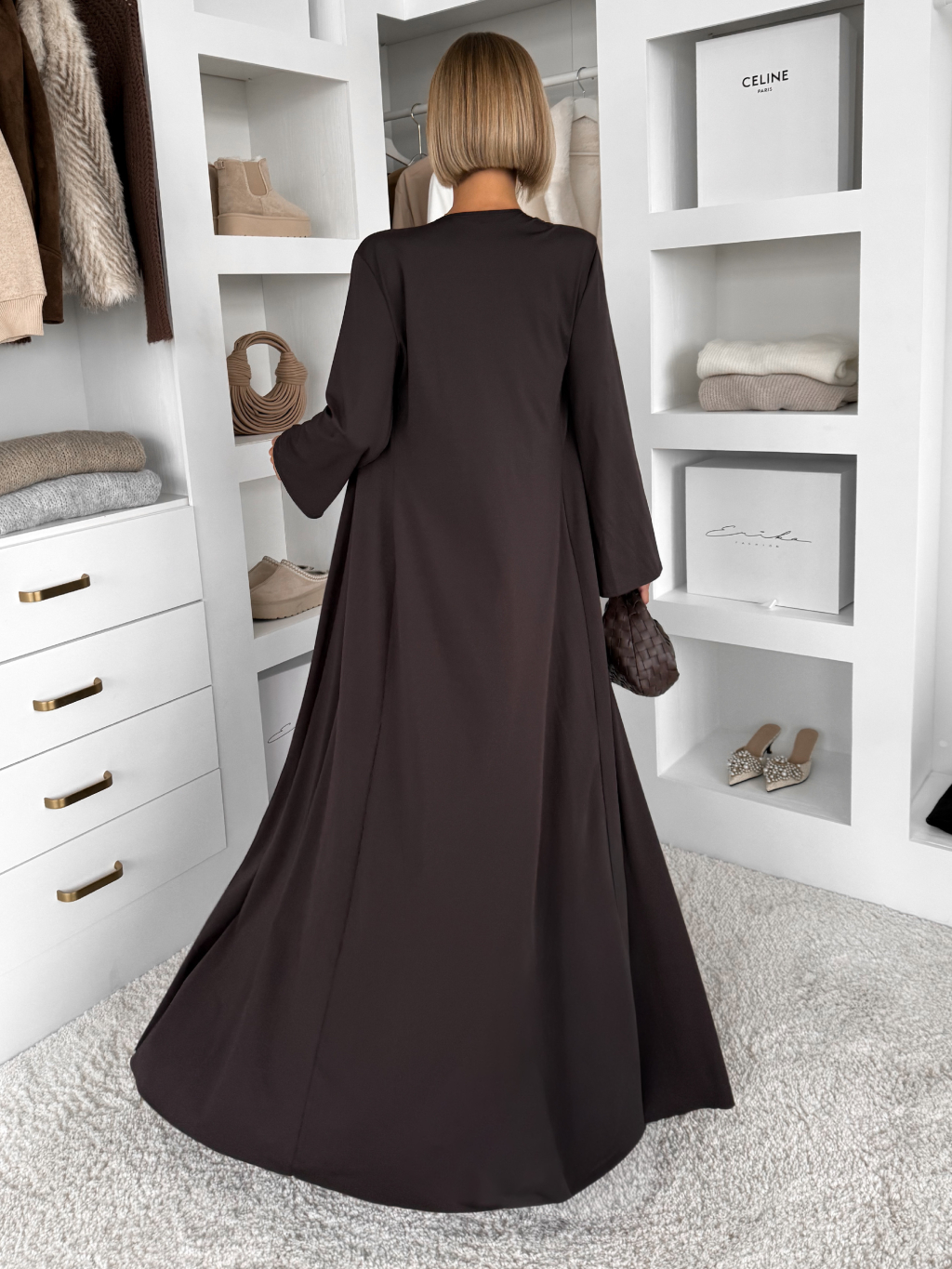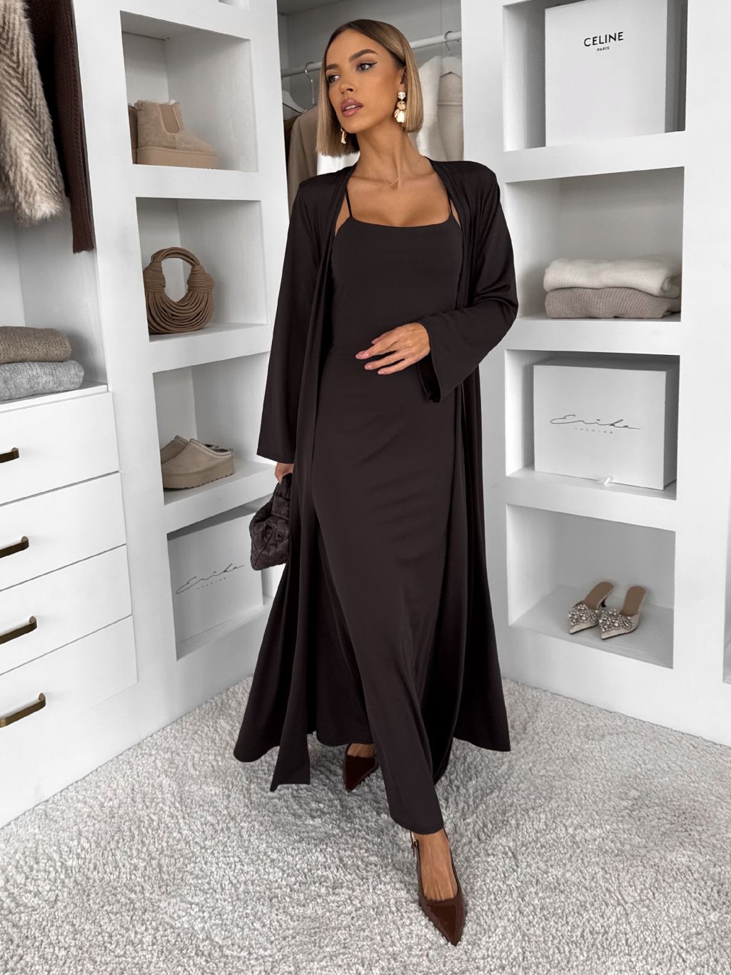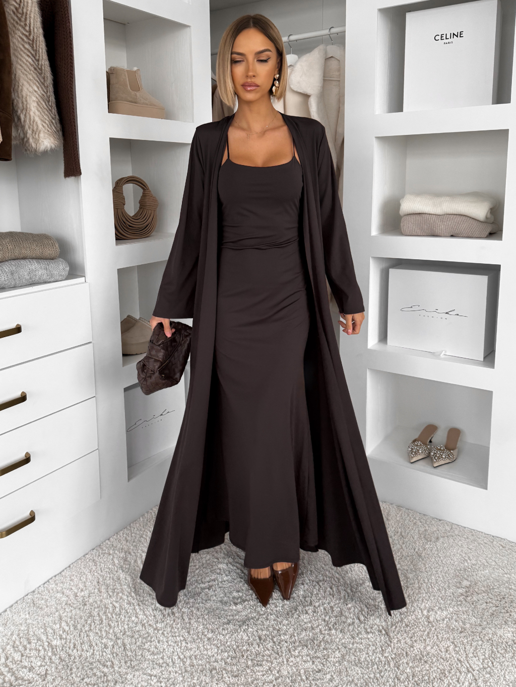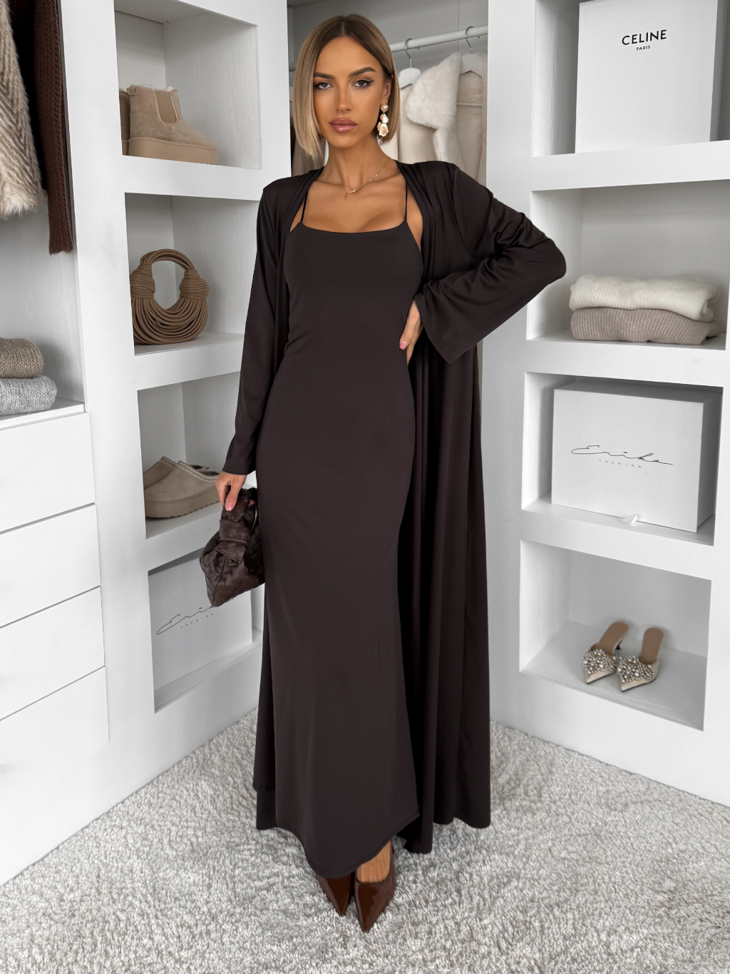 Hnědý elegantní dlouhý komplet set ARIVELLE
