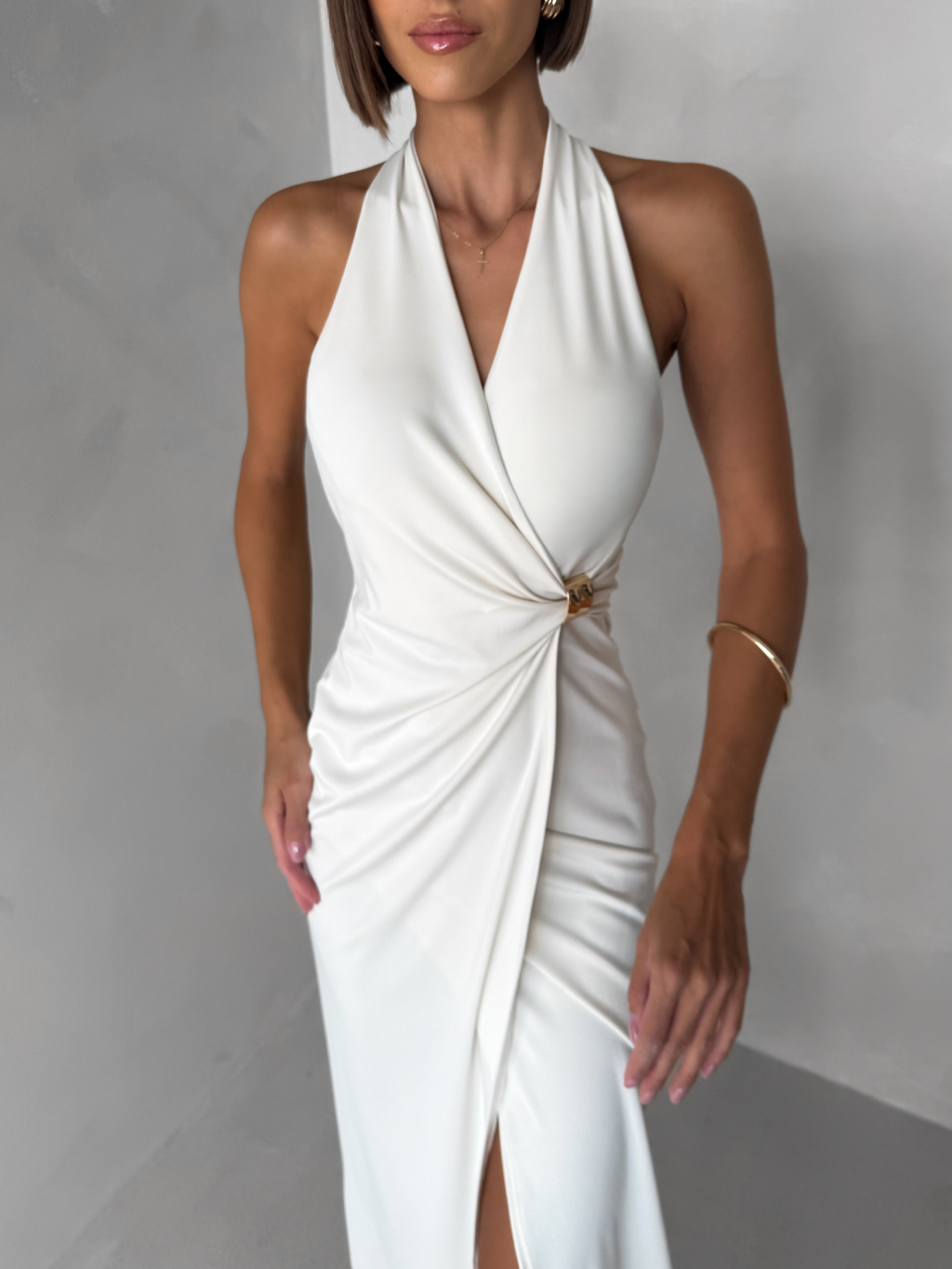 Krémové dlouhé elegantní společenské šaty KALIXA s výstřihem
