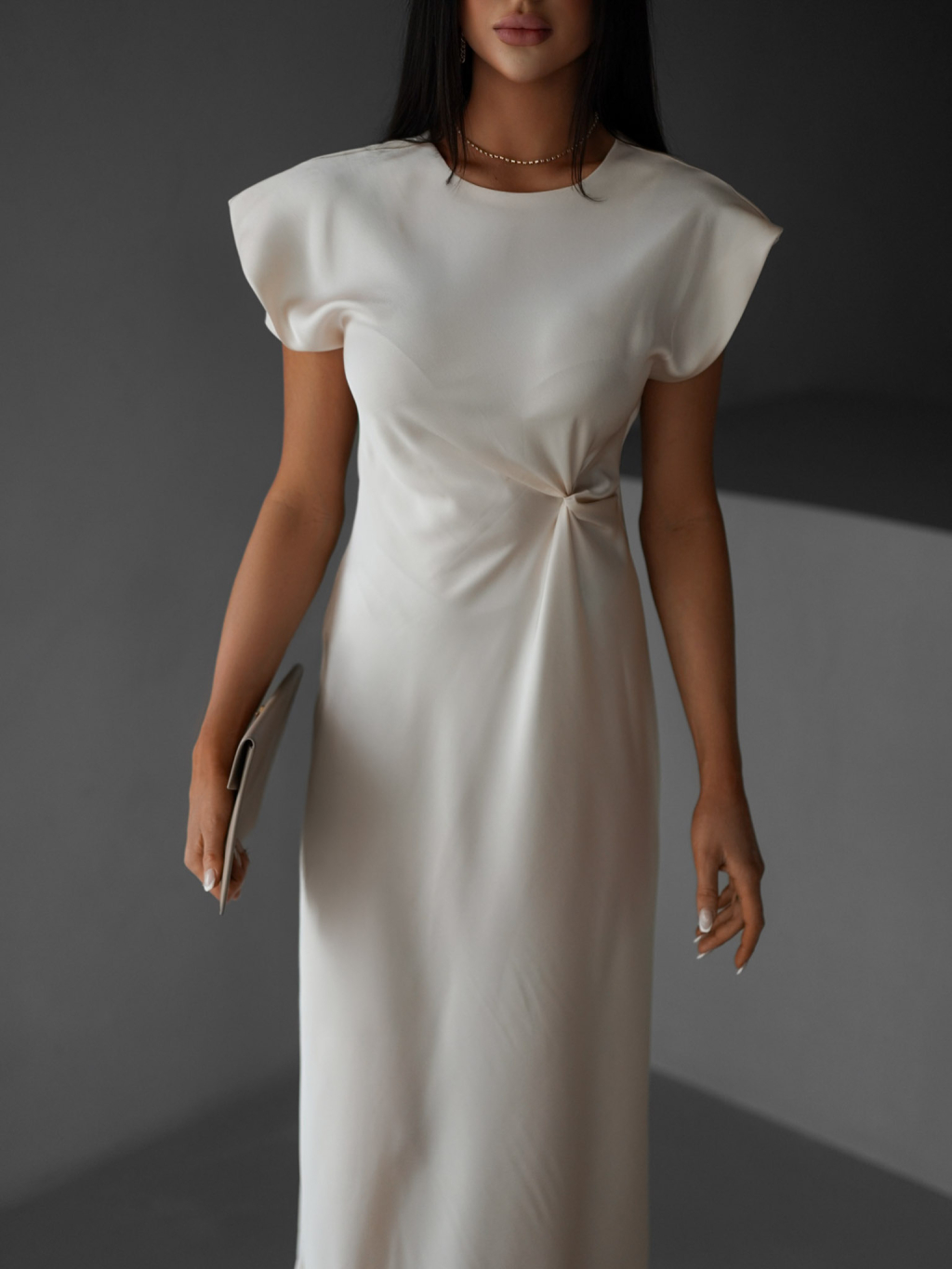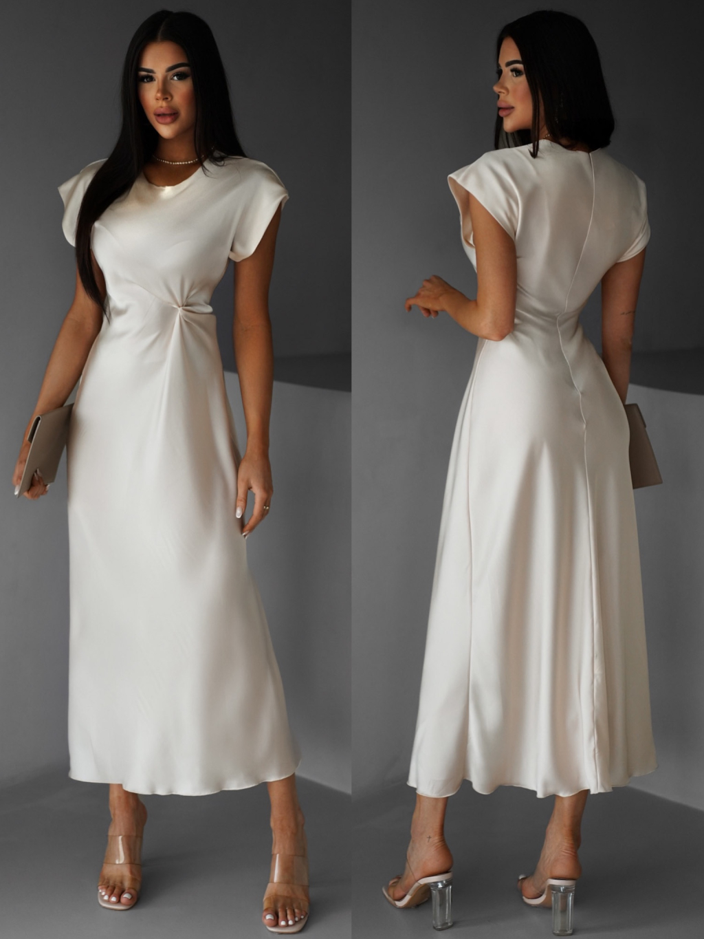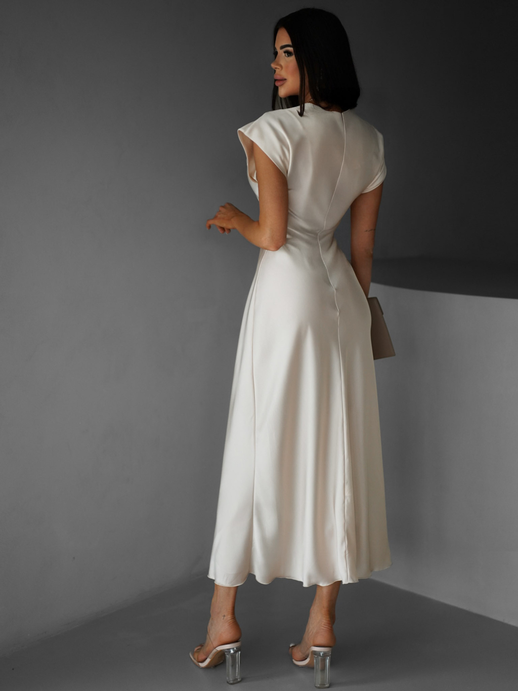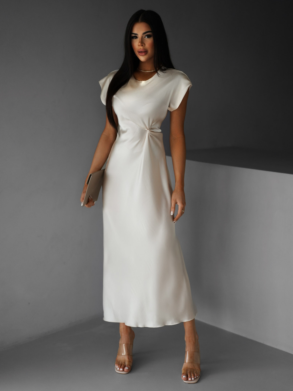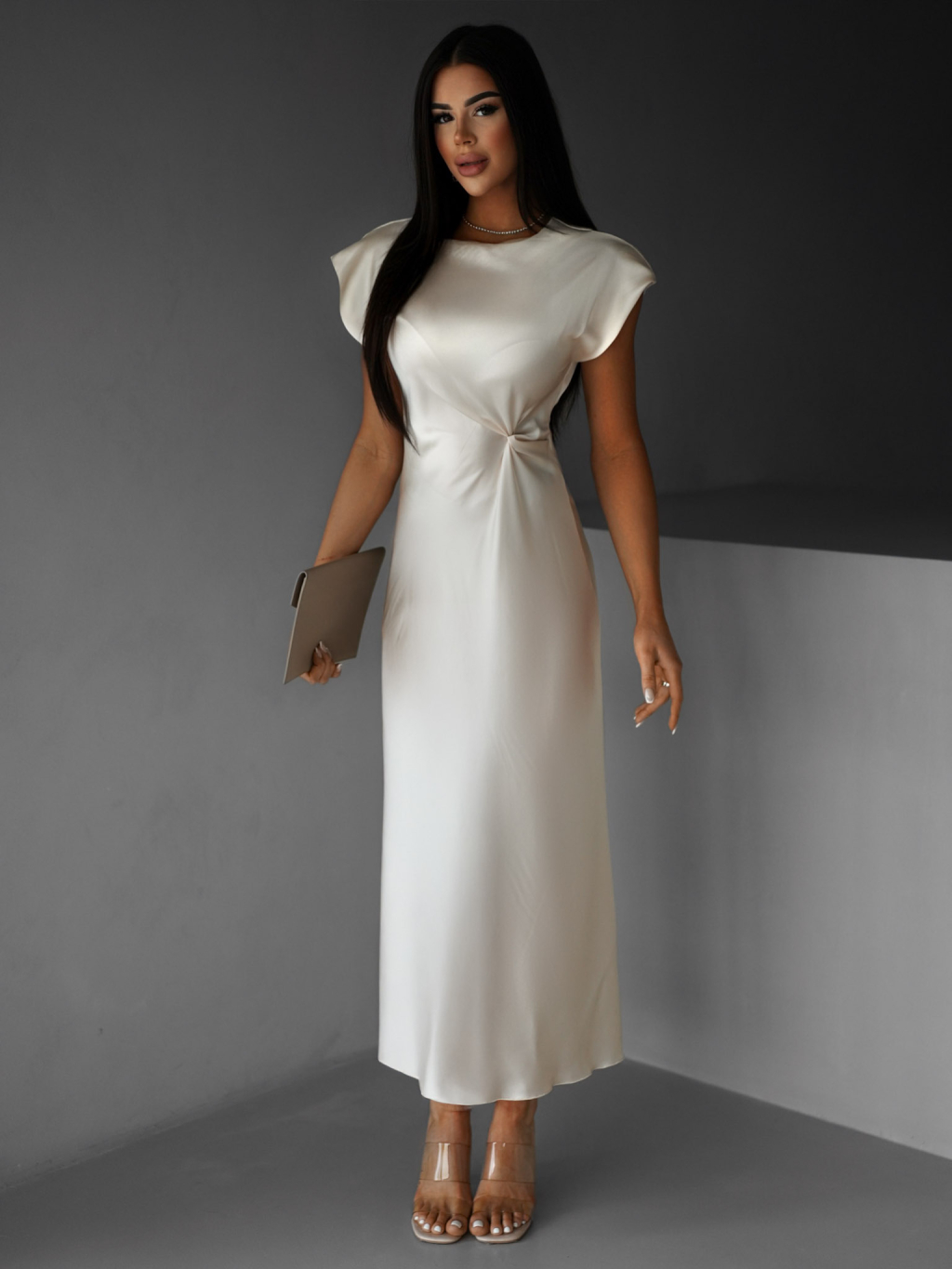Krémové saténové dlouhé šaty SIMONO