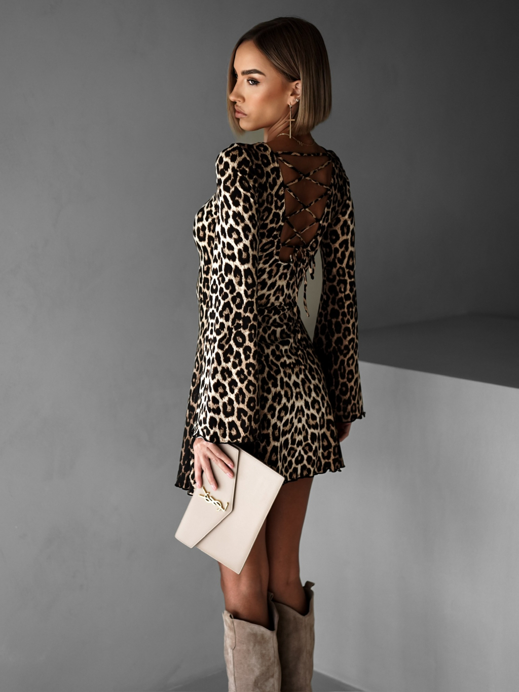 Leopardí krátké šaty AGNETA s dlouhým rukávem