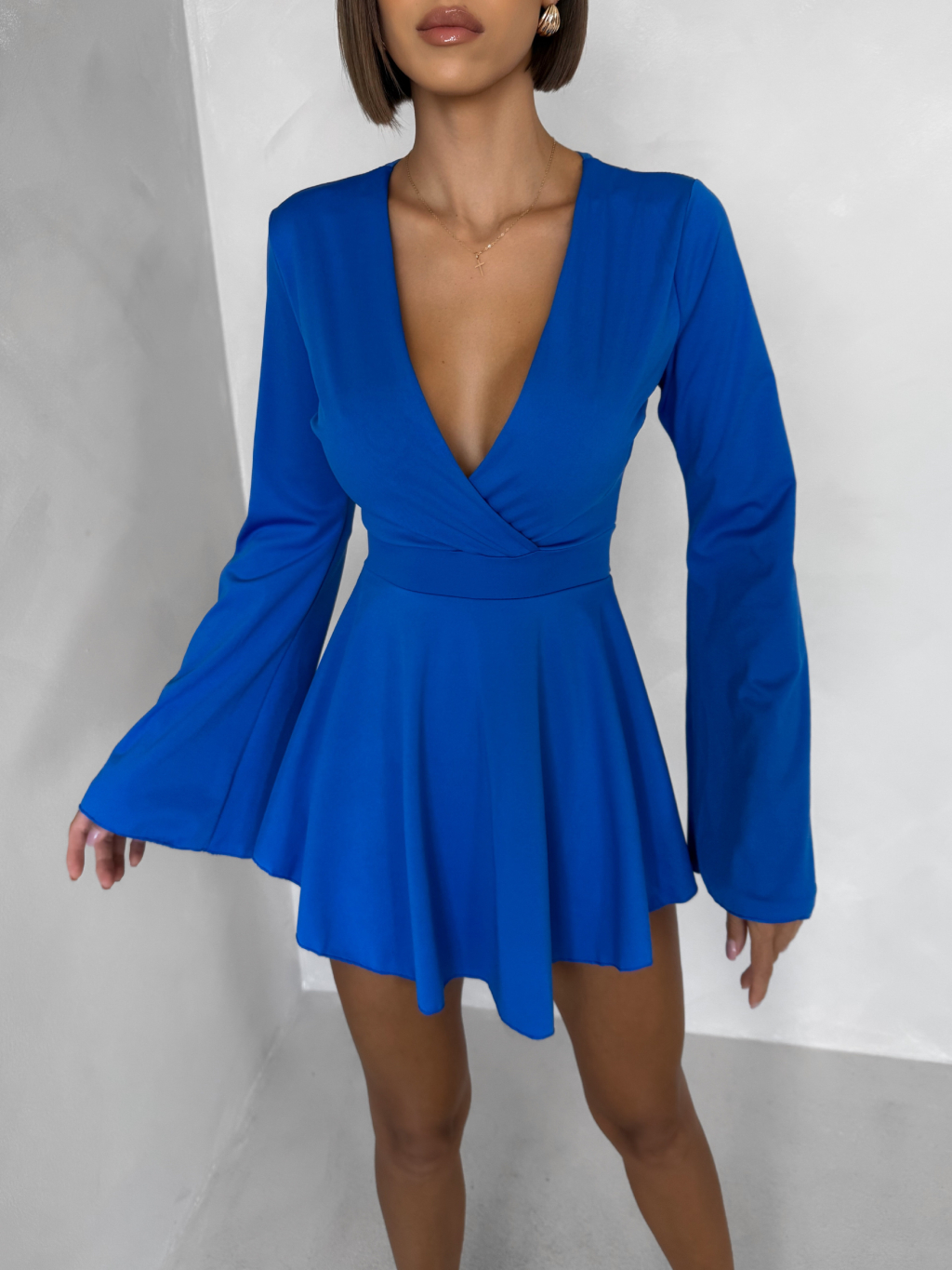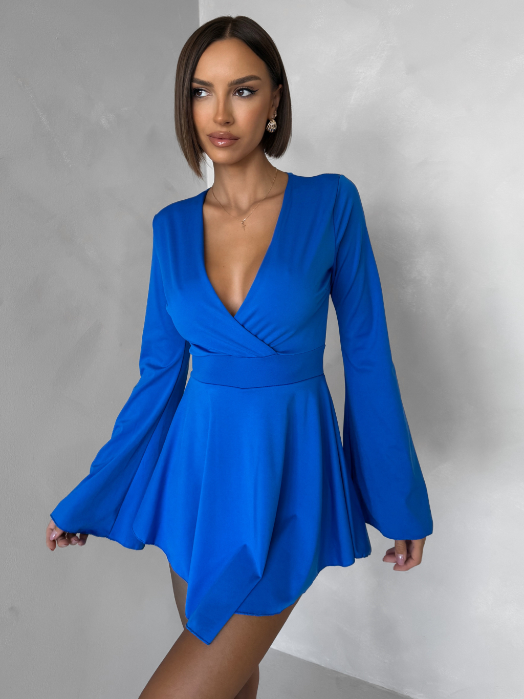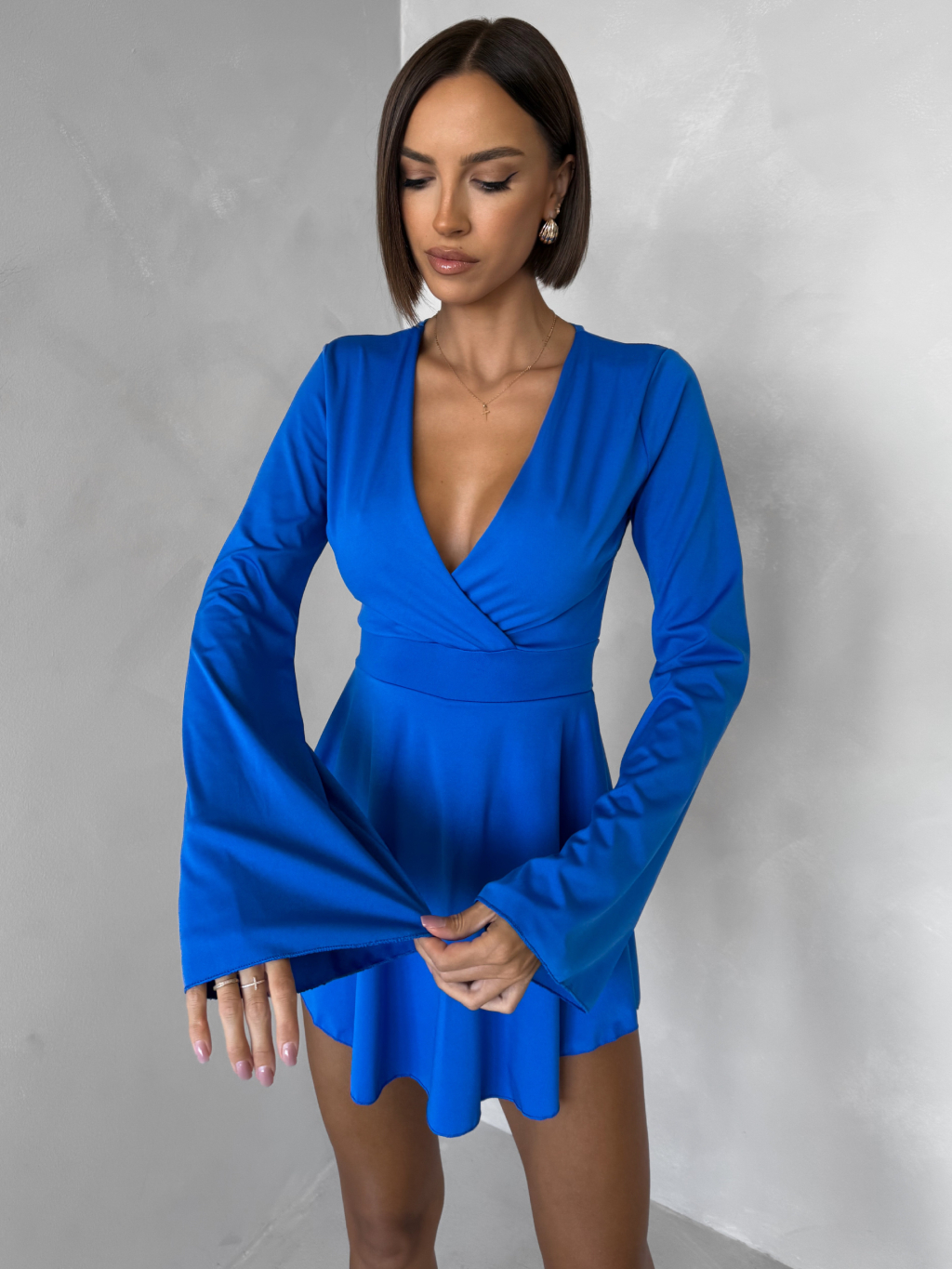 Modré koktejlové šaty STREGH s dlouhým rukávem