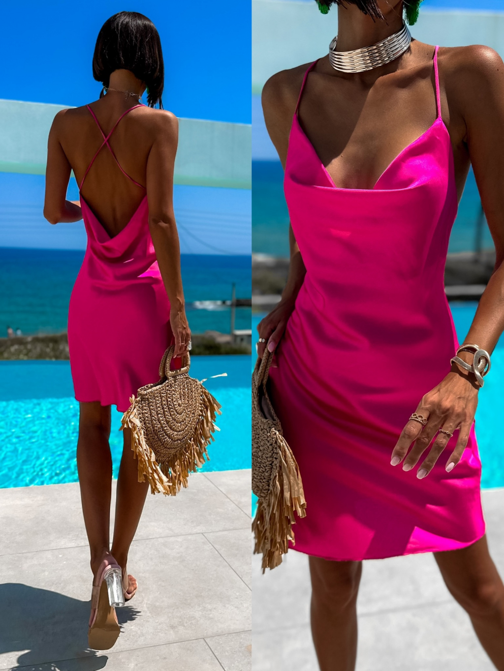 Růžové lesklé šaty IZZY s tenkými ramínky