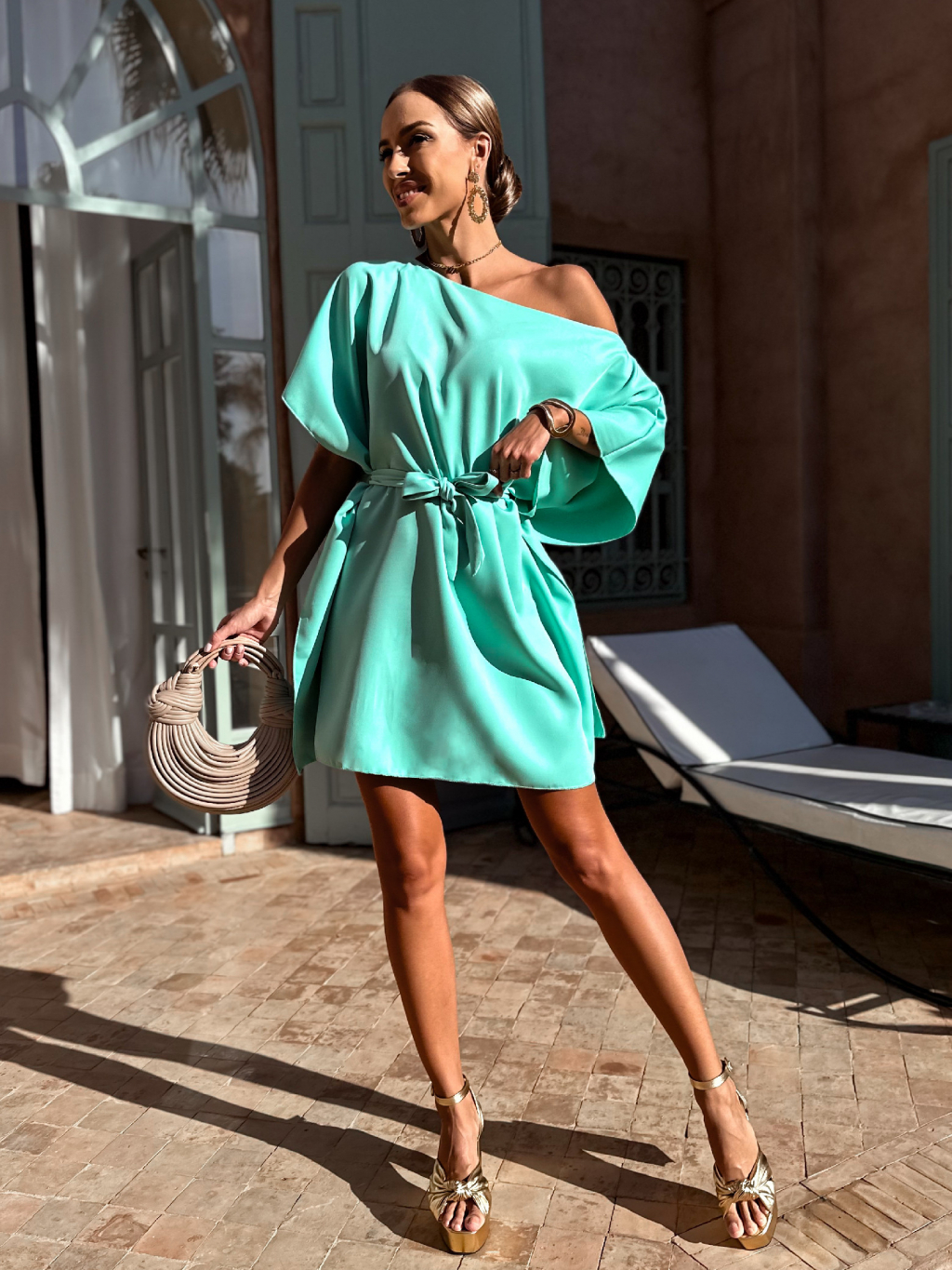 Mentolové oversize elegantní šaty GRANDIE