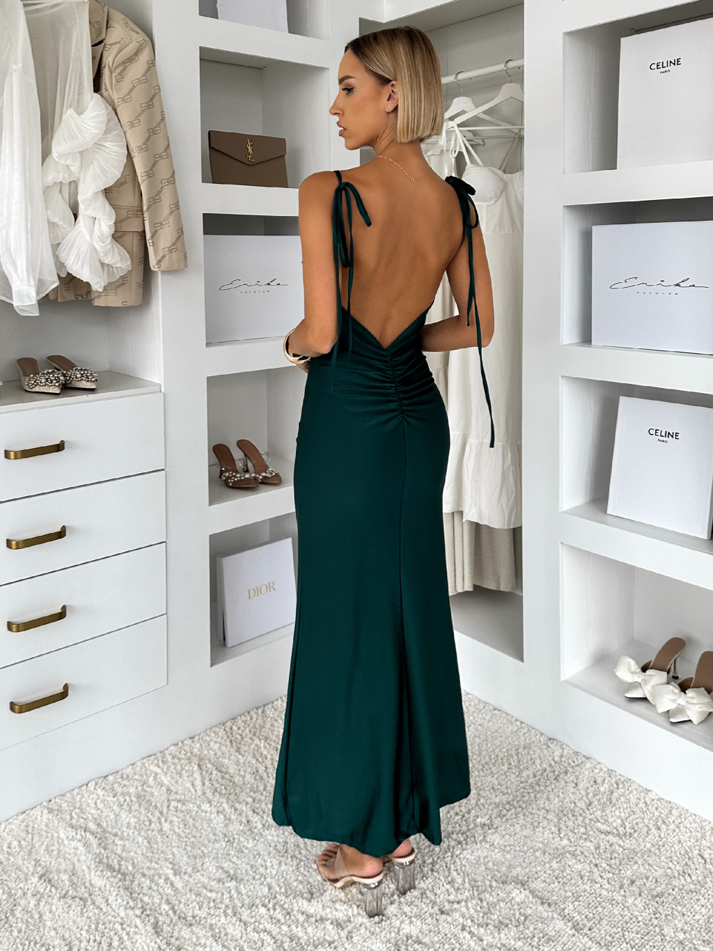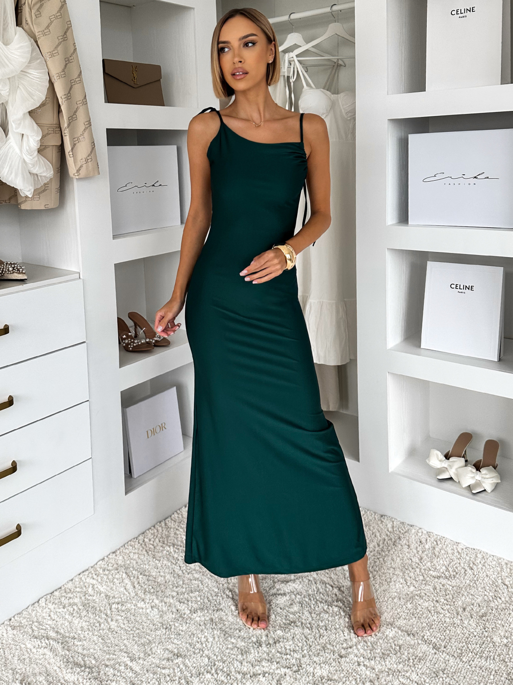 Smaragdové společenské šaty MATYIA se zavazováním na ramenech