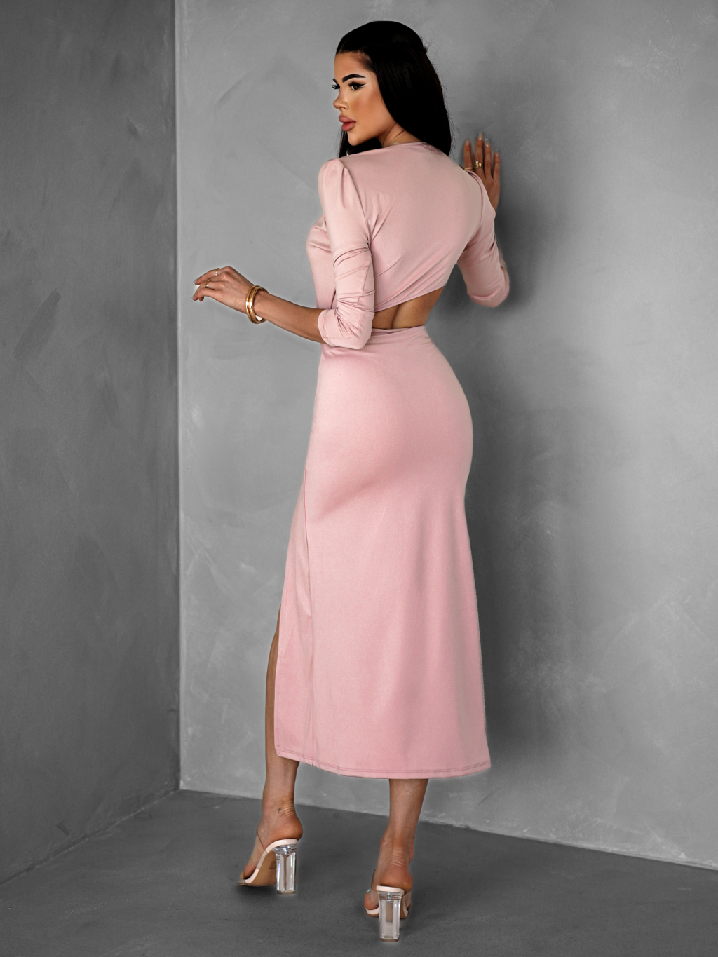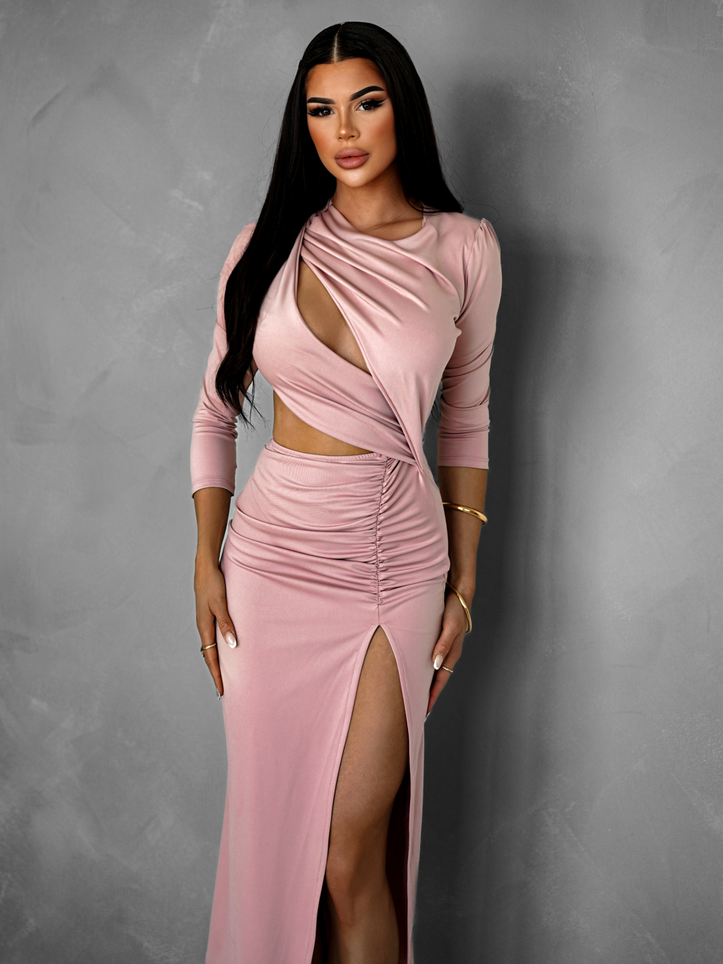 Starorůžové asymetrické přiléhavé šaty BAJRO
