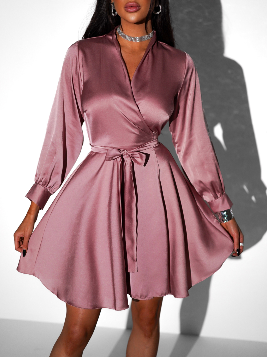 Starorůžové zavinovací šaty WILTON s dlouhým rukávem