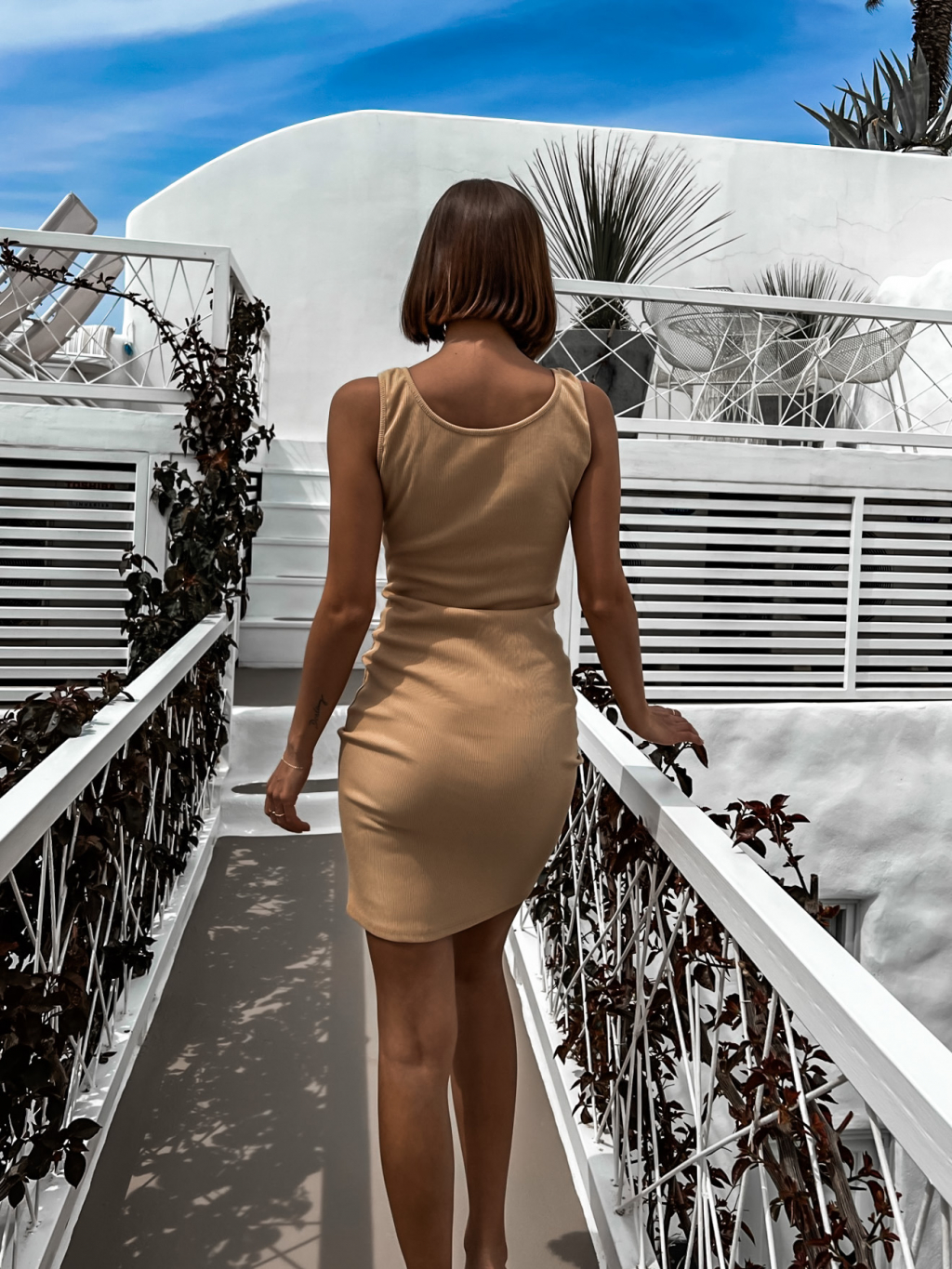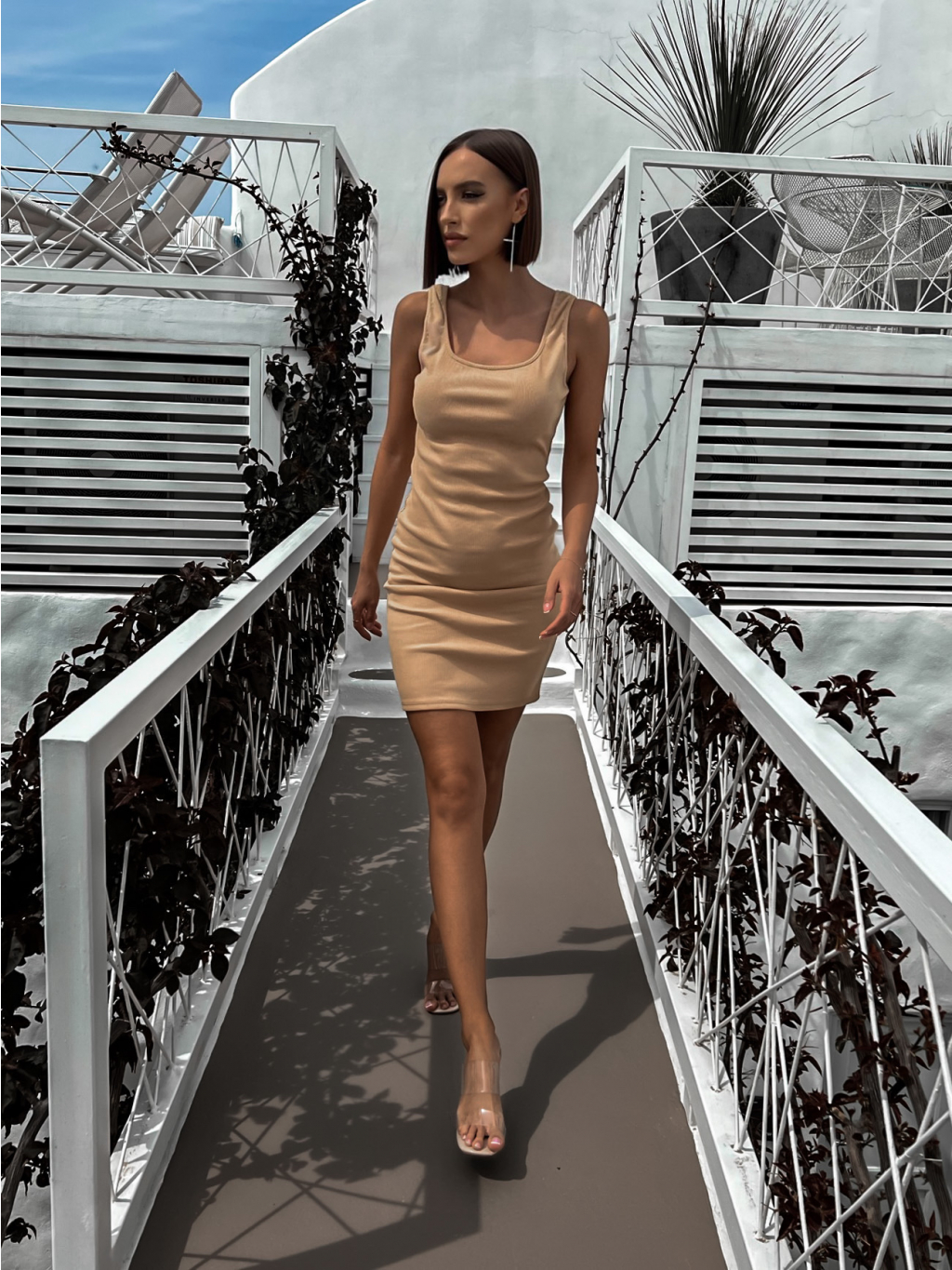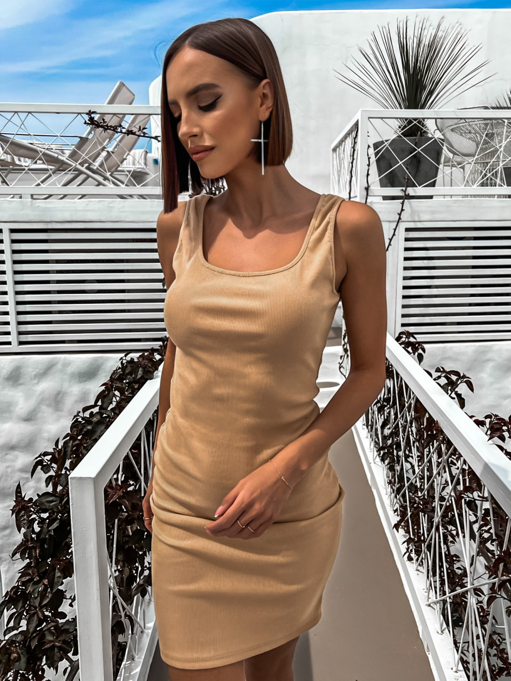 Světle hnědé jednoduché žebrované šaty THEODORE