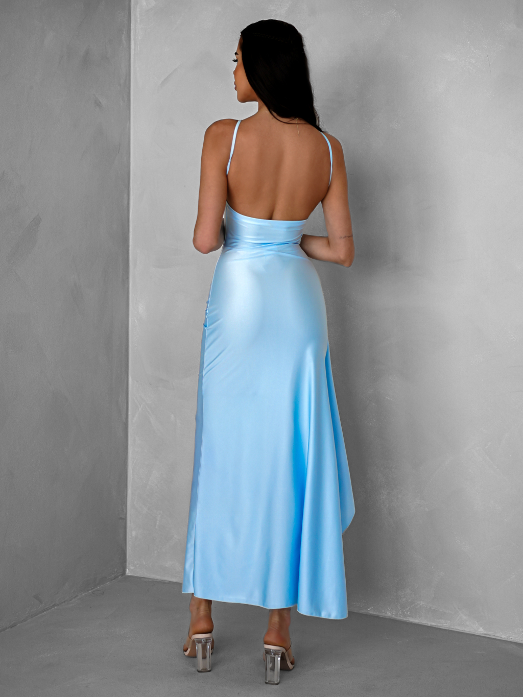Světle modré asymetrické šaty ARWEN s rozparkem