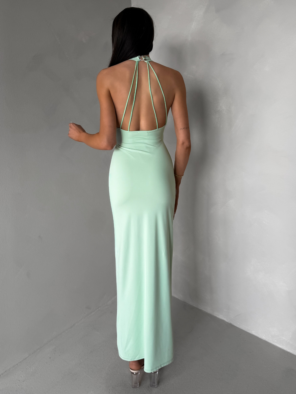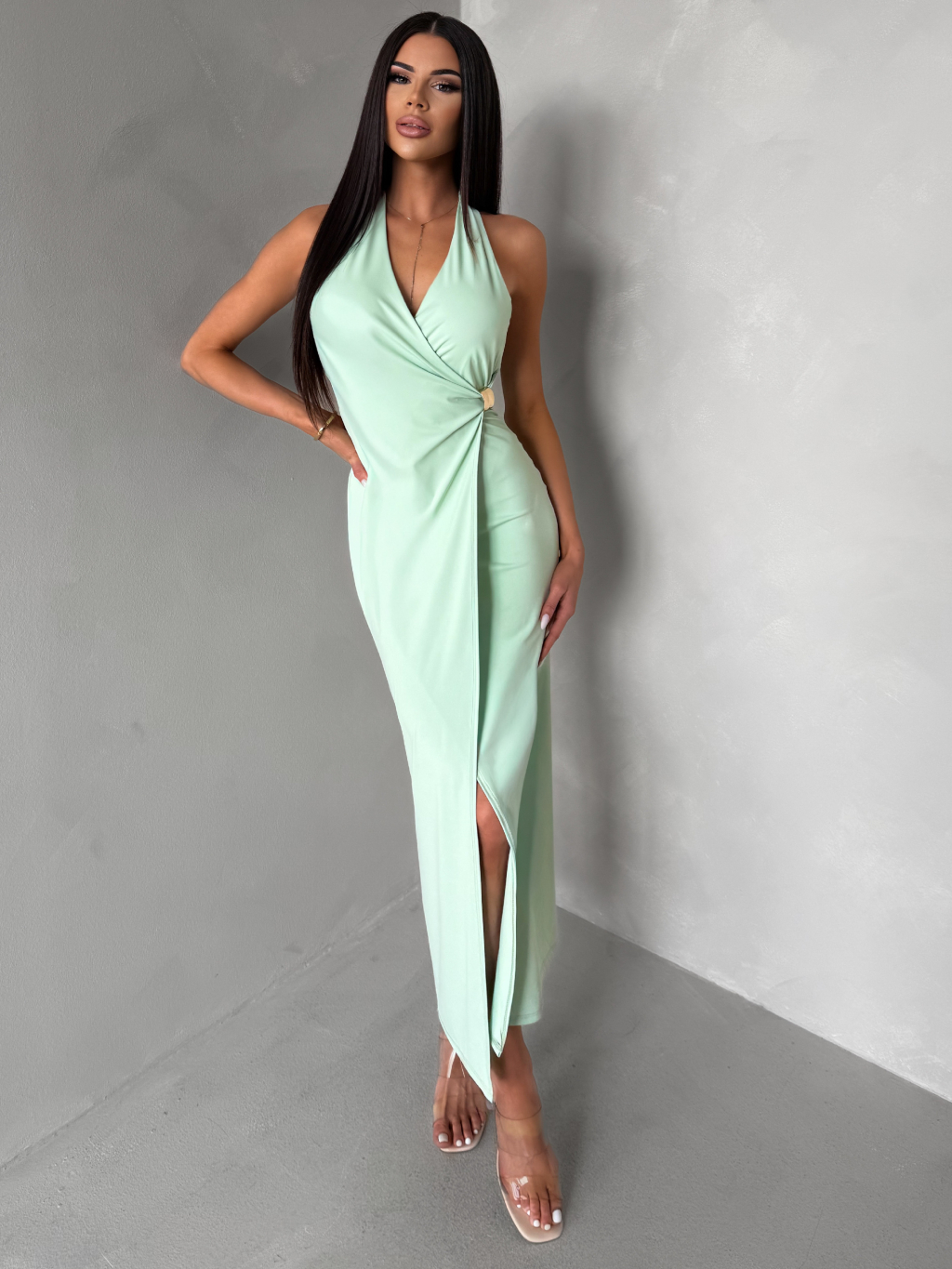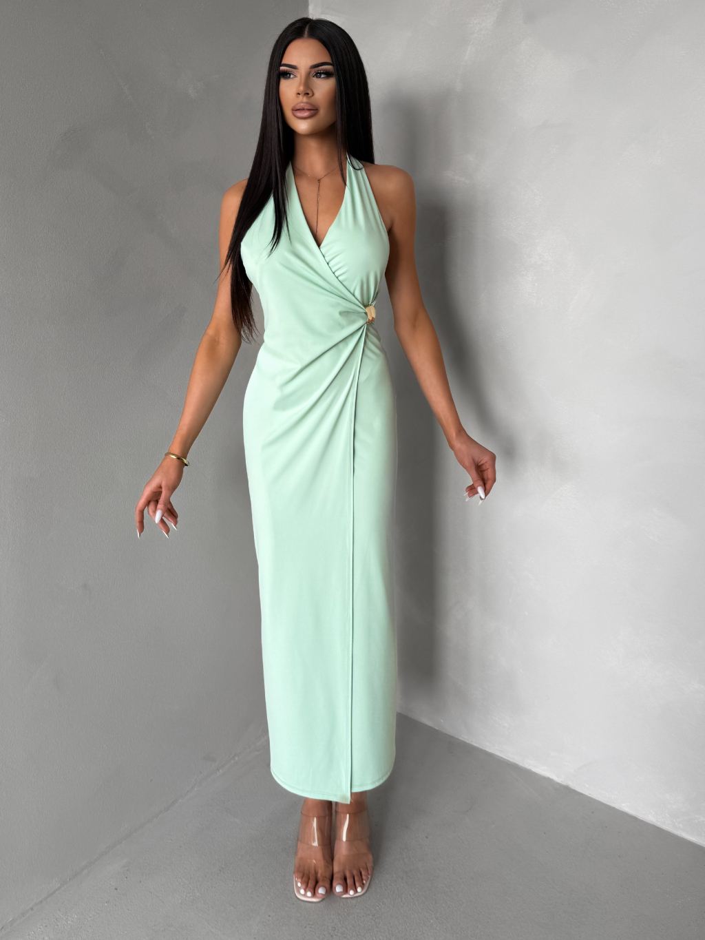 Světle zelené dlouhé elegantní šaty KALIXA