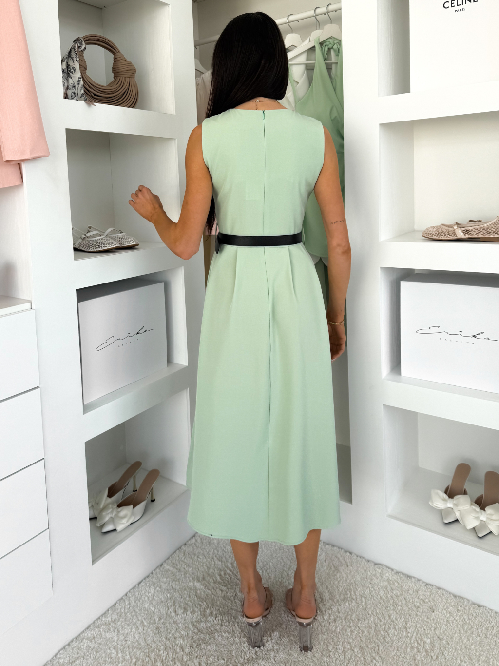 Světle zelené pouzdrové áčkové šaty GERARDYS s páskem