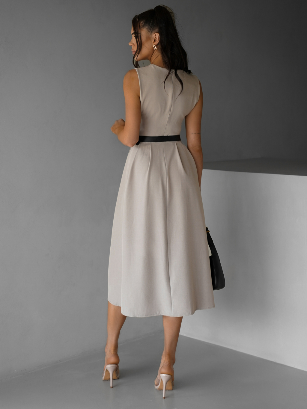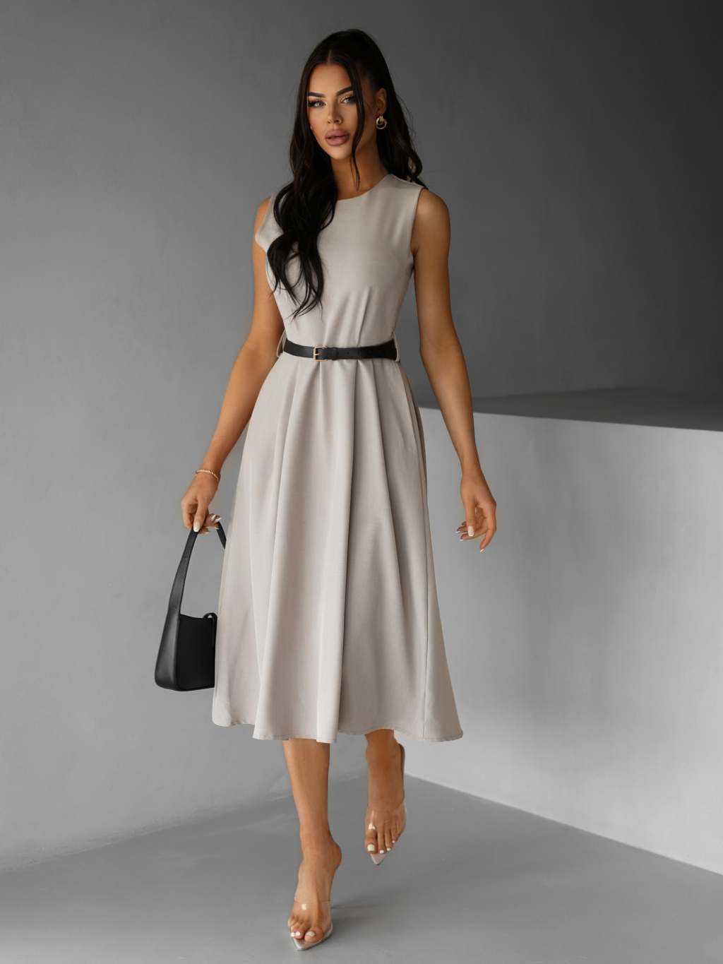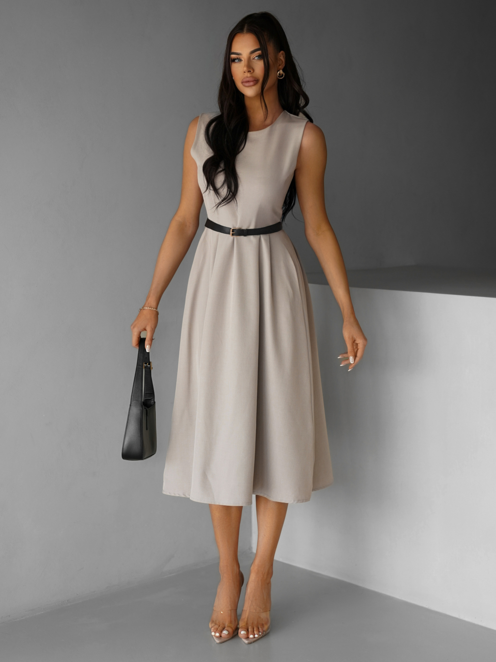 Tmavě béžové pouzdrové midi šaty GERARDYS s páskem