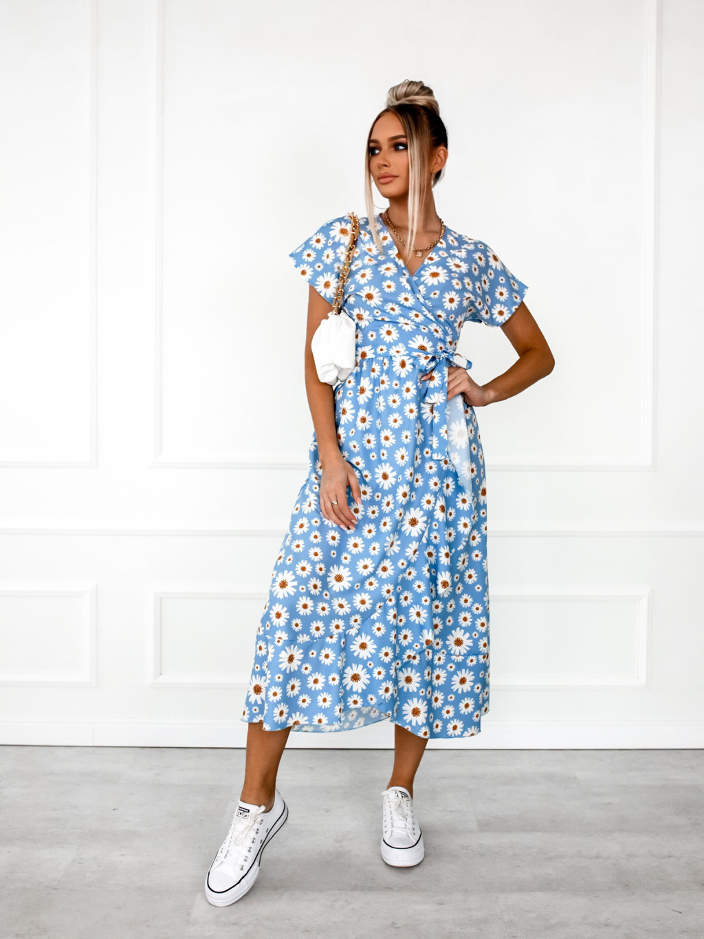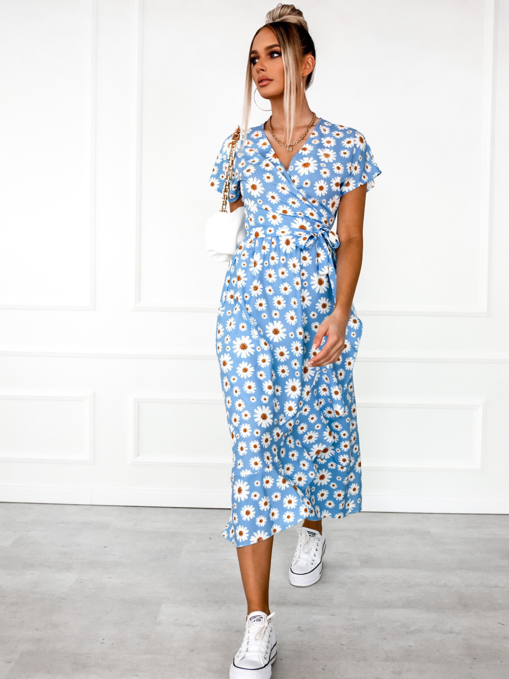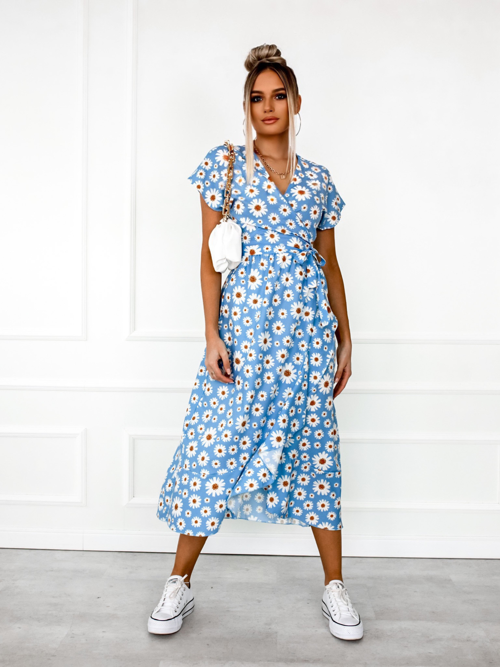 Tmavě modré dlouhé šaty DAISY s květinovým vzorem