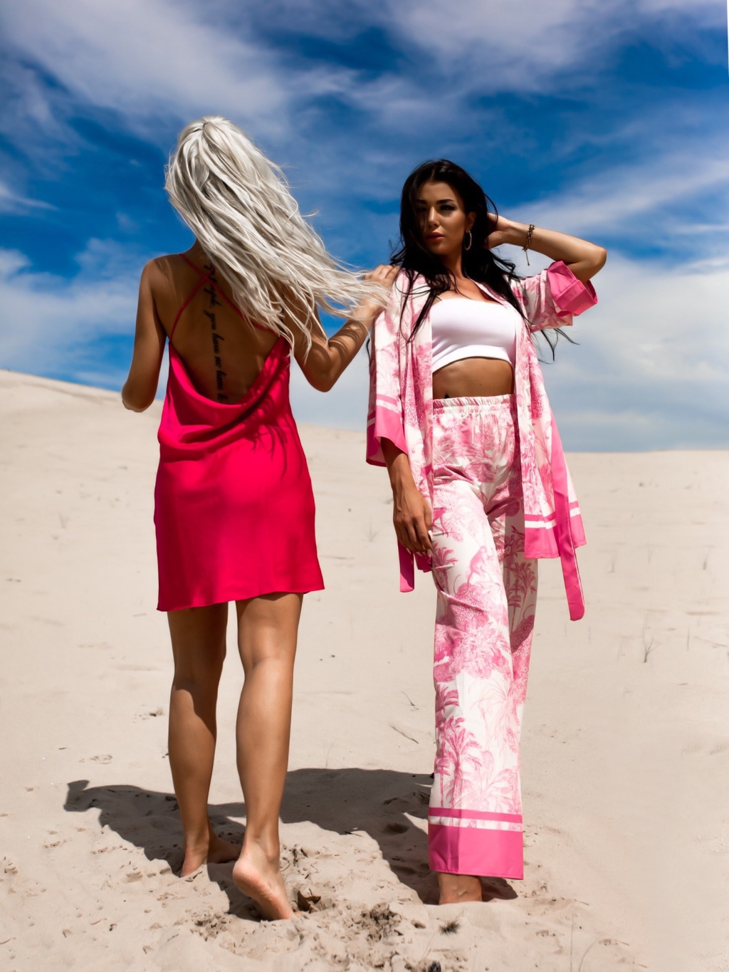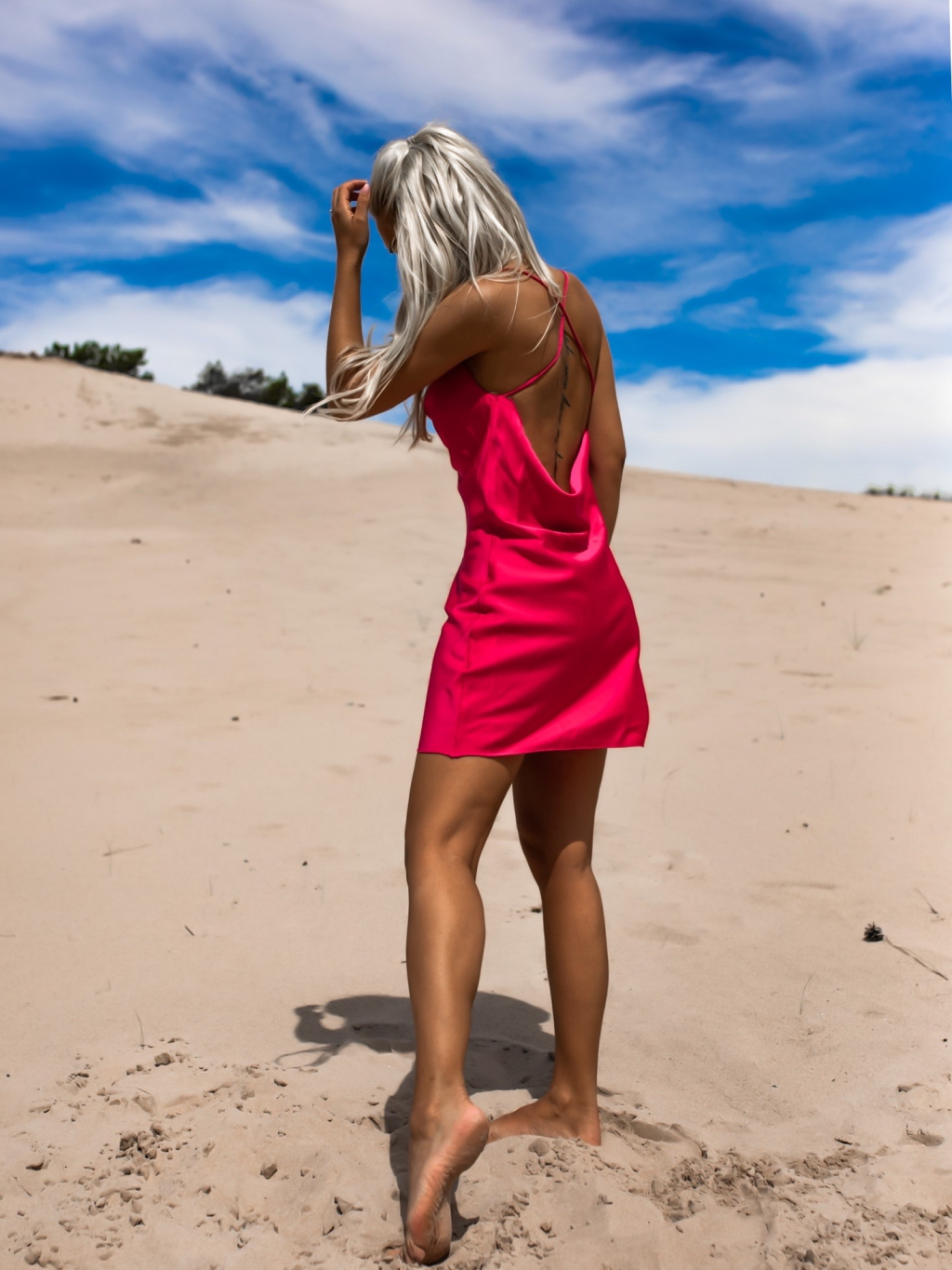 Tmavě růžové lesklé šaty IZZY s tenkými ramínky