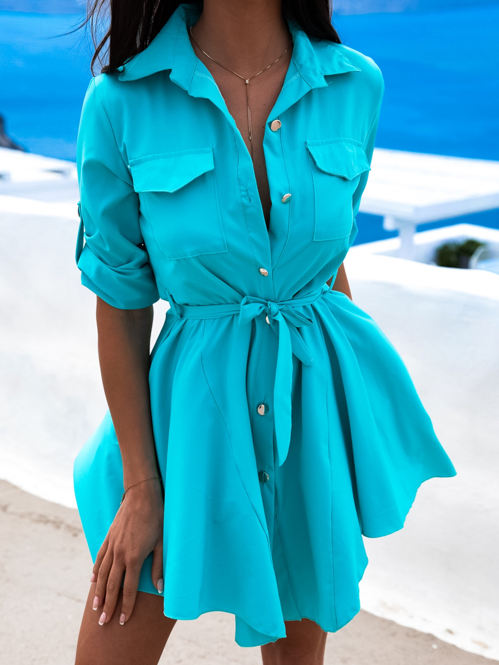 Tyrkysové lehké šaty FOGGY s knoflíky