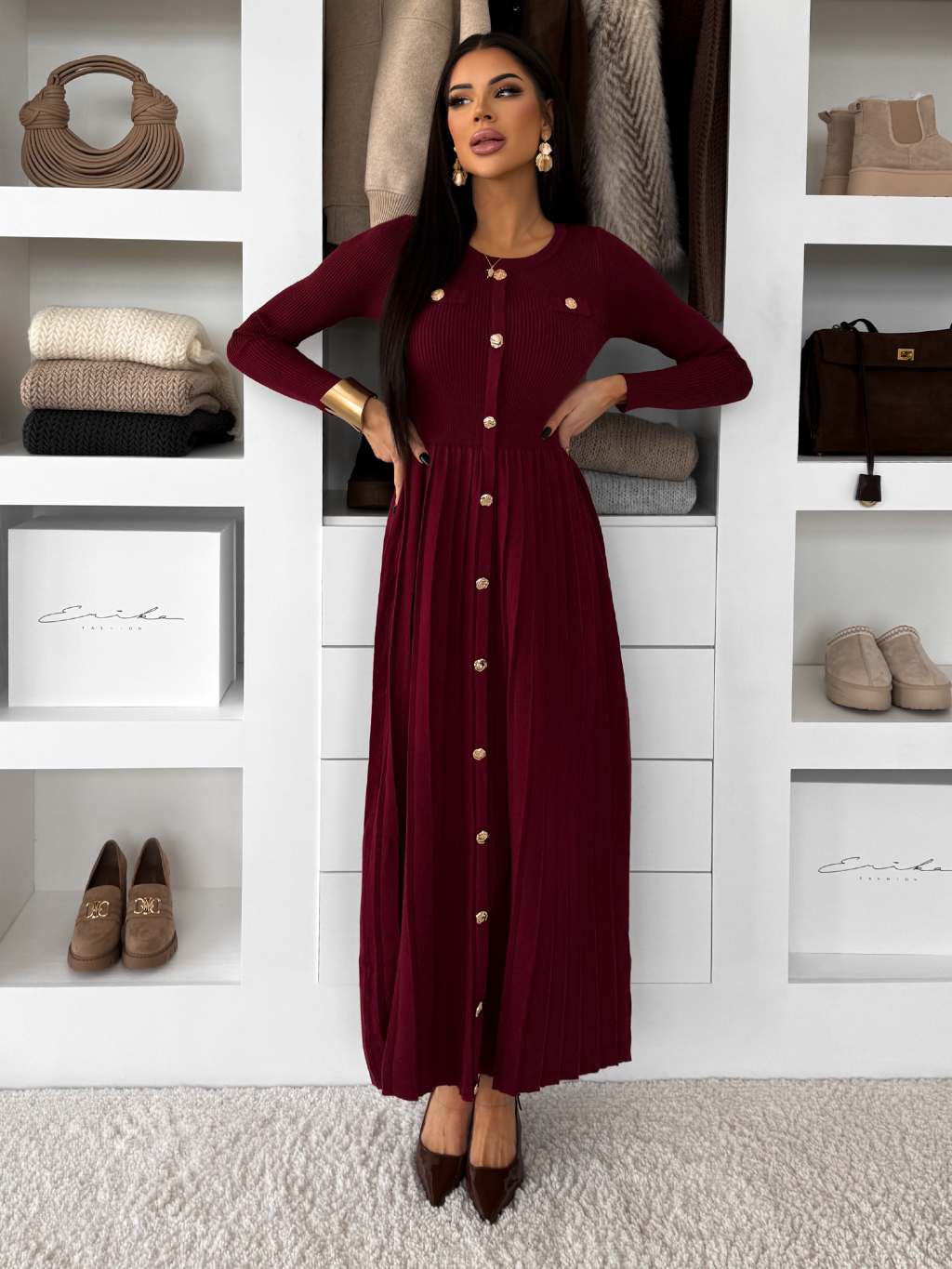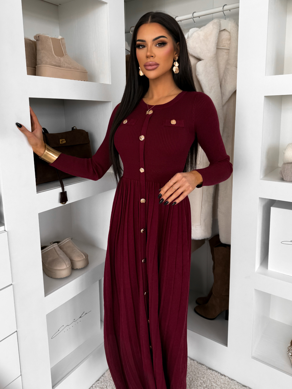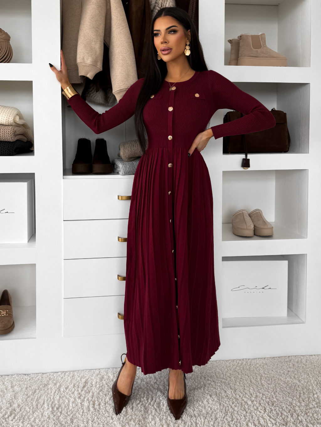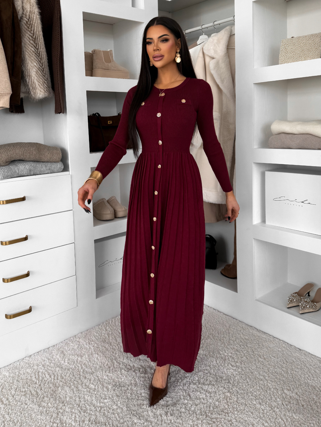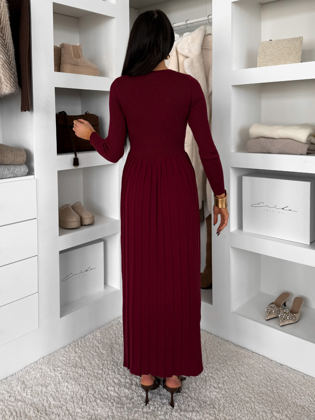 Vínové dlouhé svetrové šaty TYMORAE s dlouhým rukávem