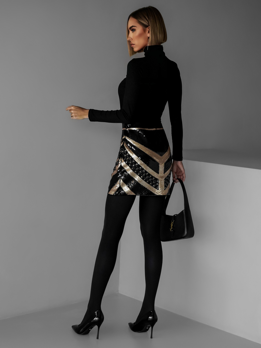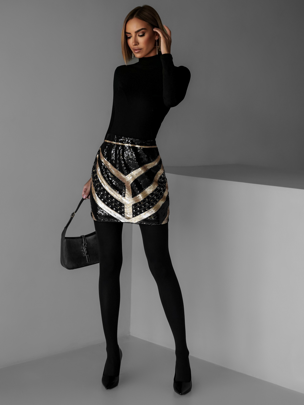 Černá flitrovaná mini sukně WILMA