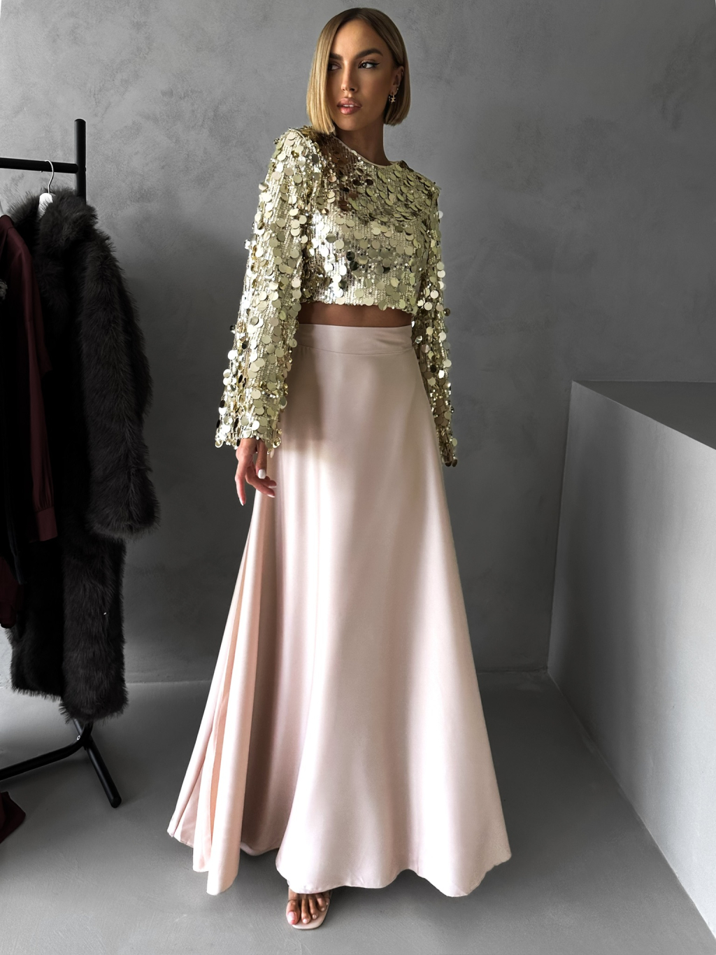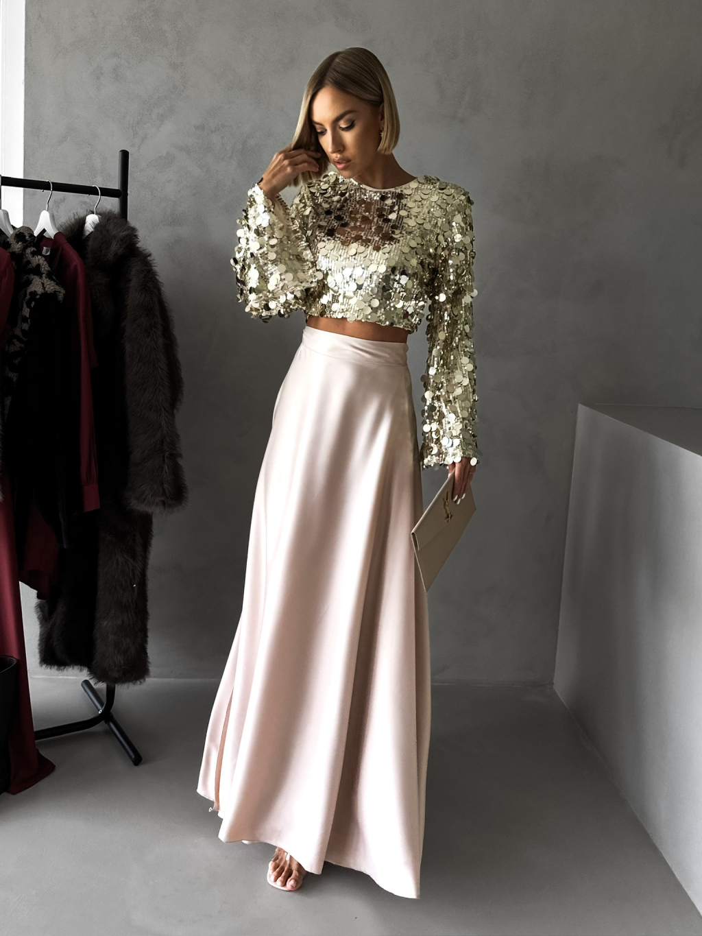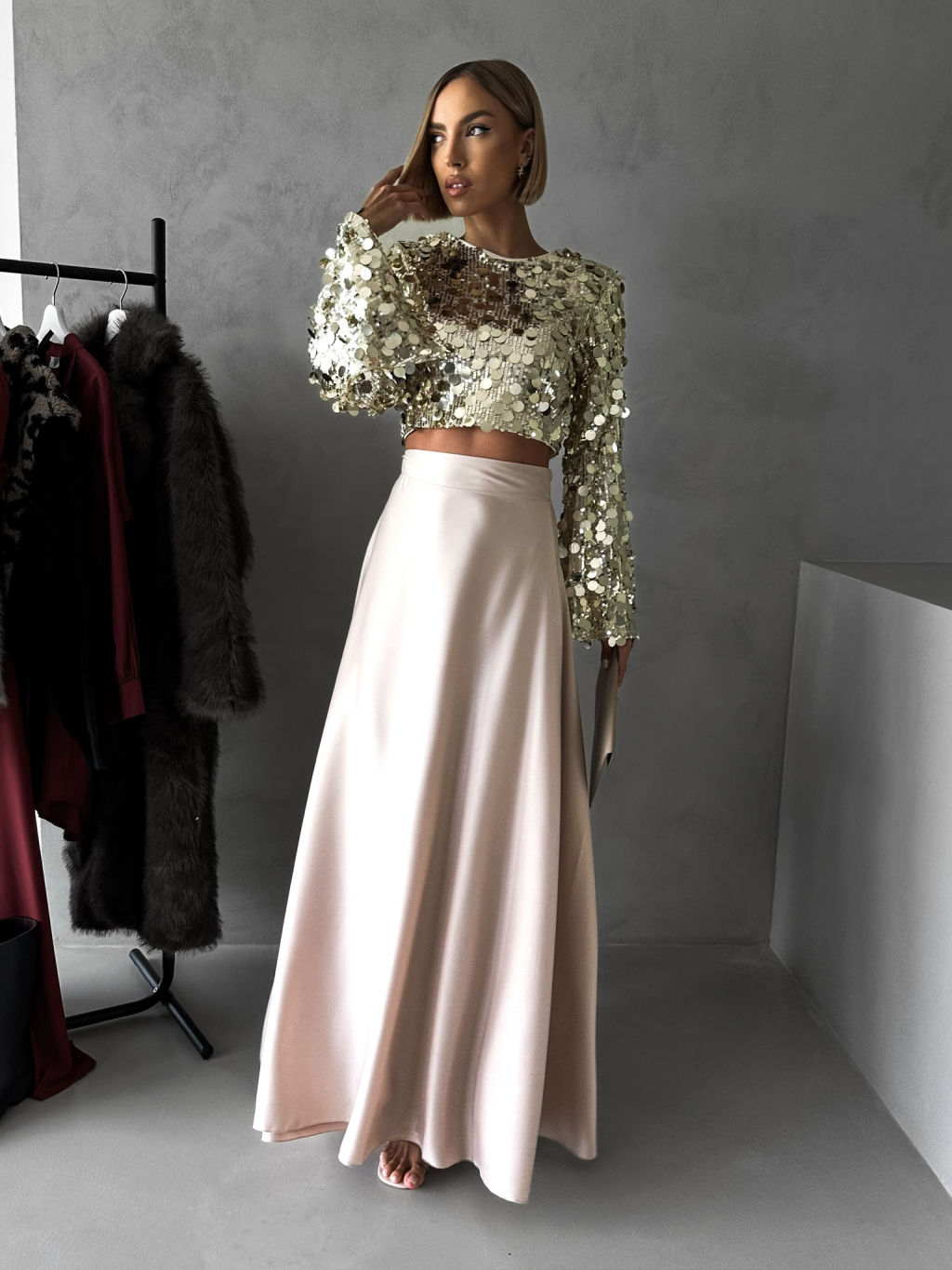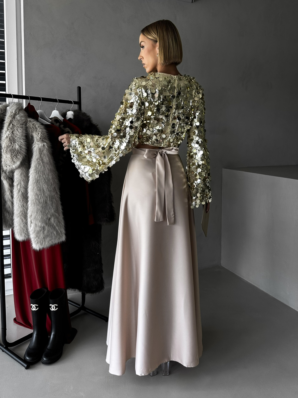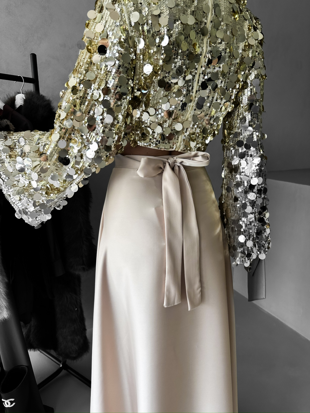 Krémová dlouhá zavinovací saténová sukně DENISSE na zavazání