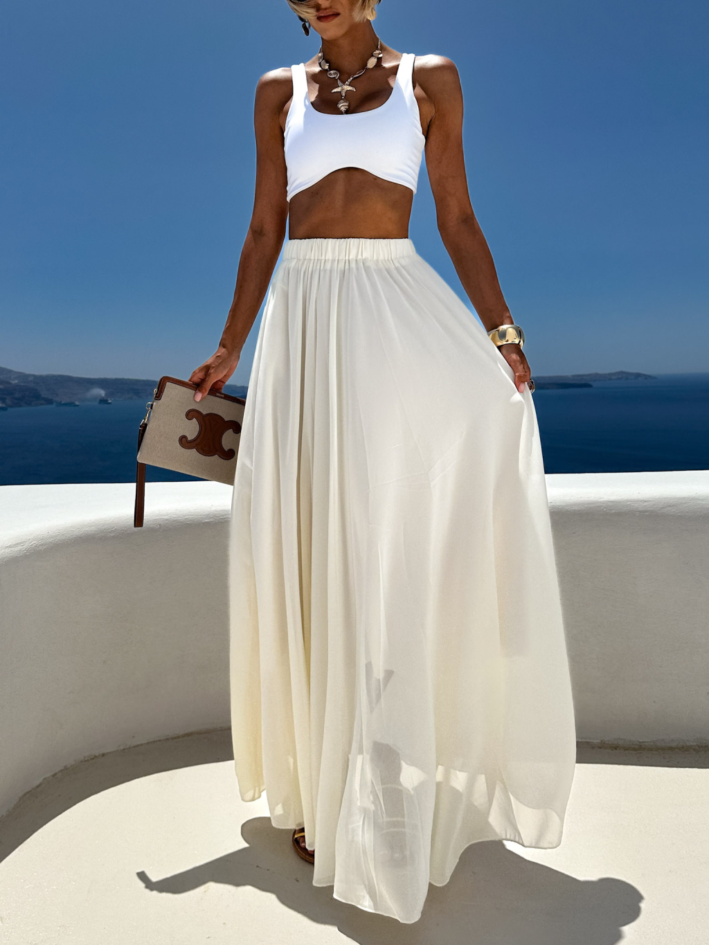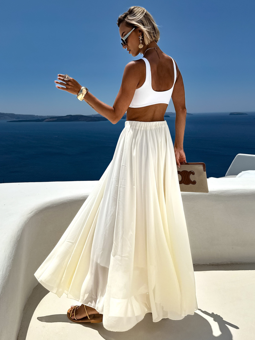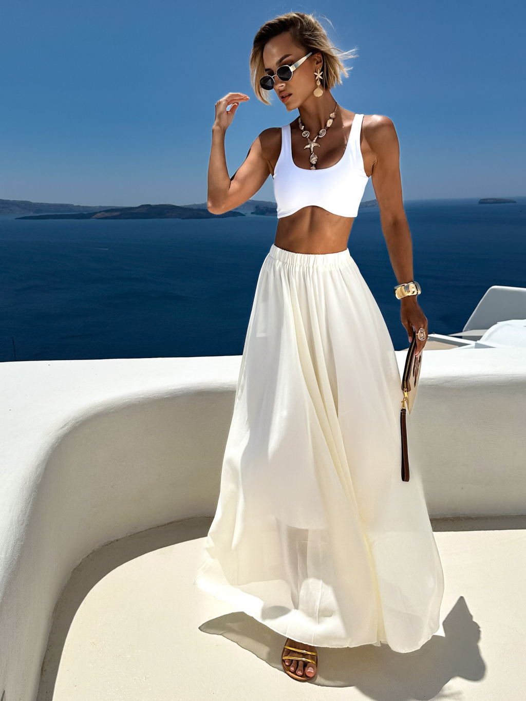 Krémová hedvábná maxi dlouhá sukně SAGELA
