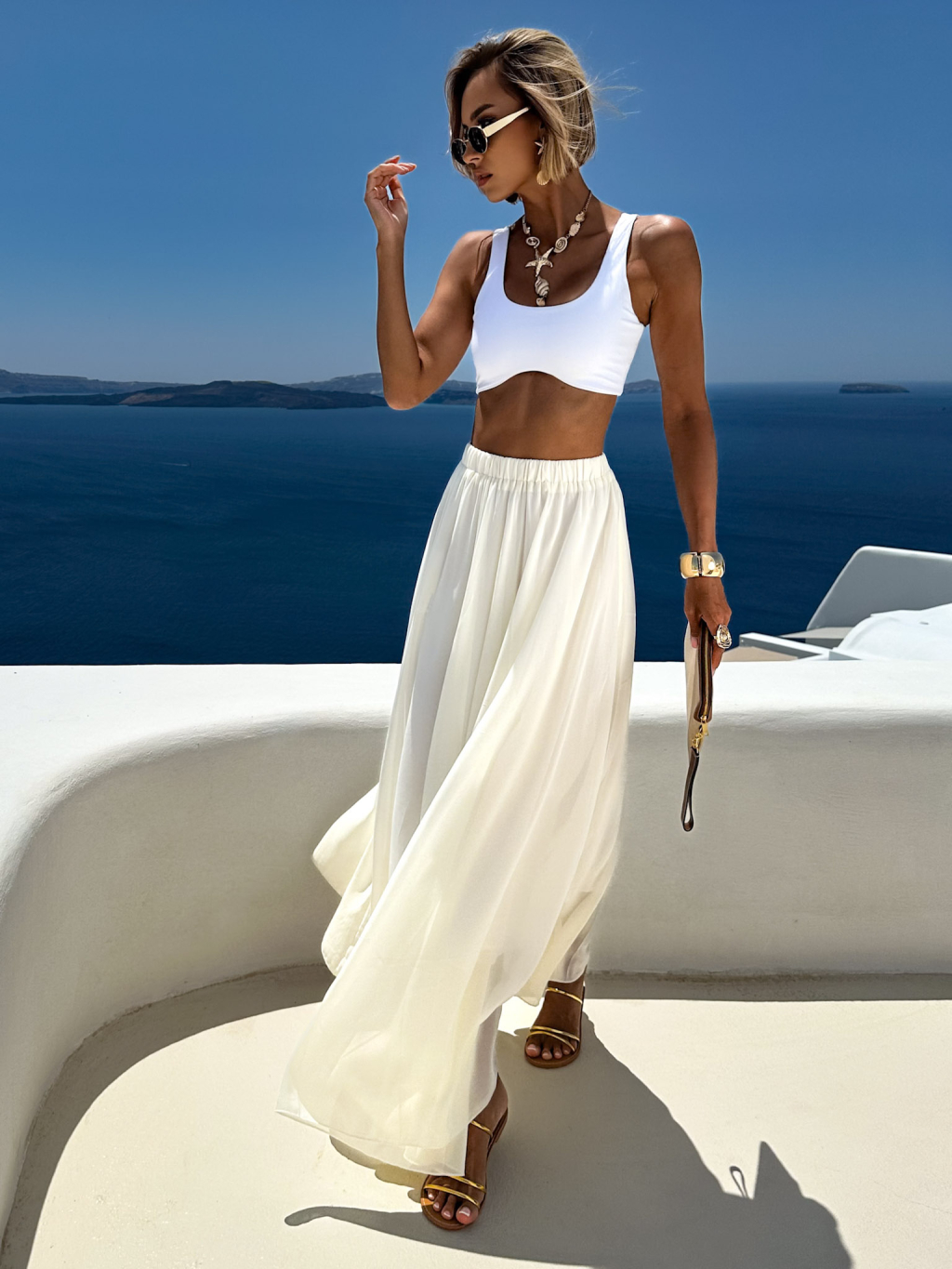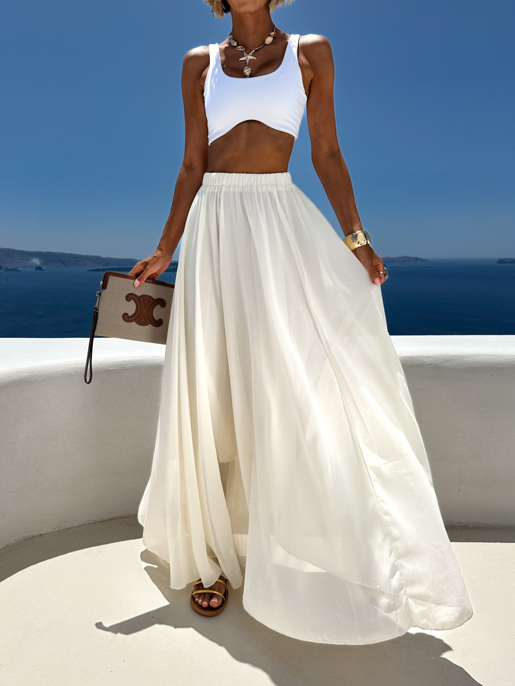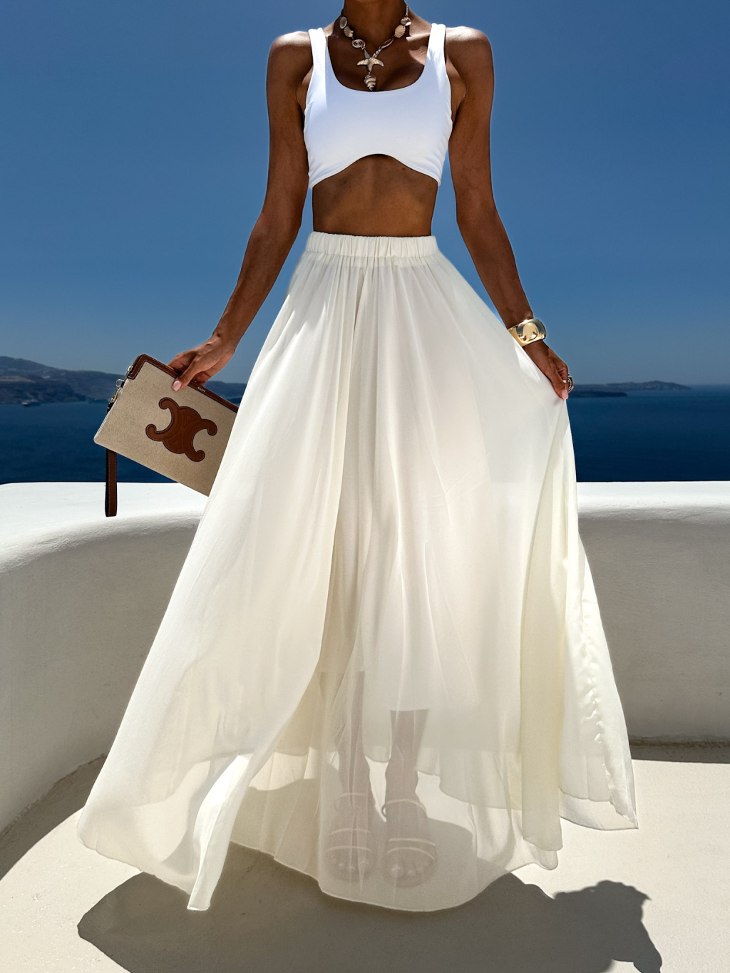 Krémová hedvábná maxi dlouhá sukně SAGELA