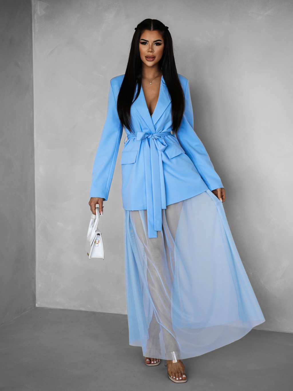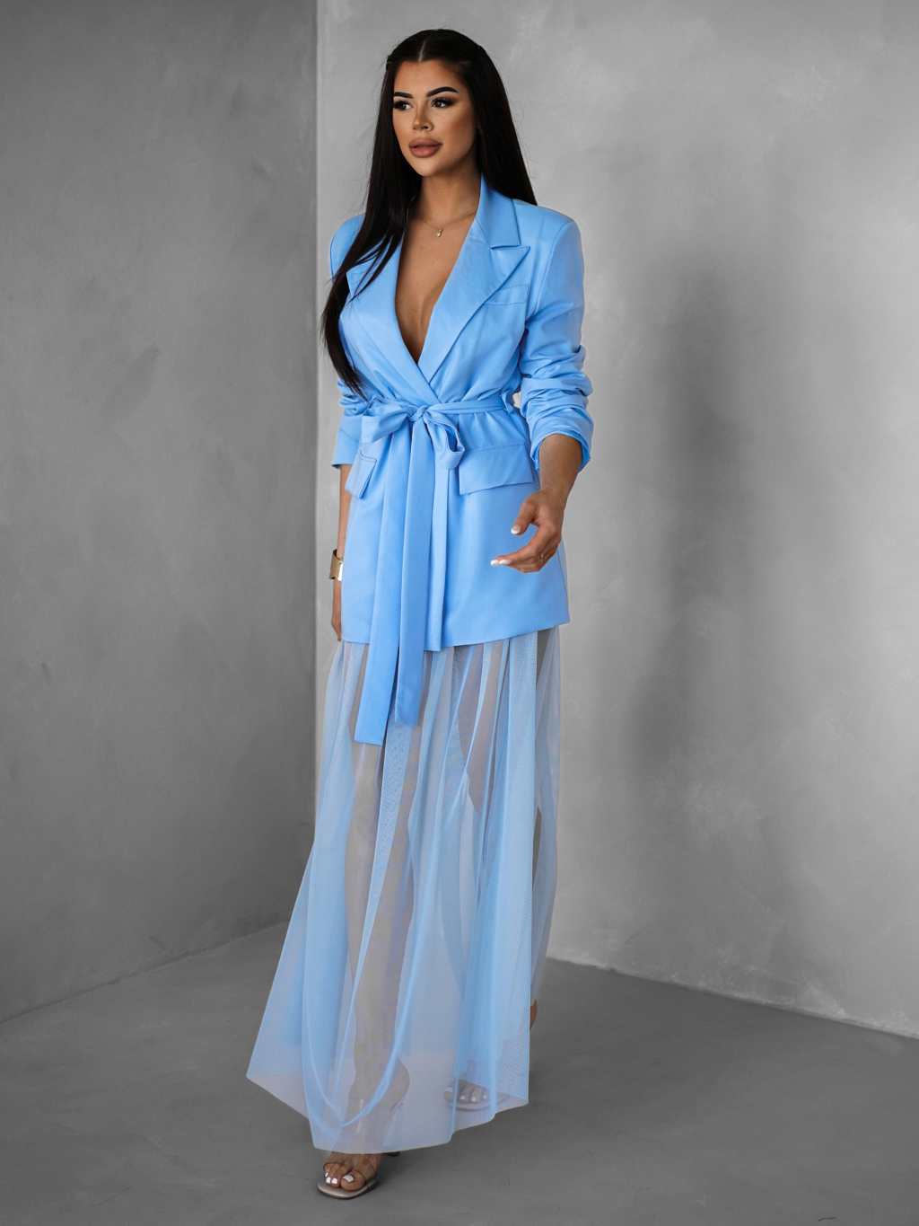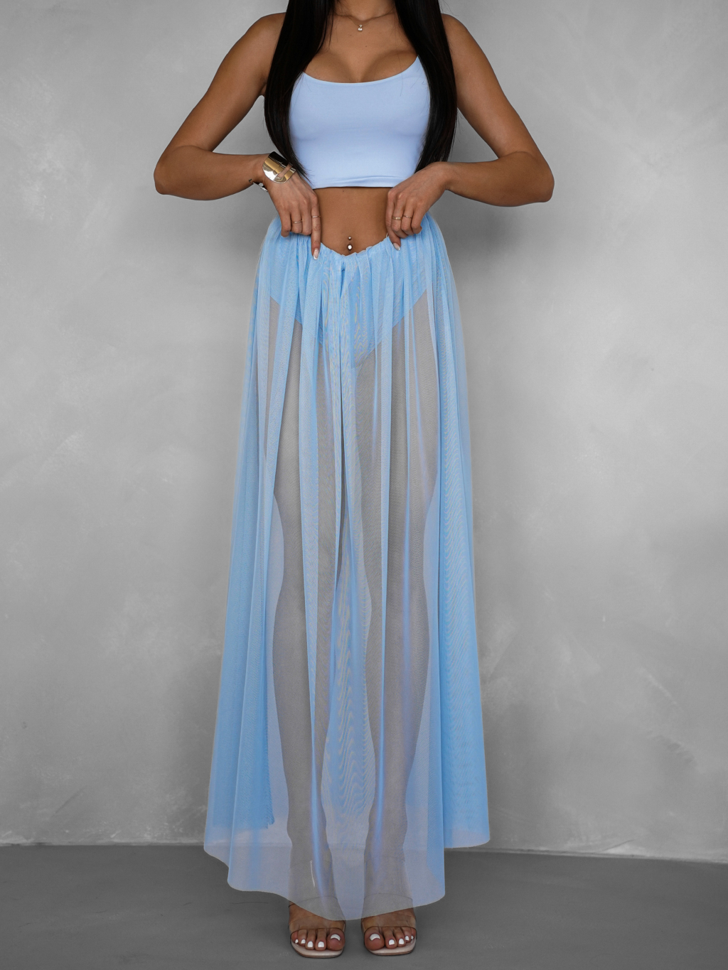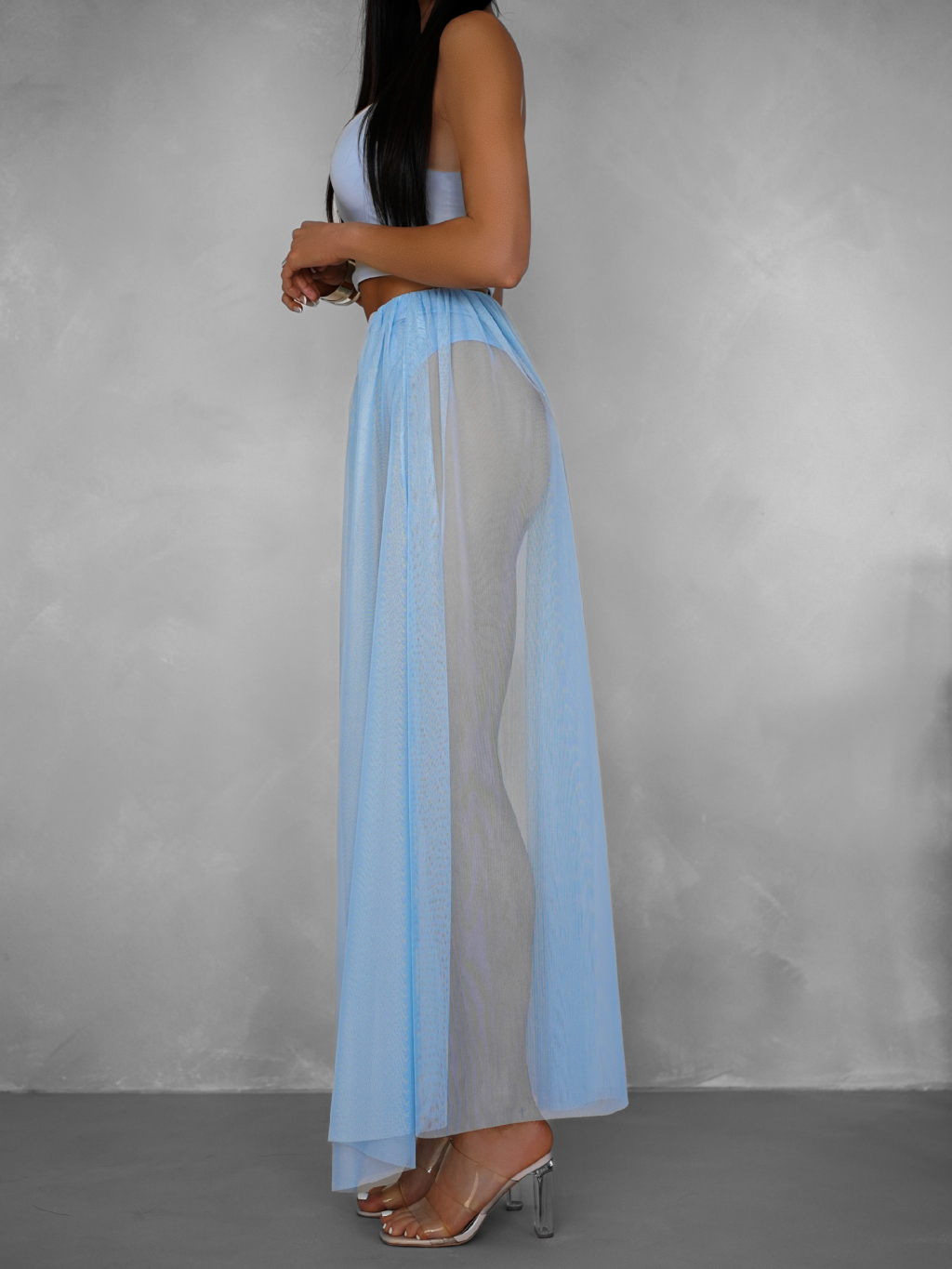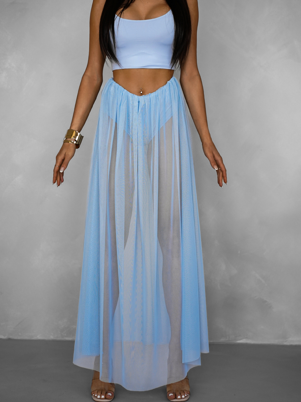 Světle modrá tylová transparentní sukně HARRYOL