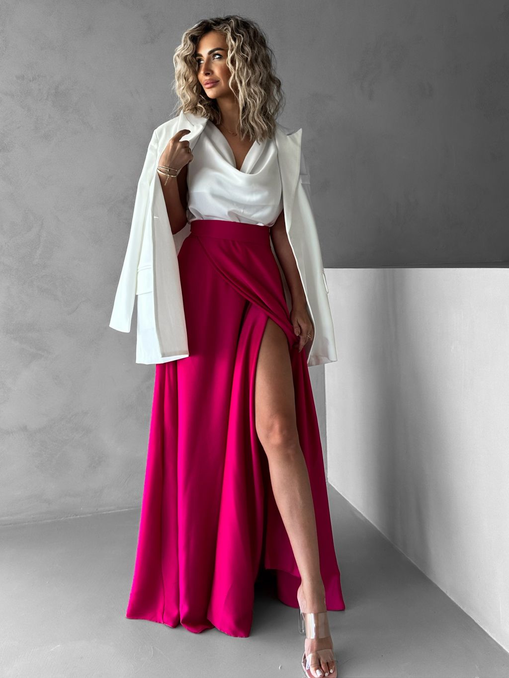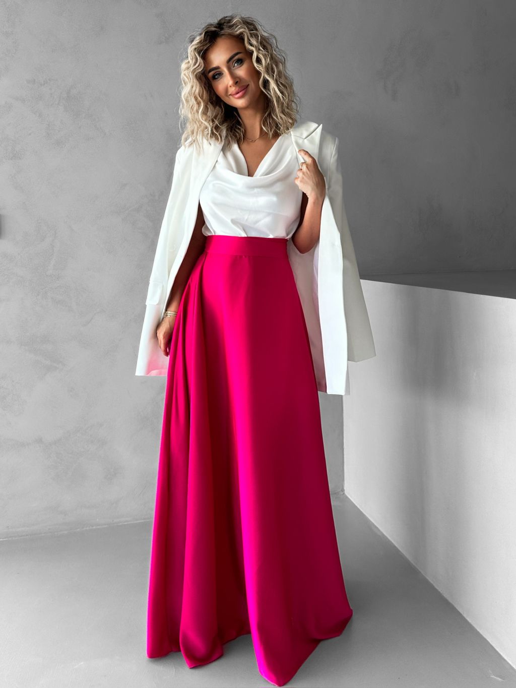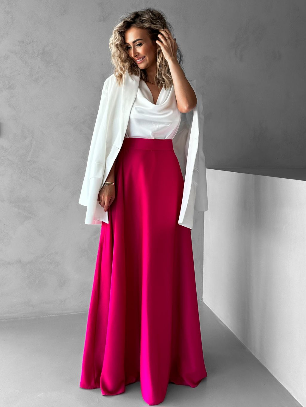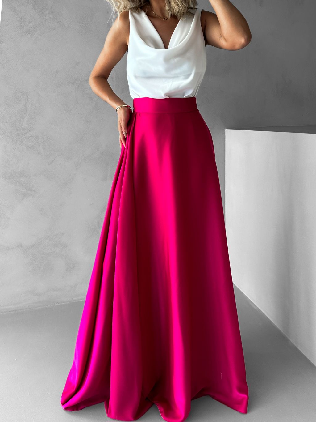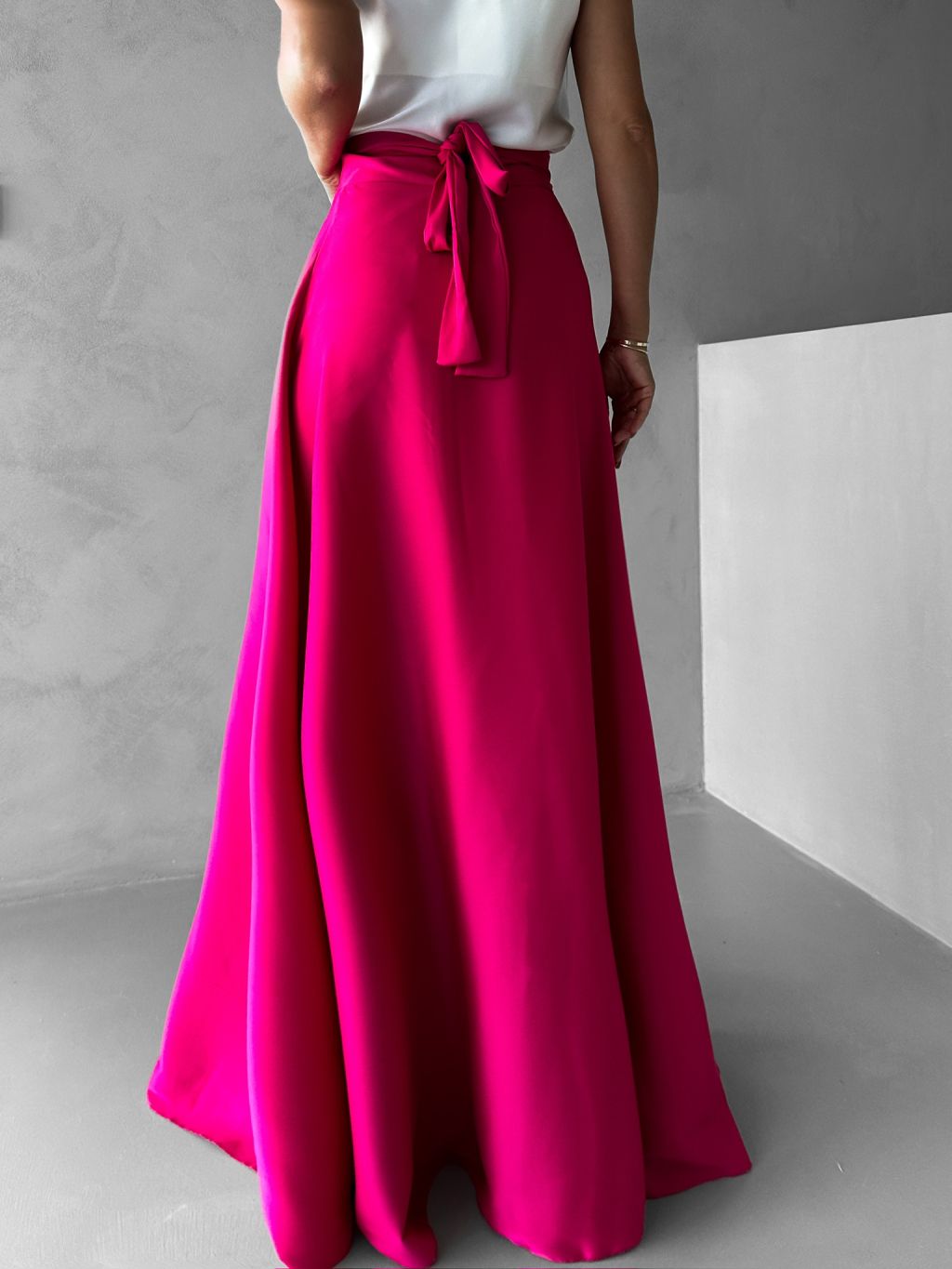 Tmavě růžová saténová zavinovací sukně DENISSE