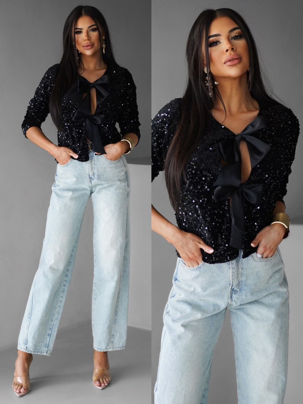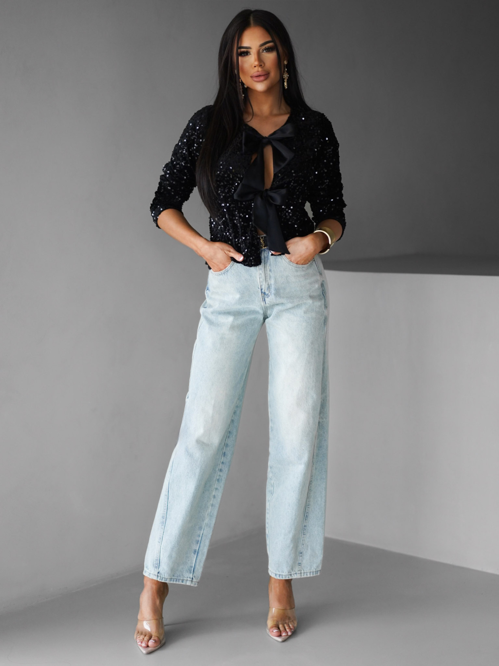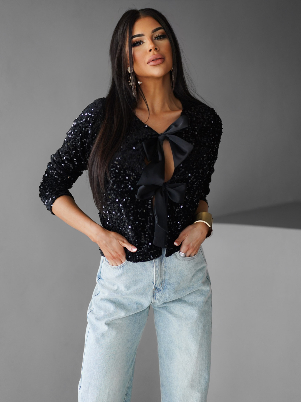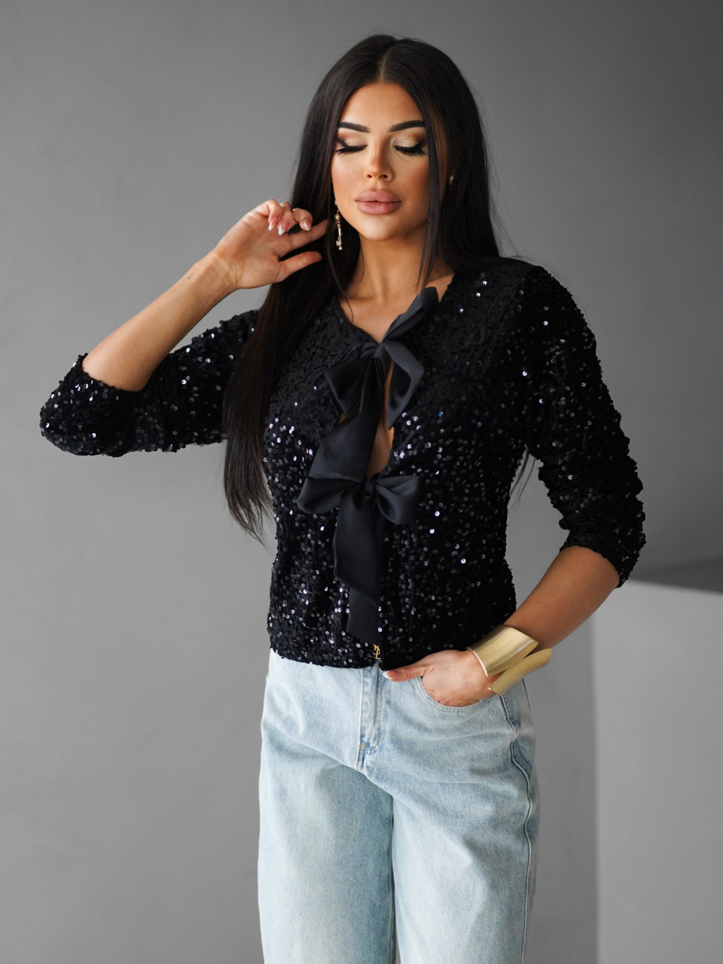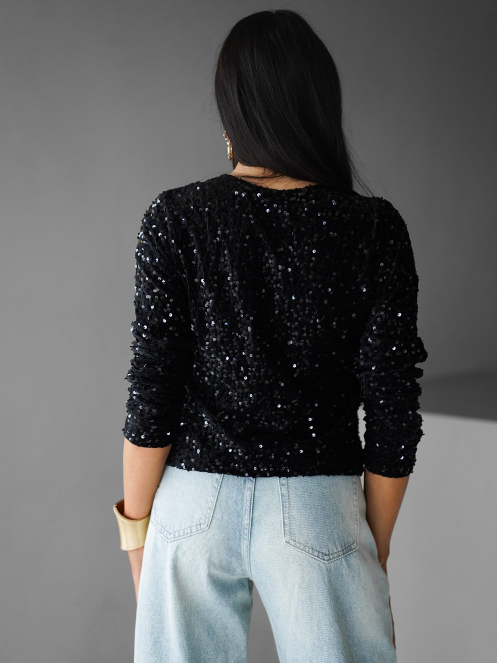 Černý třpytivý svetr LOTERY s vázáním
